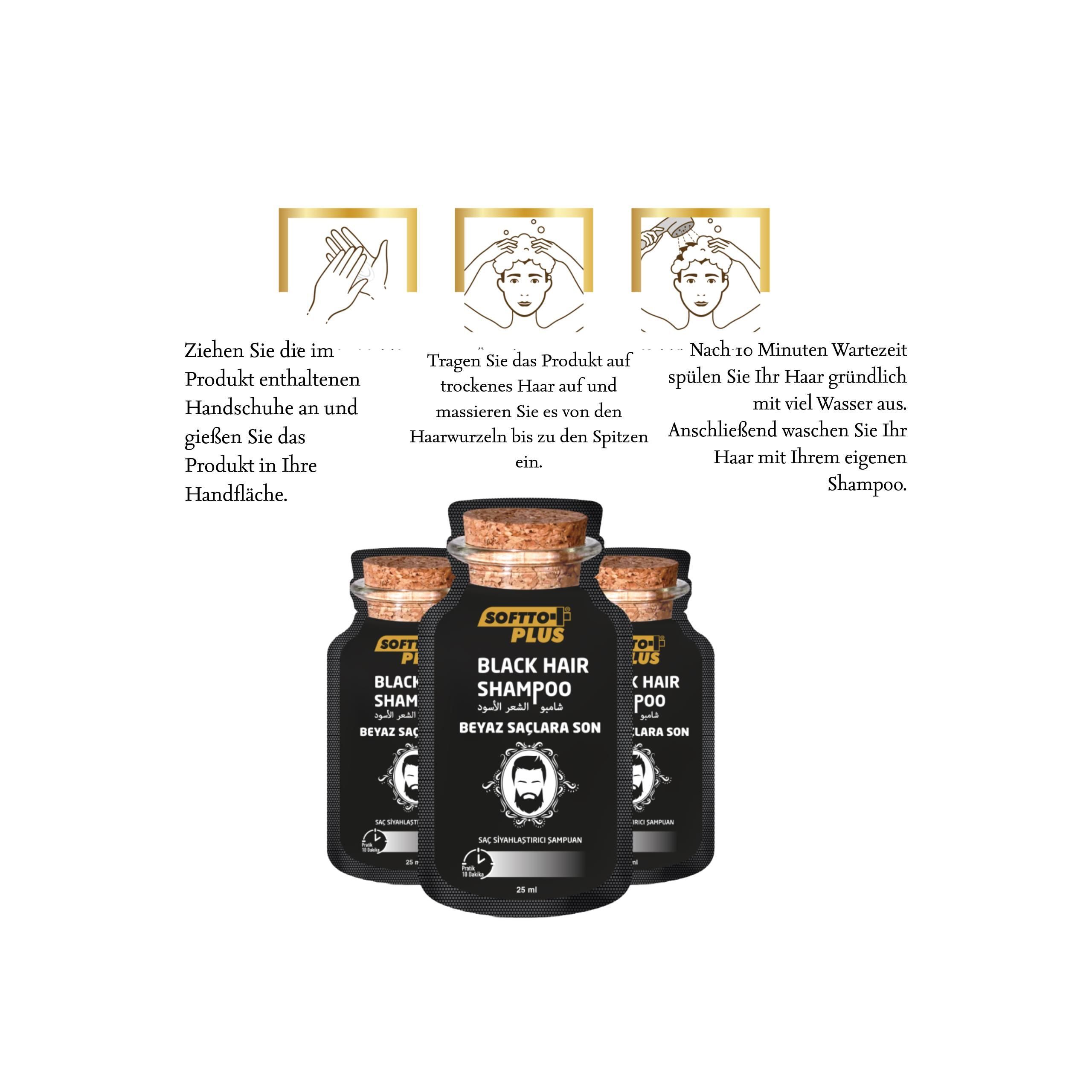Softto+Plus Haarfärbendesshampoo - 25ml x 10 für schwarzes Haar