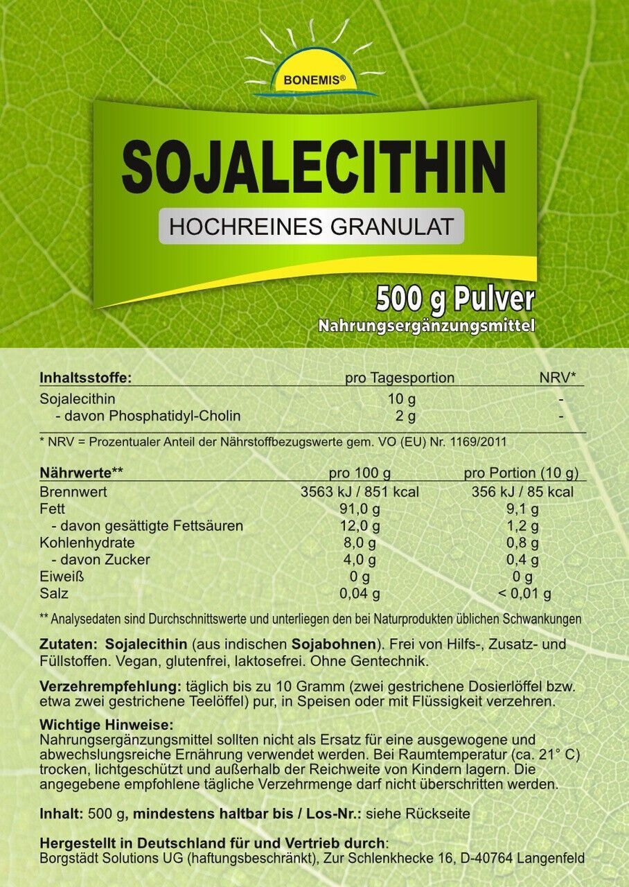 Sojalecithin, hochreines Granulat ohne Zusatzstoffe, 500 Gramm Beutel, Bonemis®