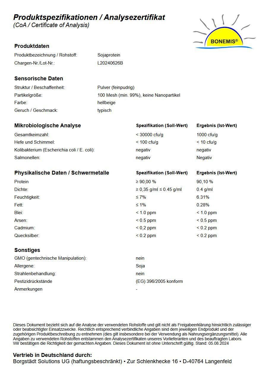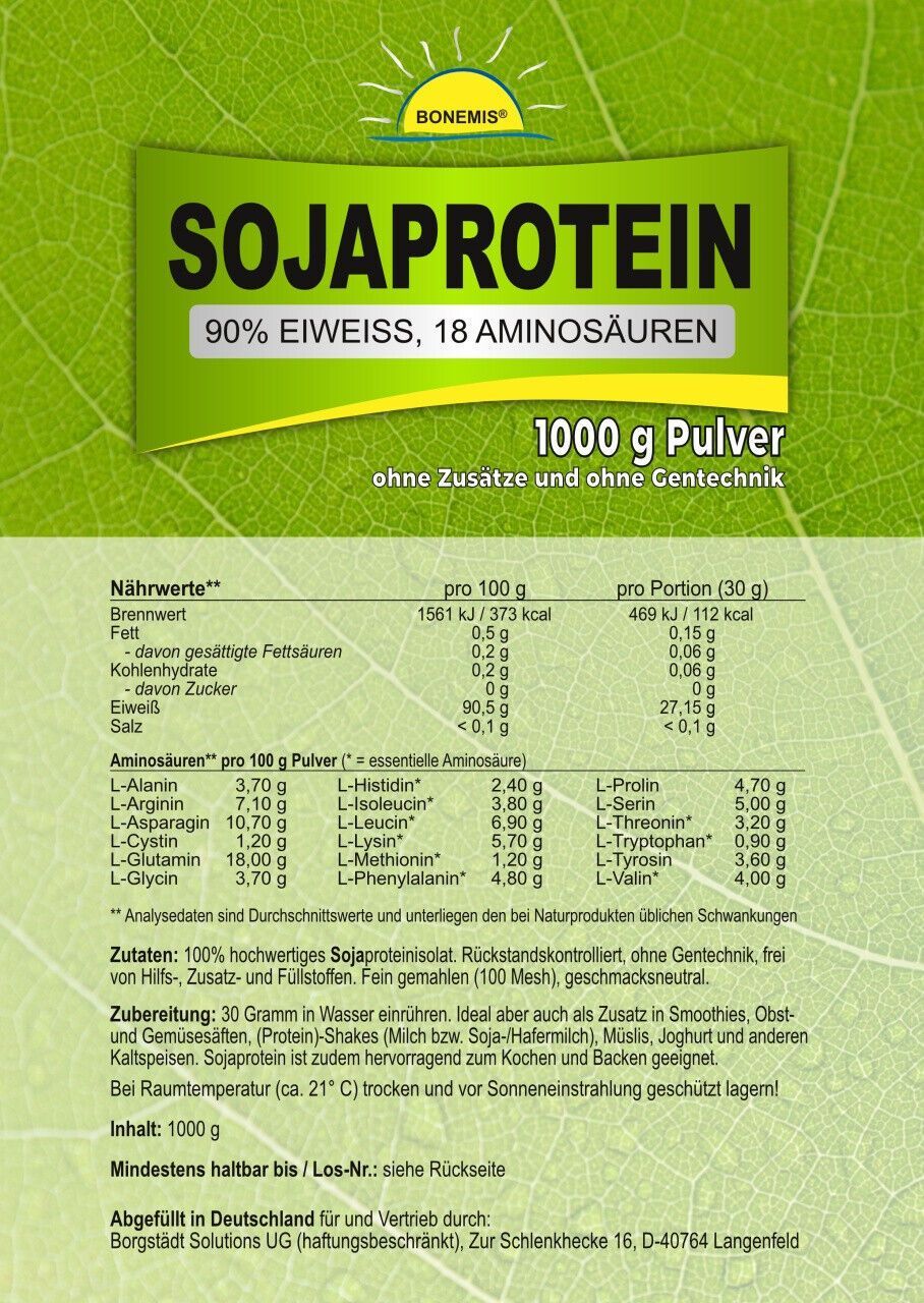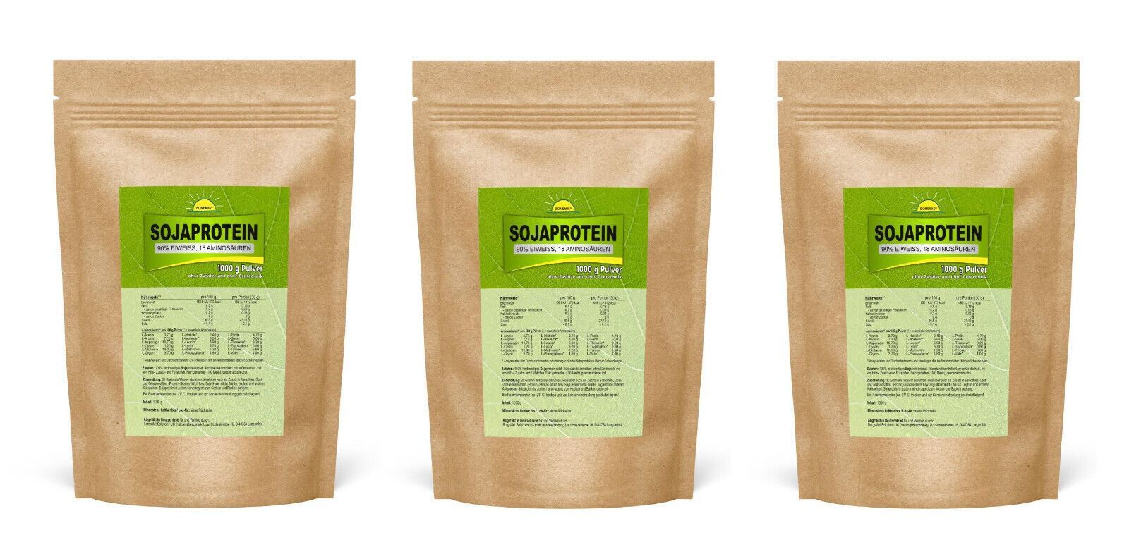 Sojaprotein (90% Eiweiß, 18 Aminosäuren, vegan), 3x 1 kg im Beutel, Bonemis®