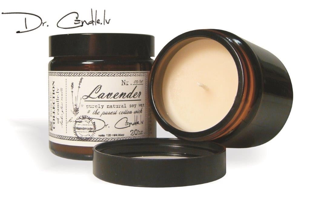 Sojawachs-Kerze Lavendel in Bernstein-Glas