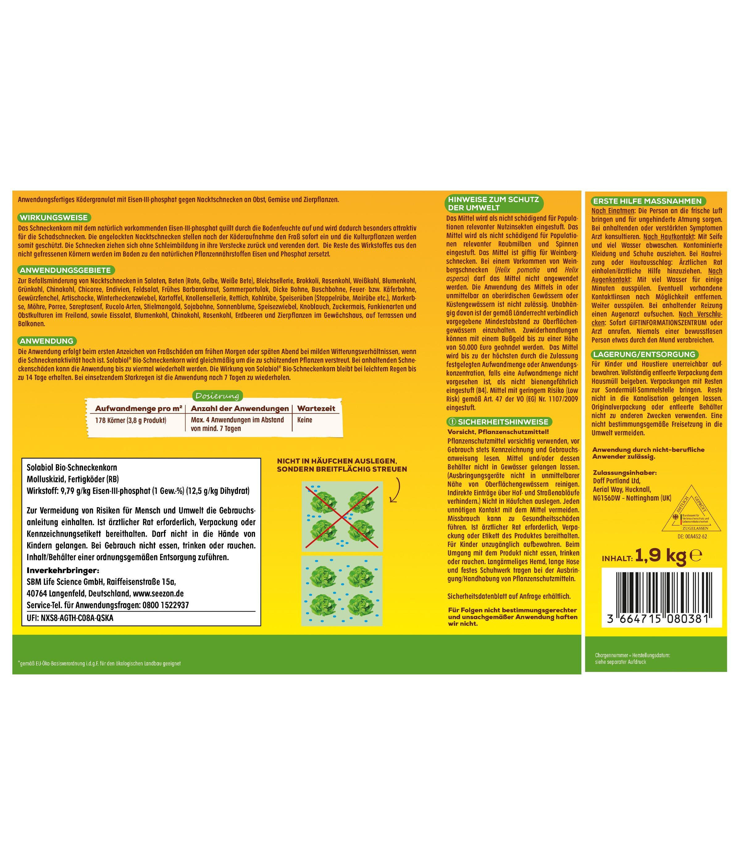 SOLABIOL® Bio Schneckenkorn, 1,9 kg