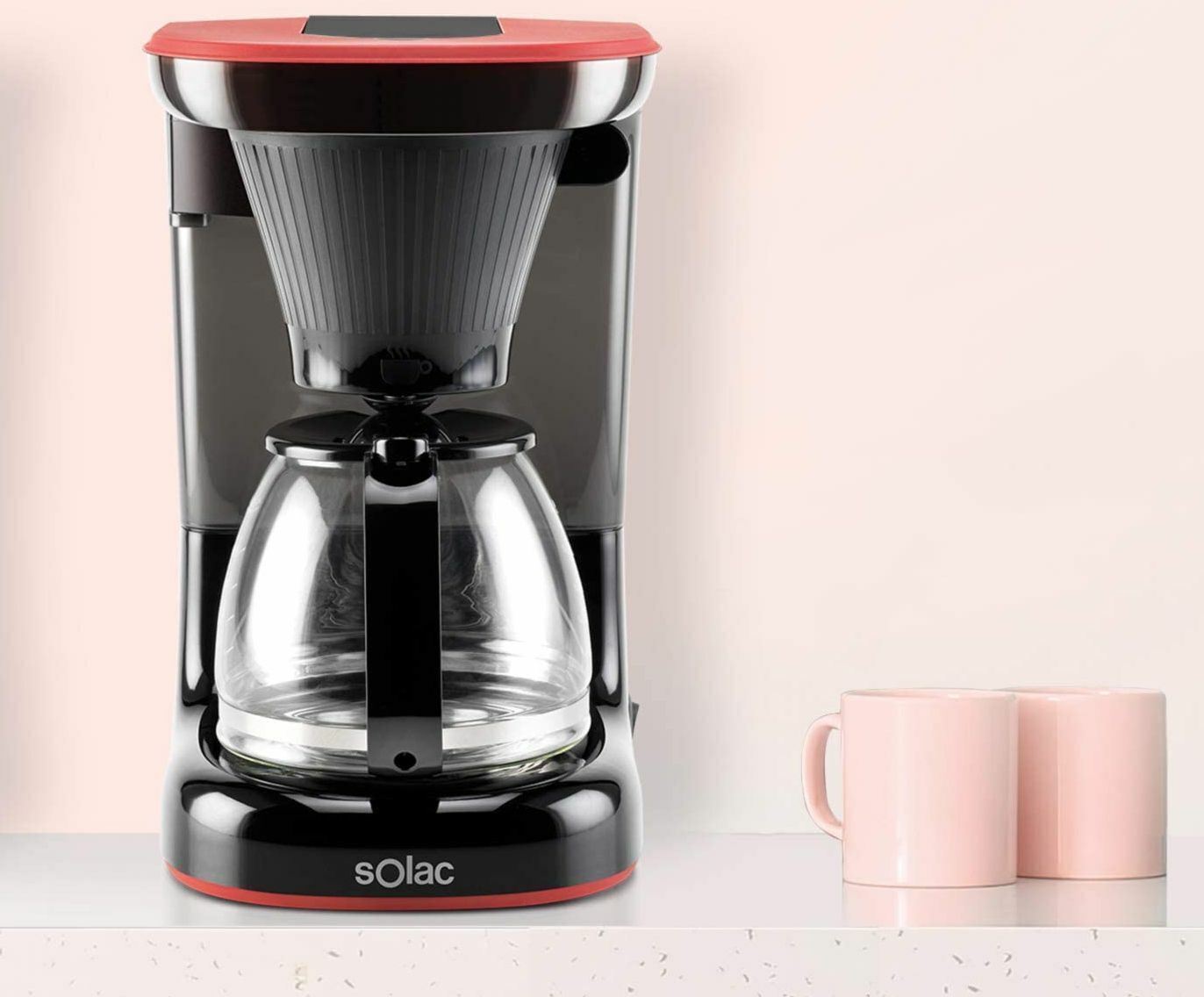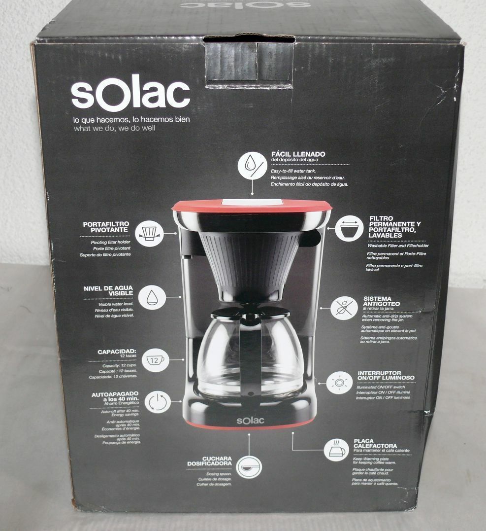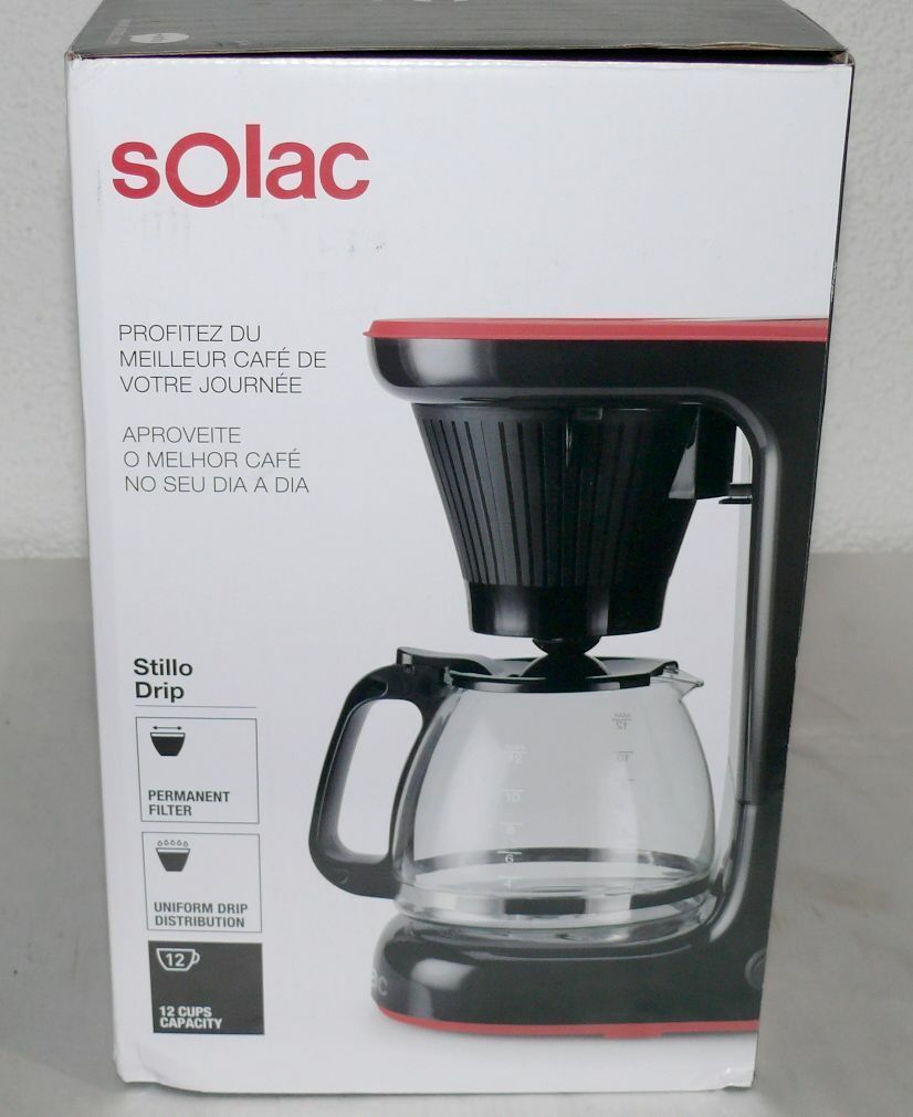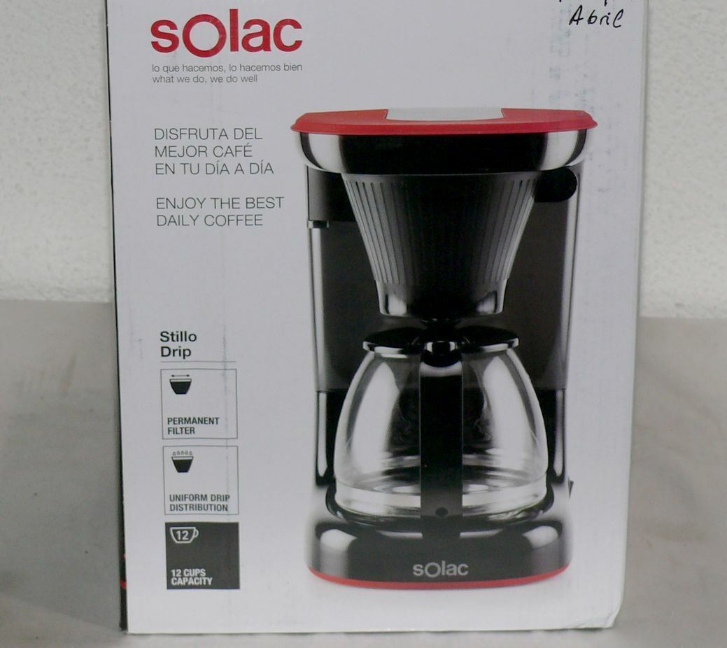 Solac Solac STILLO DRIP CF4032 Designer Kaffeemaschine 1,2L Glaskanne 650W Schwarz Rot
