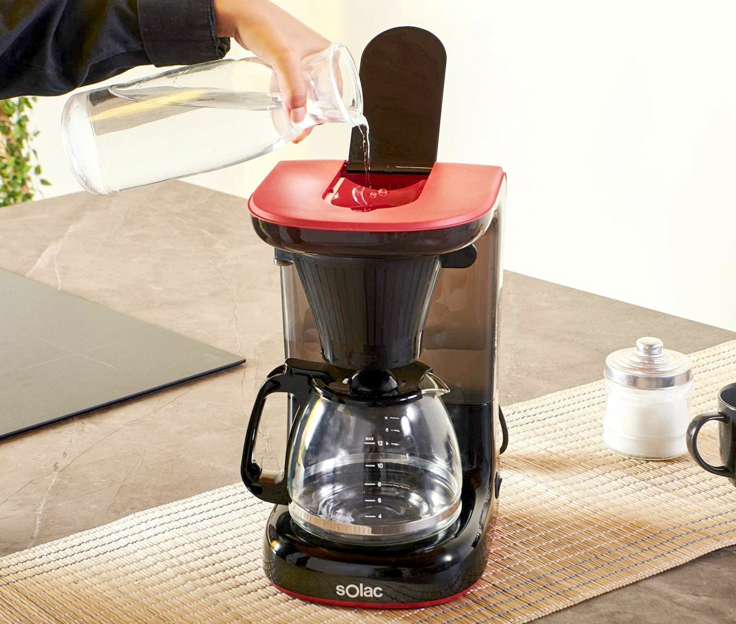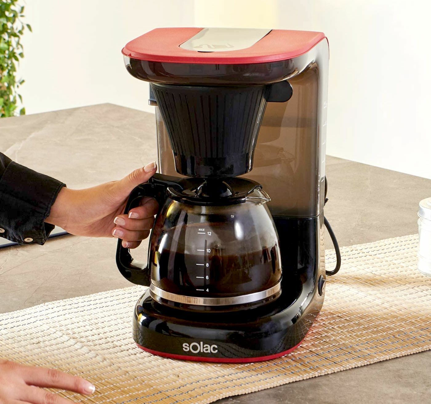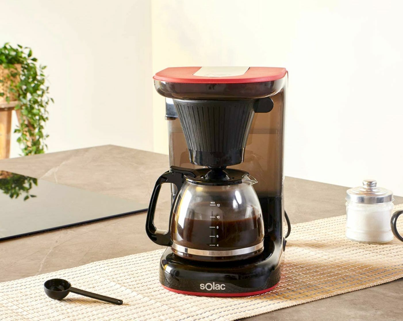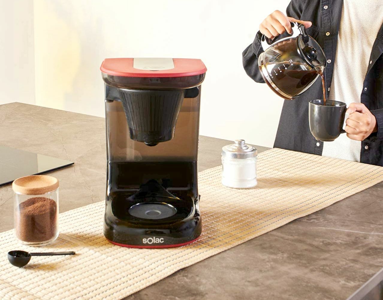 Solac Solac STILLO DRIP CF4032 Designer Kaffeemaschine 1,2L Glaskanne 650W Schwarz Rot
