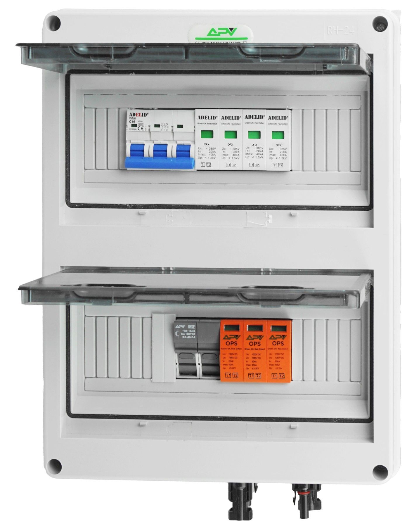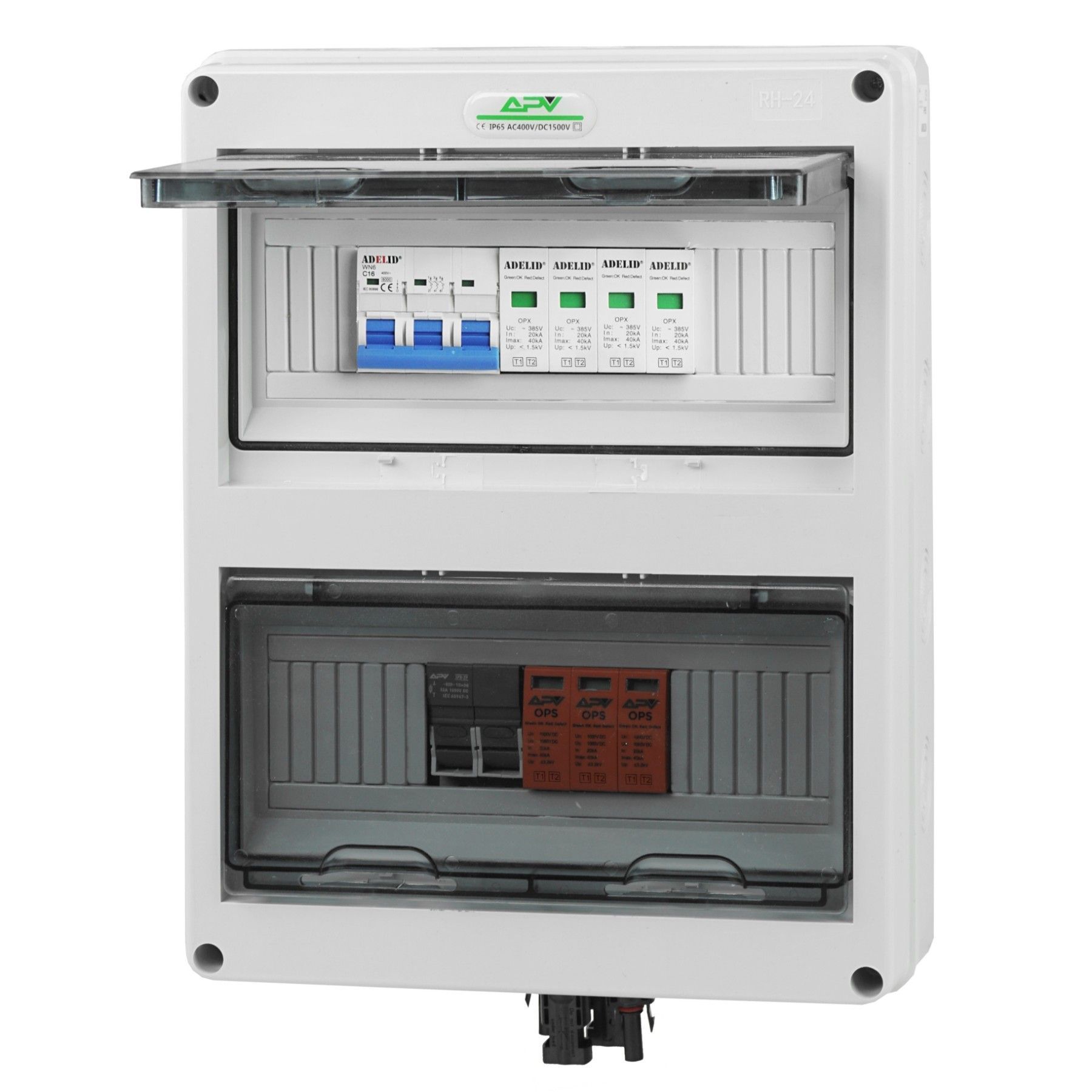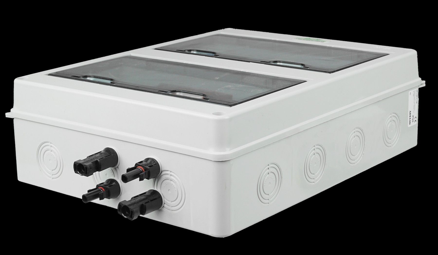 Hochwertige Solar Anschlusskasten 1-String 24-Module Schutz von PV-Anlagen vor Überlastungen und Auswirkungen von Kurzschlüssen in DC- oder AC DC- Photovoltaikanlagen. Fertig verkablet, steckerfertig. Das Produkt ist normgerecht mit 6,0 mm2 Solarkabel (8-Module mit 4,00 mm2) verkabelt. Die Schaltanl