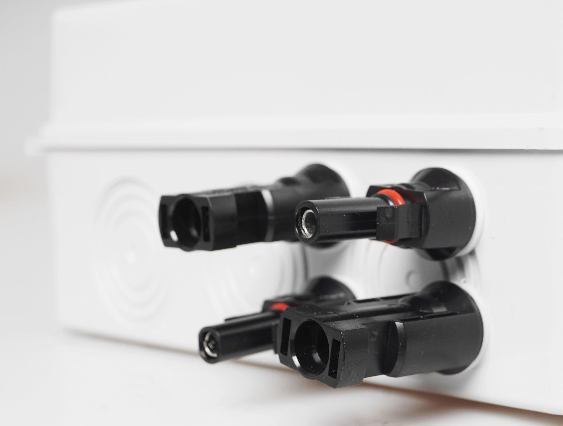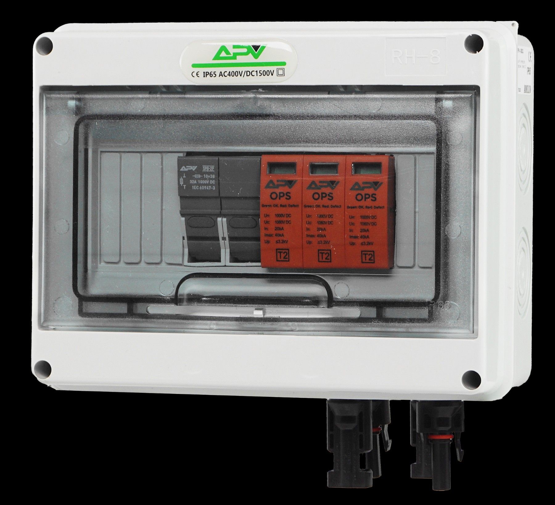 Hochwertige Solar Anschlusskasten 1-String 8-Module Schutz von PV-Anlagen vor Überlastungen und Auswirkungen von Kurzschlüssen in DC- oder AC DC- Photovoltaikanlagen. Fertig verkablet, steckerfertig. Das Produkt ist normgerecht mit 4,0 mm2 Solarkabel verkabelt. Die Schaltanlage hat 13,5 Kabelverschr