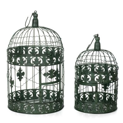 • 2er Set Vogelkäfige aus Metall altgrün Vintage Shabby Chic Hängedeko Ø25cm & Ø19cm