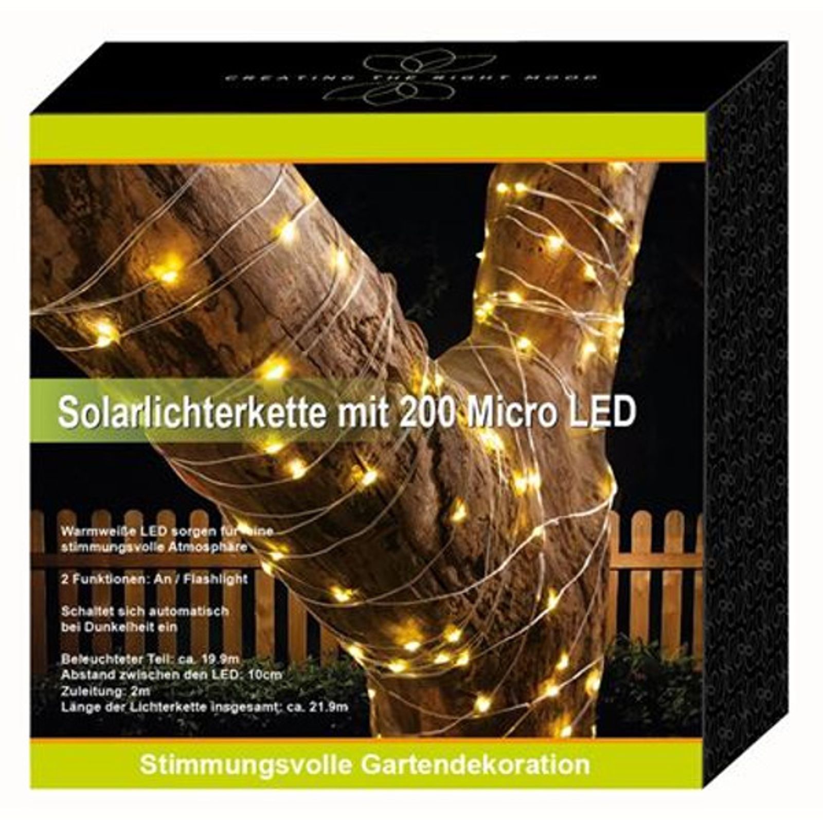 Solar-Lichterkette 200 Micro-LEDs 21,9m Warmweiß Gartenbeleuchtung Terrassendeko