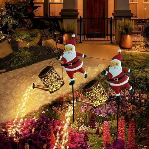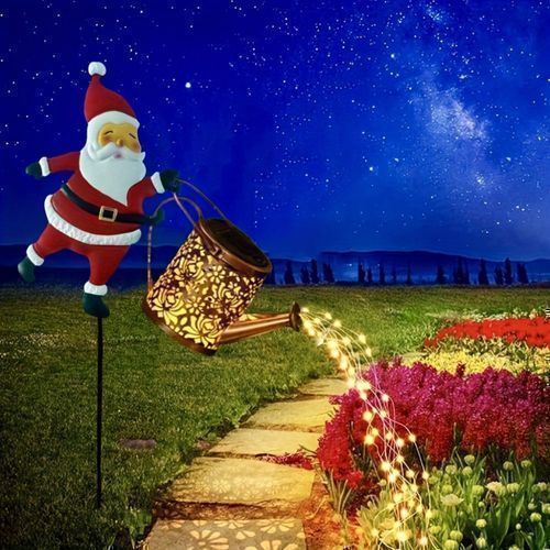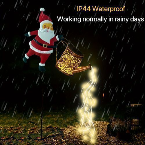 Solar-Powered Christmas Watering Can Garden Light, LED Waterfall Effect, Outdoor Sola
