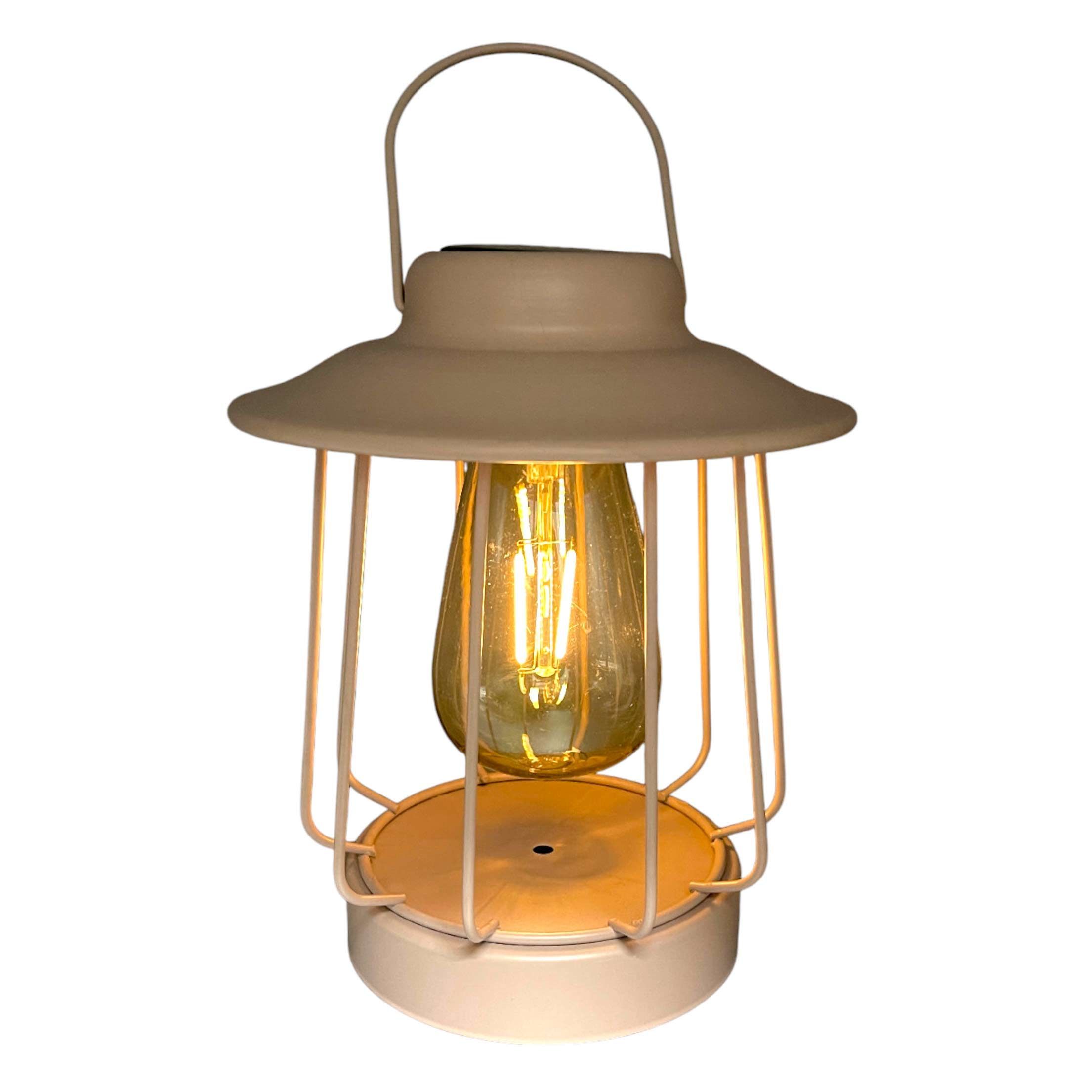 Solar Tischleuchte Laterne sandfarben 16x18cm Retro-Optik Filament LED