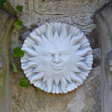 • Massive Steinfigur Wanddeko Sonne aus Steinguss frostfest Gartendeko Raumdeko