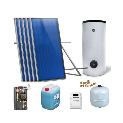 Solaranlage Solarpaket 5 Kollektoren Speicher Flachdach Flachkollektor Speicher