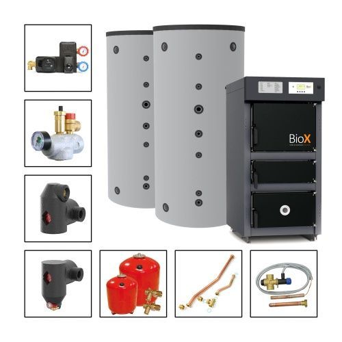 Solarbayer® Solarbayer Holzvergaserset BioX 20- 1C Variante C mit 2xSLS-800S Pufferspeicher