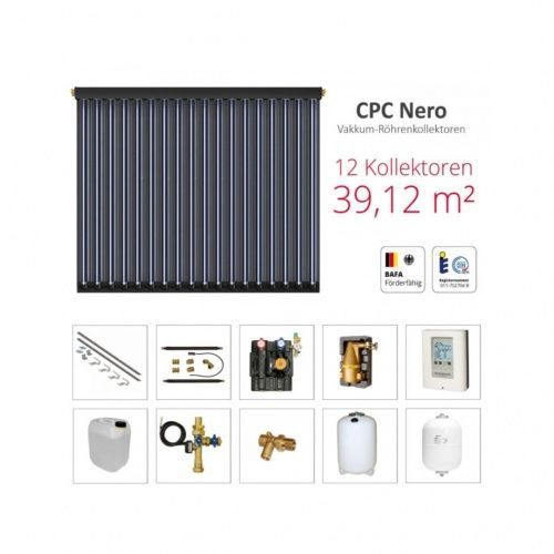 Solarbayer® Solarbayer Komplettsolarpaket CPC NERO12Z Bruttogesamtfläche 39,12m² Vakuumröhre
