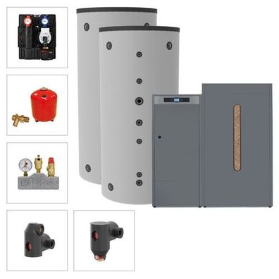 • Solarbayer Pelletkesselset PLT-AC 35-1C Variante C 35kW mit 2xSLS-800-S Speicher