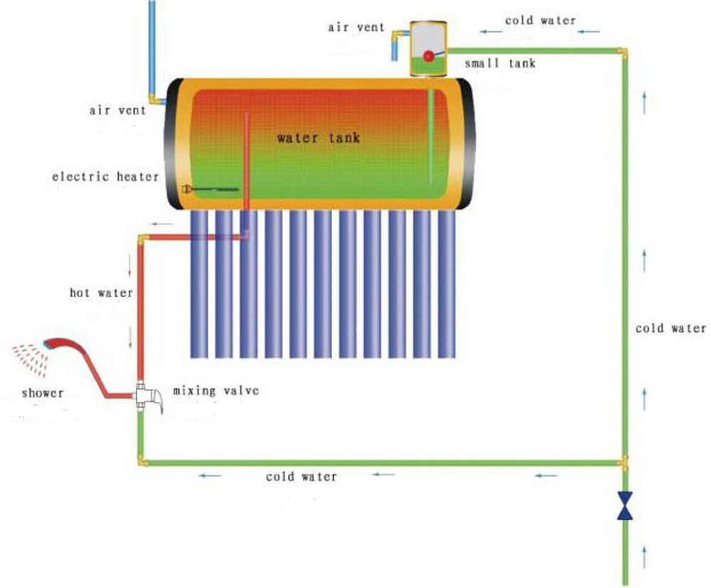 Solarheater, Thermosiphon 95 Liter mit diversem Anschlussmaterial