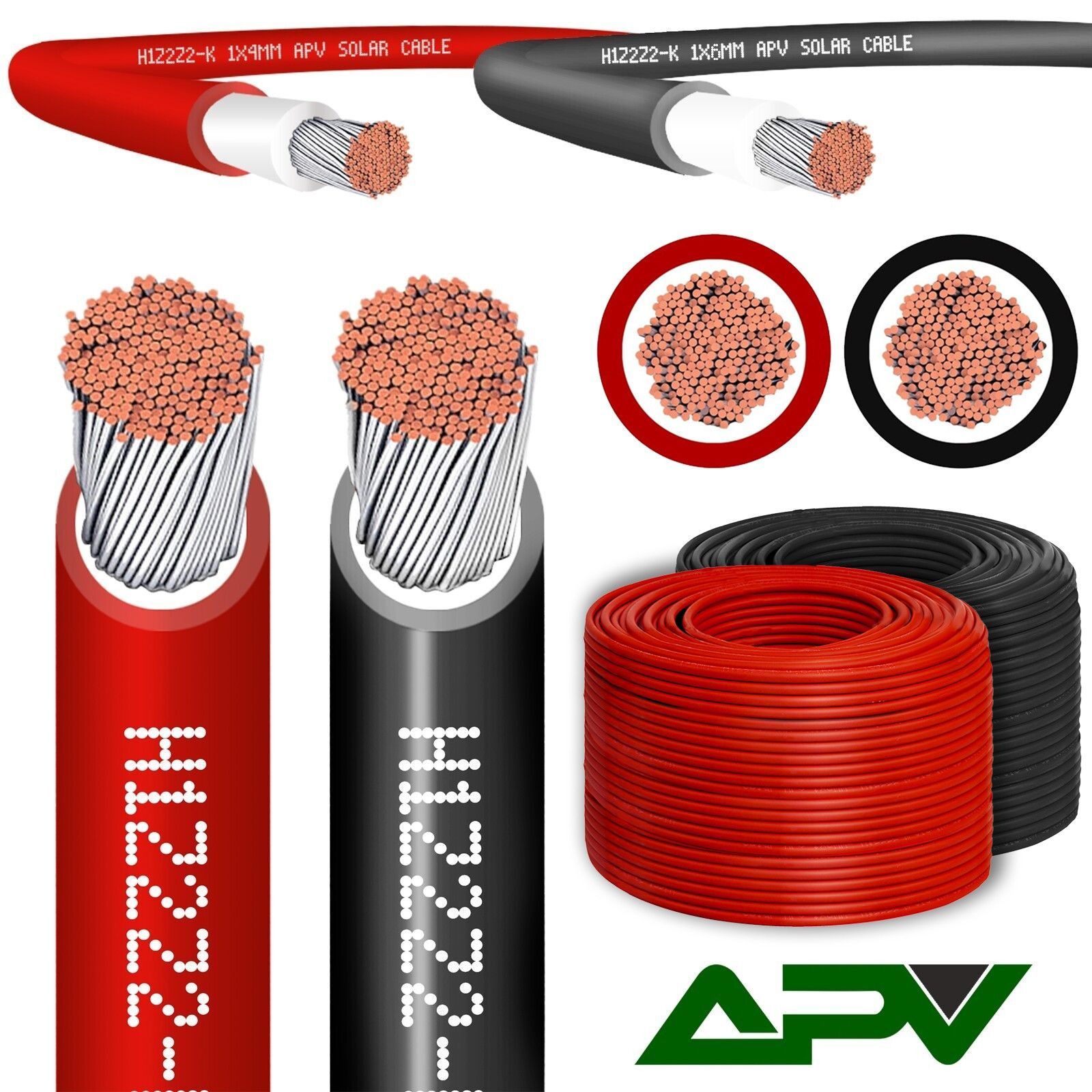 Hochwertiges, flexibles, einadriges Kabel für Photovoltaikanlagen, mit einem mehrdrähtigen Kupferleiter, isoliert und ummantelt mit vernetztem, halogenfreiem Material. Technische Daten: Marke: APV Lange: 0,5 - 500 m Nennquerschnitt des Leiters: 6mm² Farbe: rot oder schwarz Kabeltyp: H1Z2Z2-K Ne