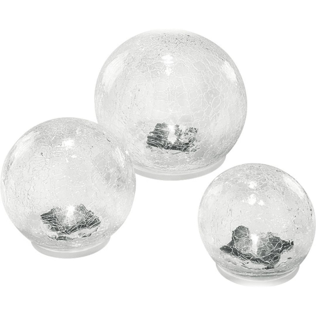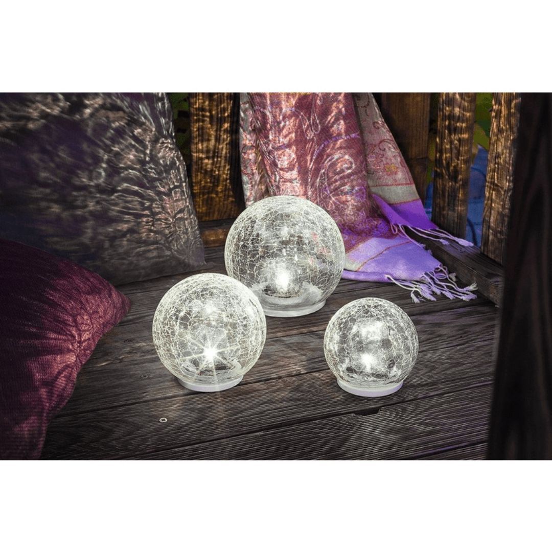Solarleuchte Glaskugel 3er Set, Krakelee Glas, 10-15 cm