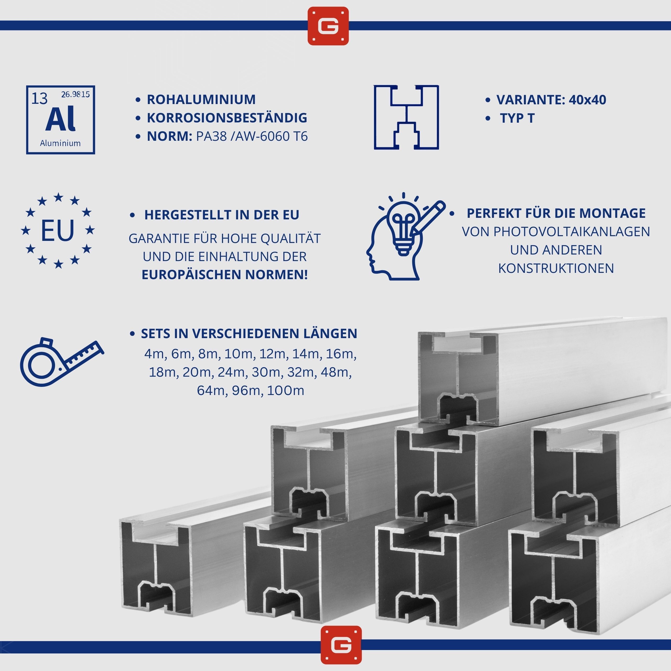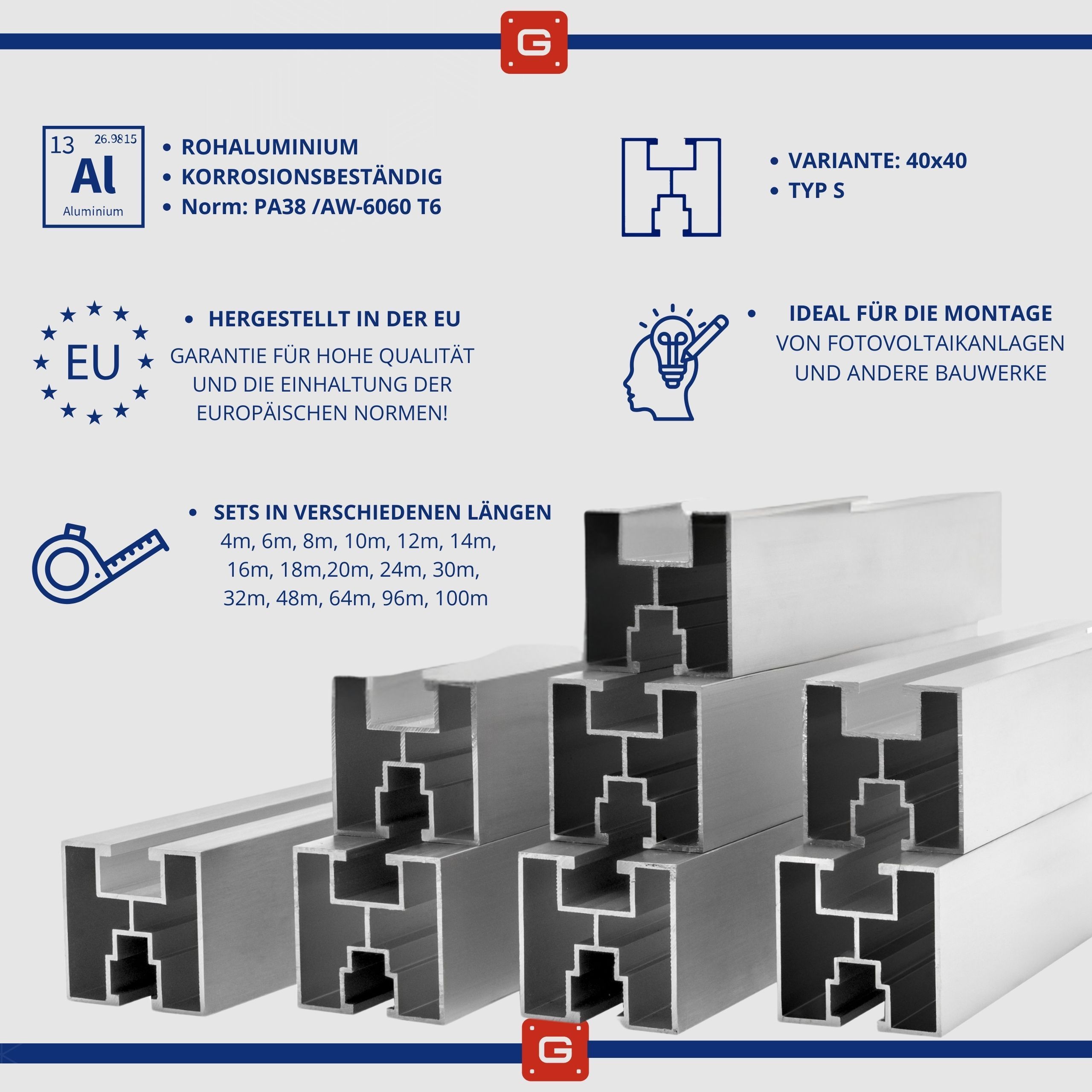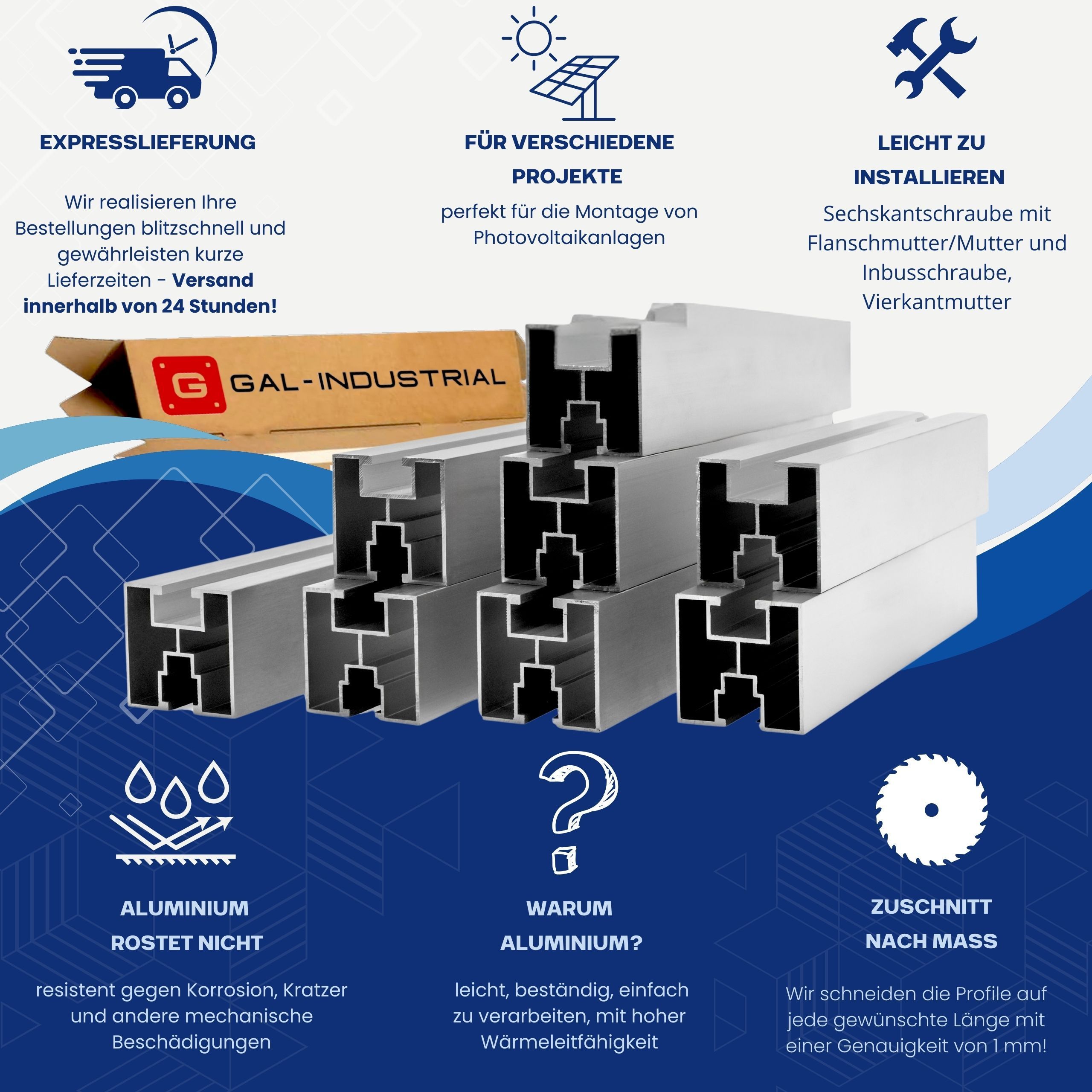 Solarschiene Aluminium Solarprofil Photovoltaik Montageprofil, Auswahl DER LÄNGE