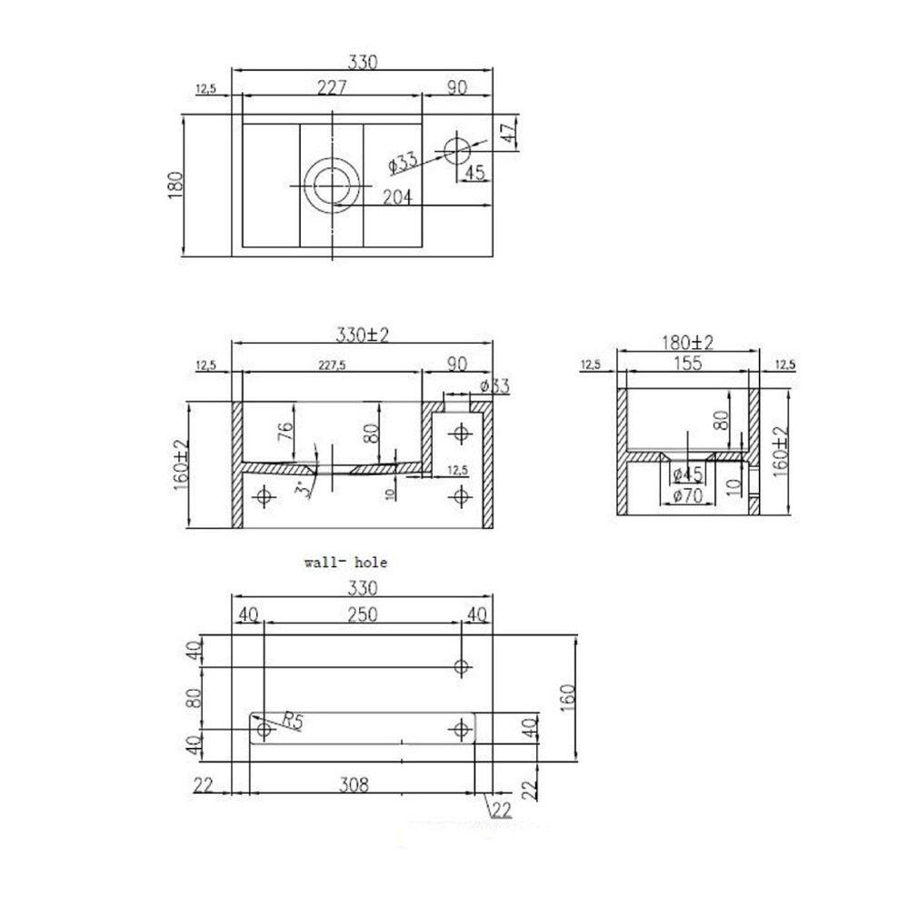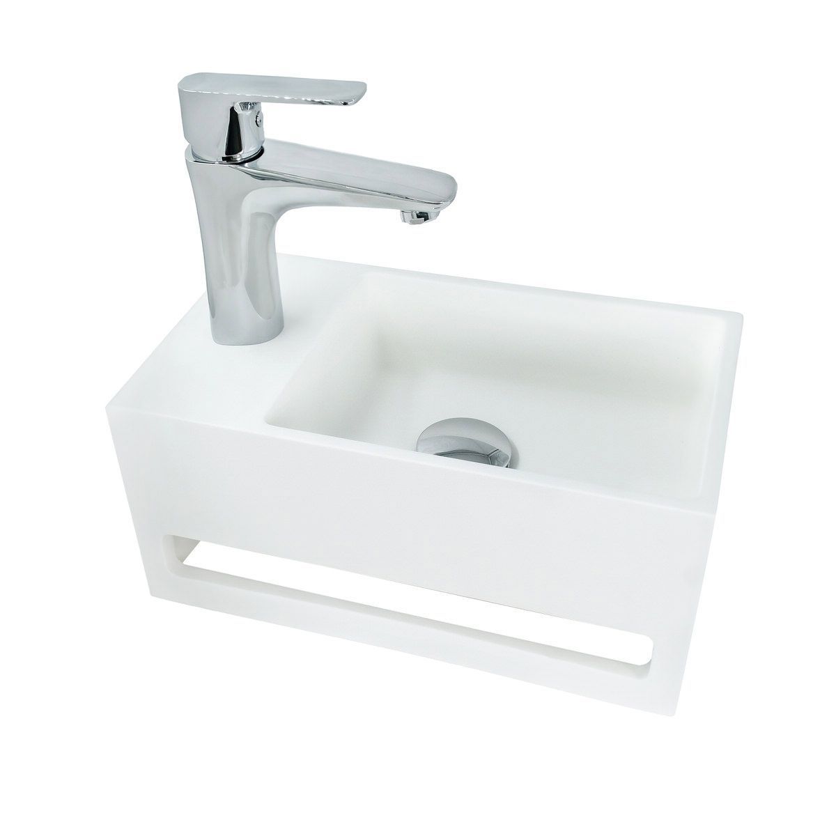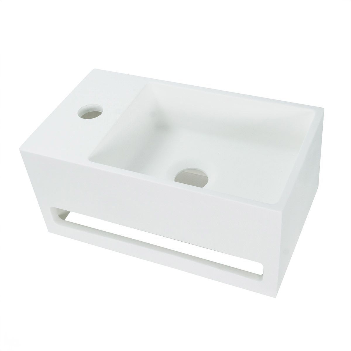 Solid Surface Waschbecken + Handtuchhalterung Hahnloch Links 36x20x16cm