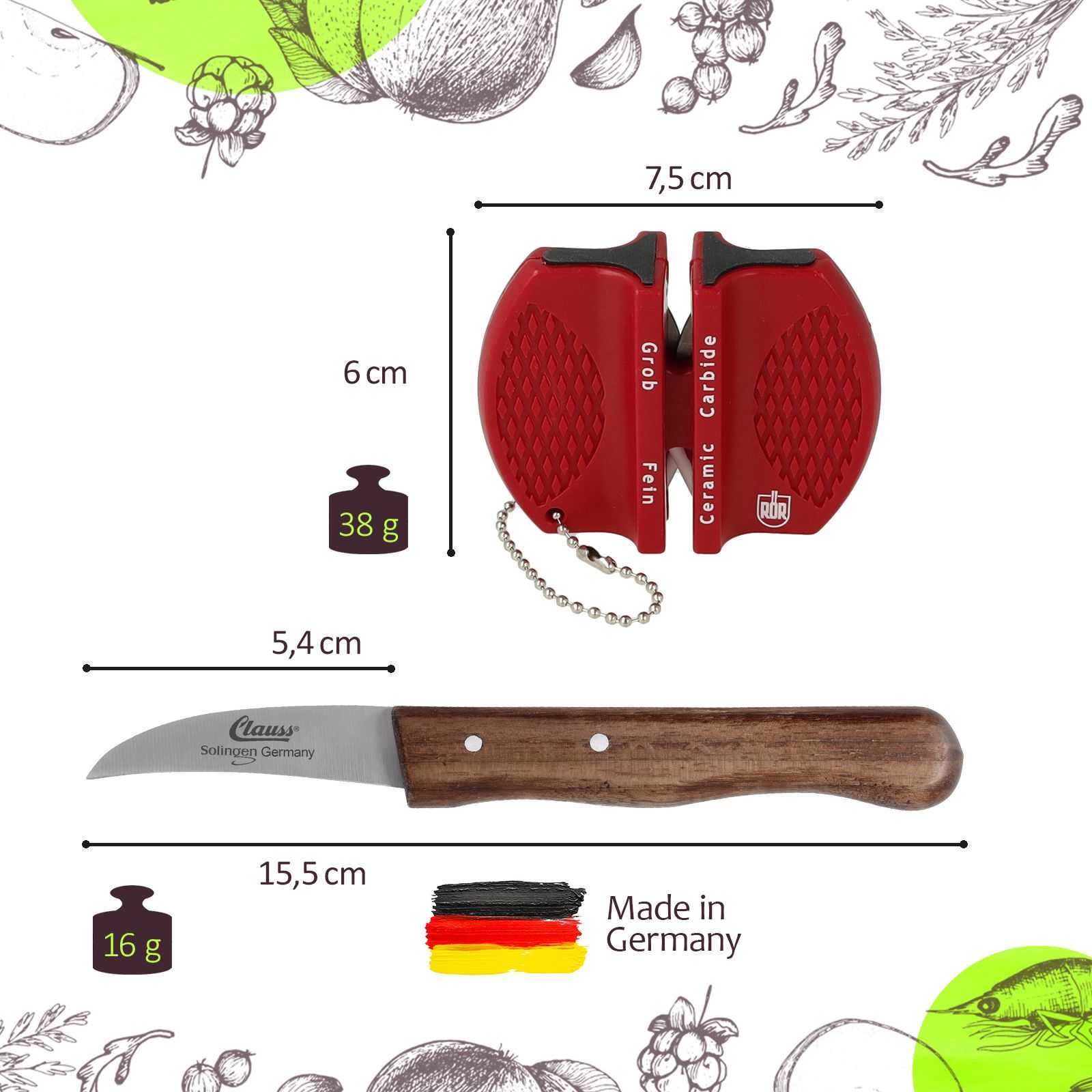 Solingen Original Zöppken Schälmesser Messerschärfer Set Rostfrei Messer klein