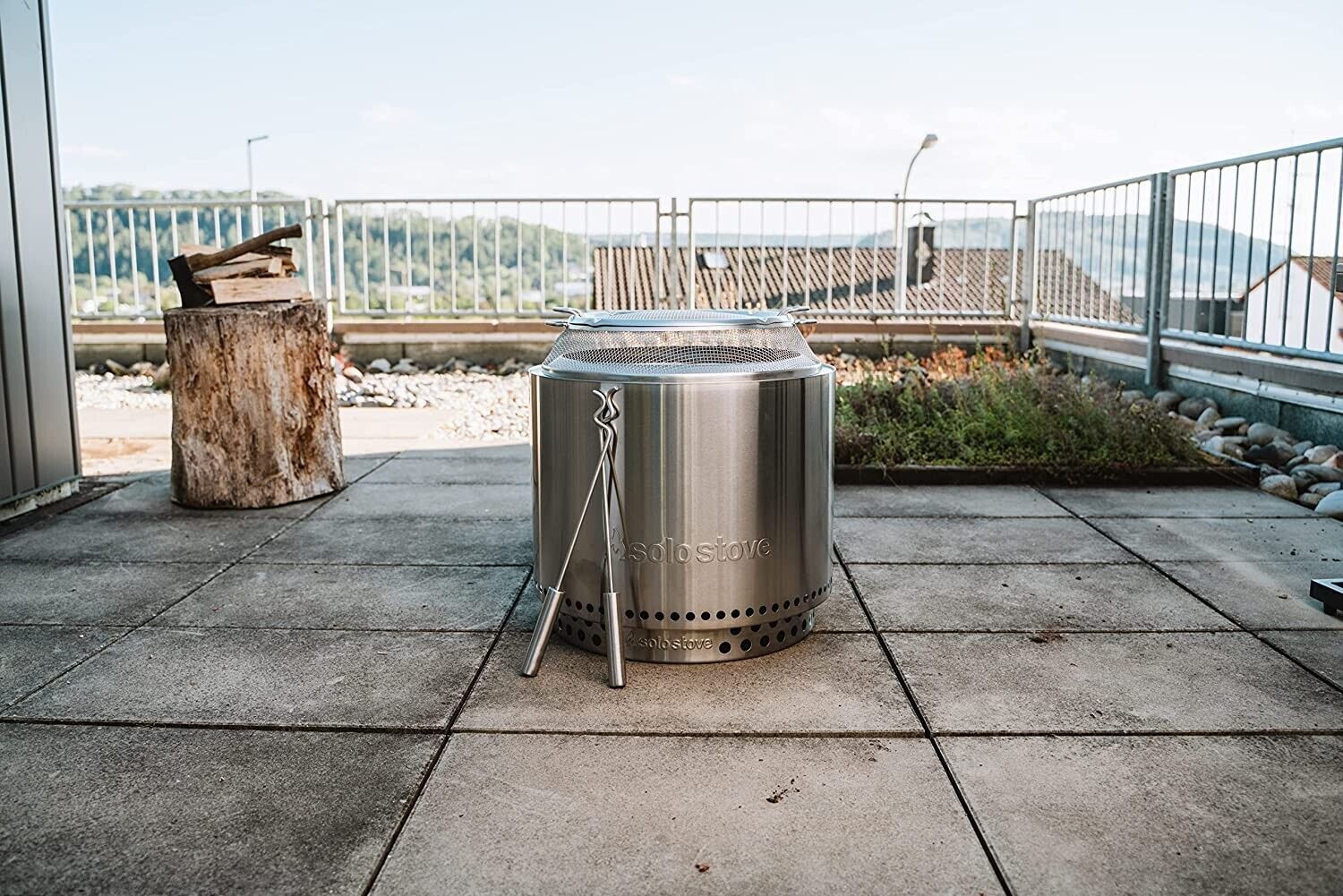 Solo Stove Feuerschale Bonfire Outdoor Kamin Edelstahl, Standfuß + Funkenschutz (III)
