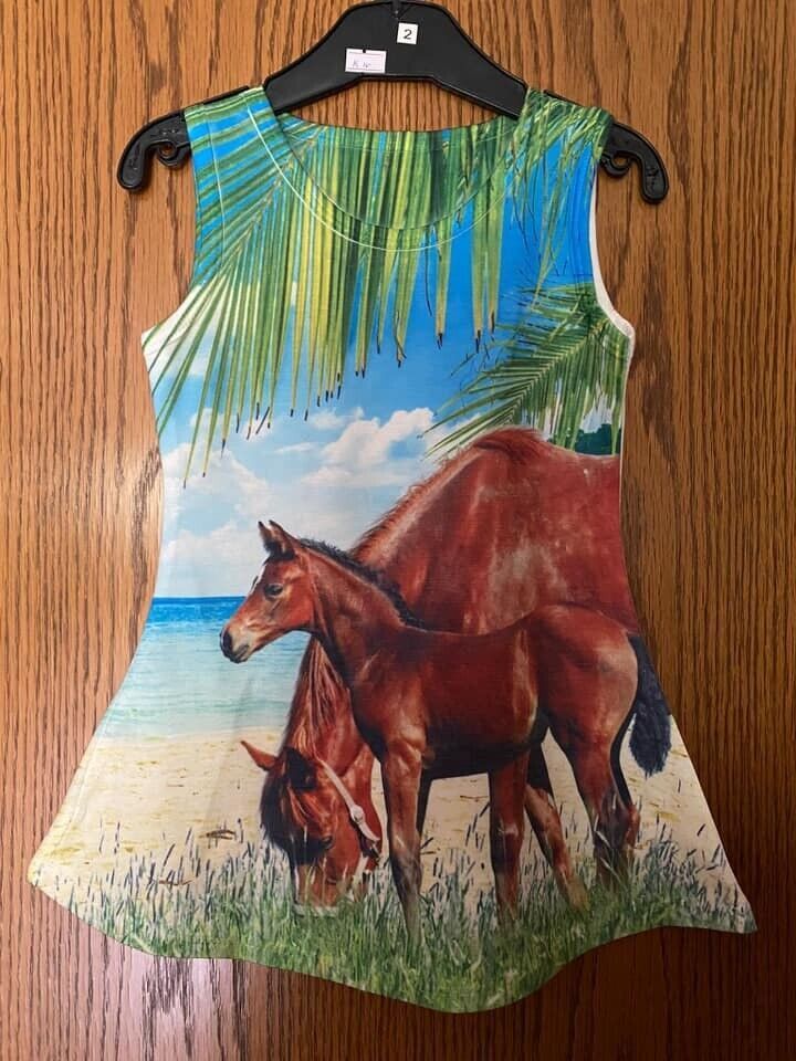 Wunderschönes Sommerkleid mit großen Pferdemotiv. Die Kleider haben schmale Träger und einen Rundhalsausschnitt. Material: 100% Baumwolle Besuchen Sie gerne auch unseren Onlineshop oder unseren Hood- Shop. Wir versenden mehrere Artikel natürlich immer zusammen und das zum günstigsten Preis.