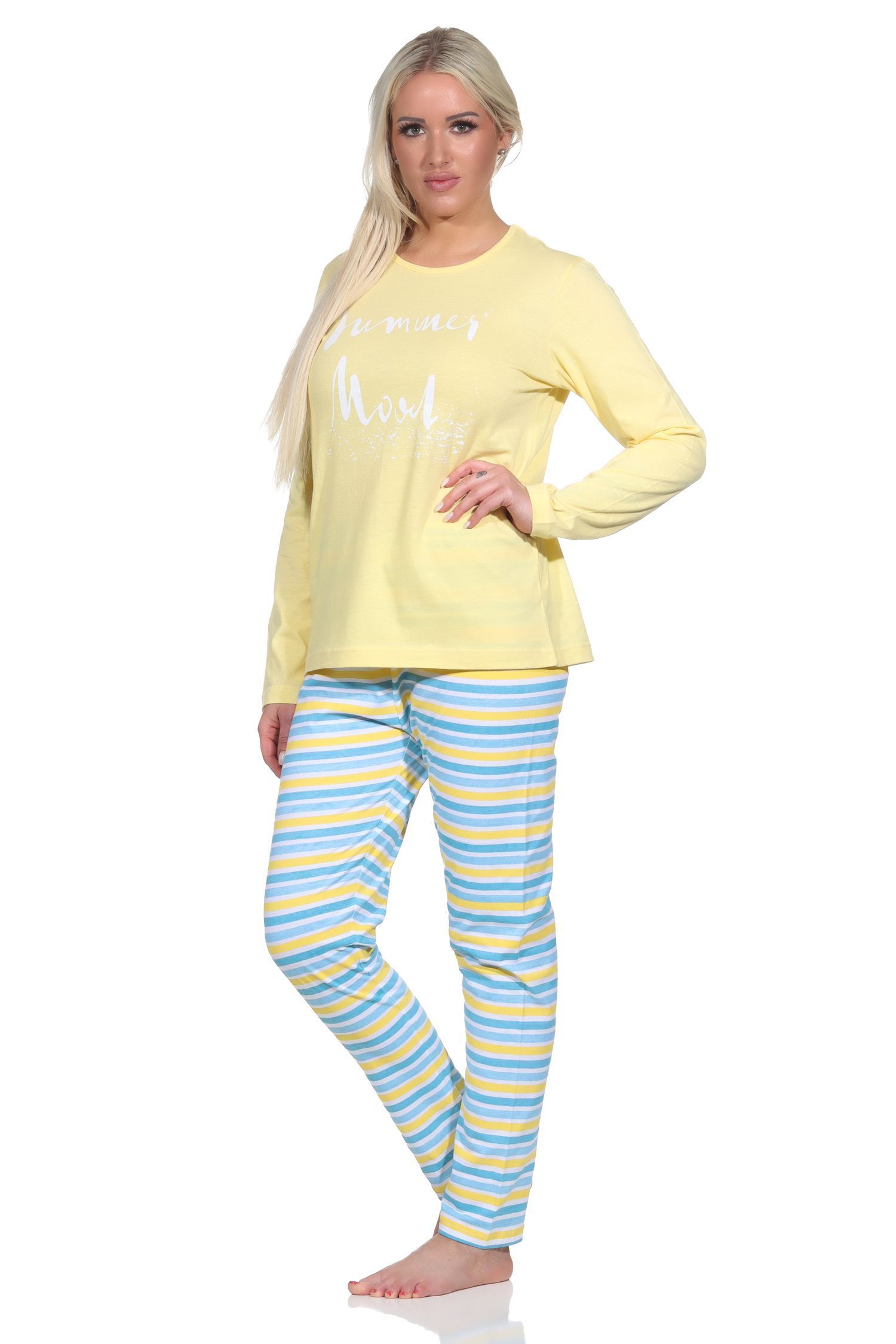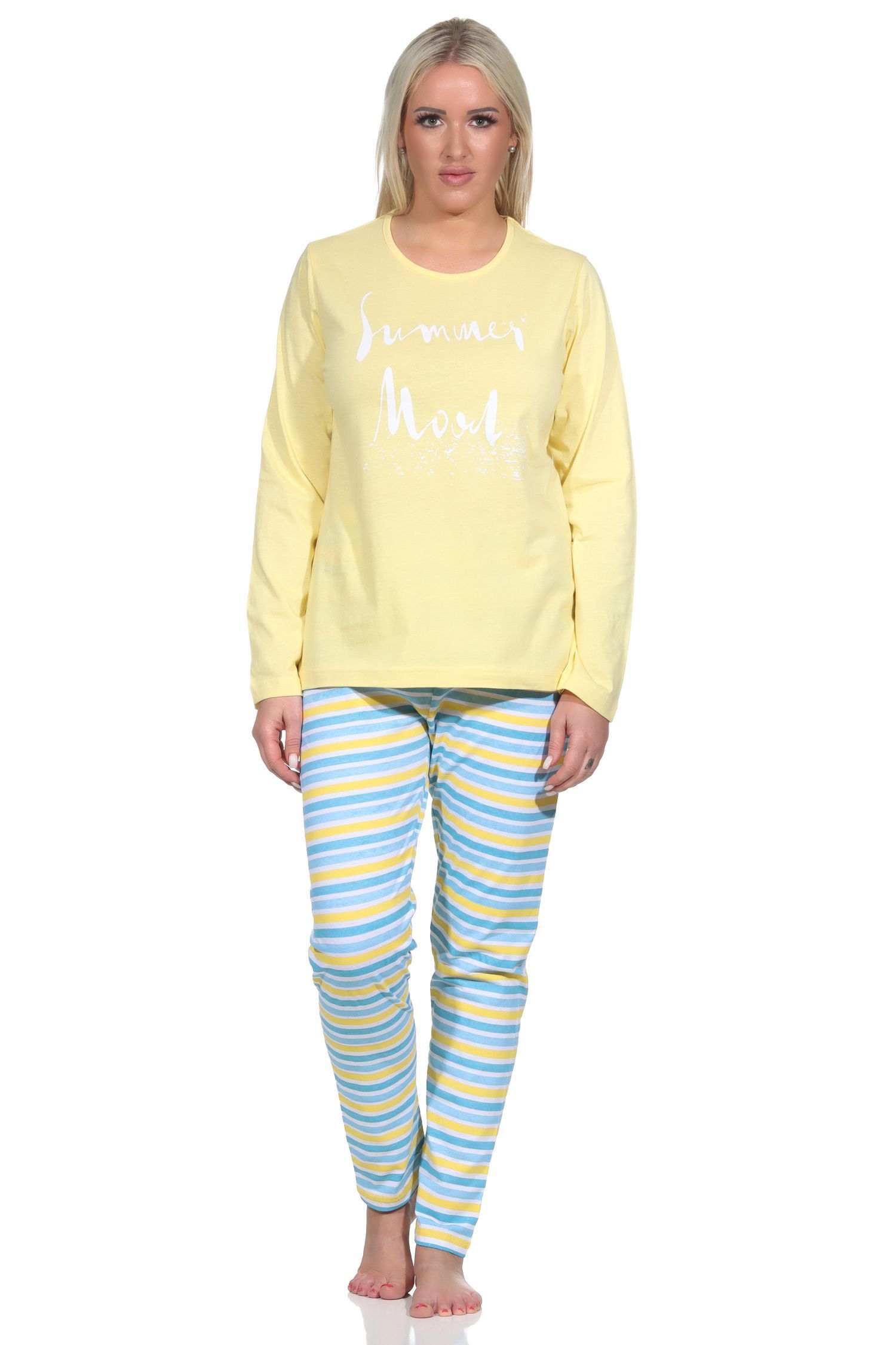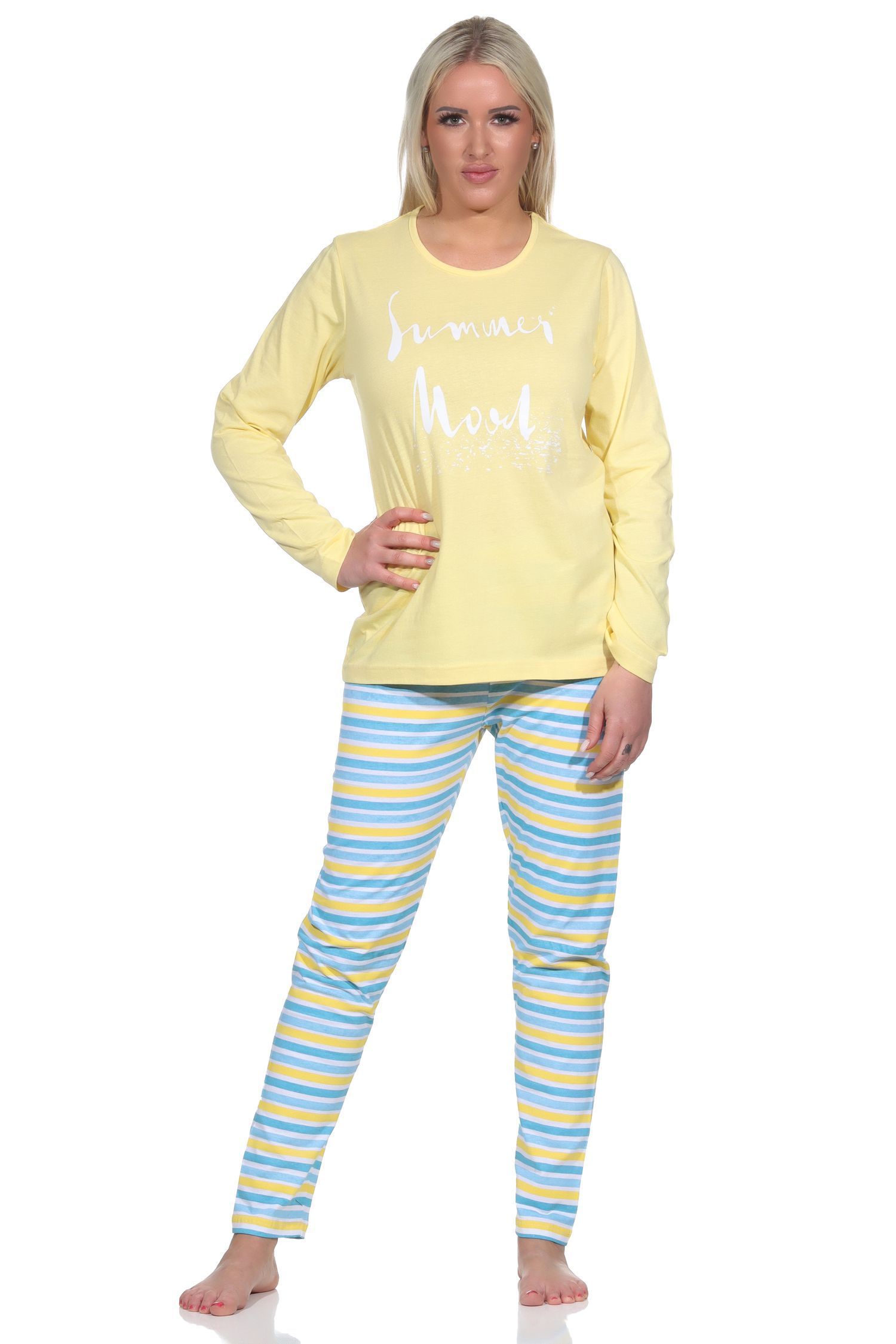 NORMANN Sommerlicher Damen Pyjama Schlafanzug mit Ringeln in strahlenden Farben