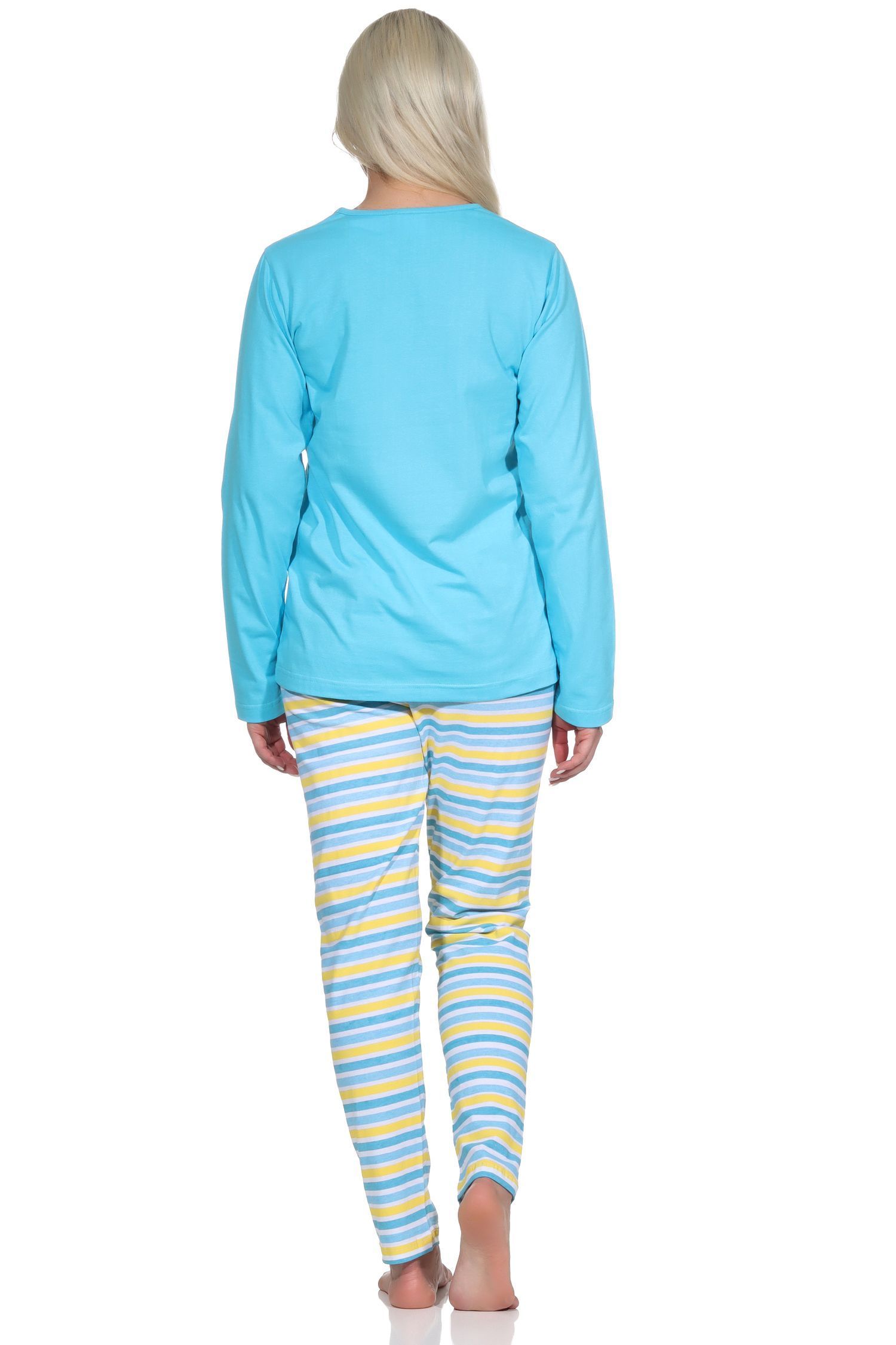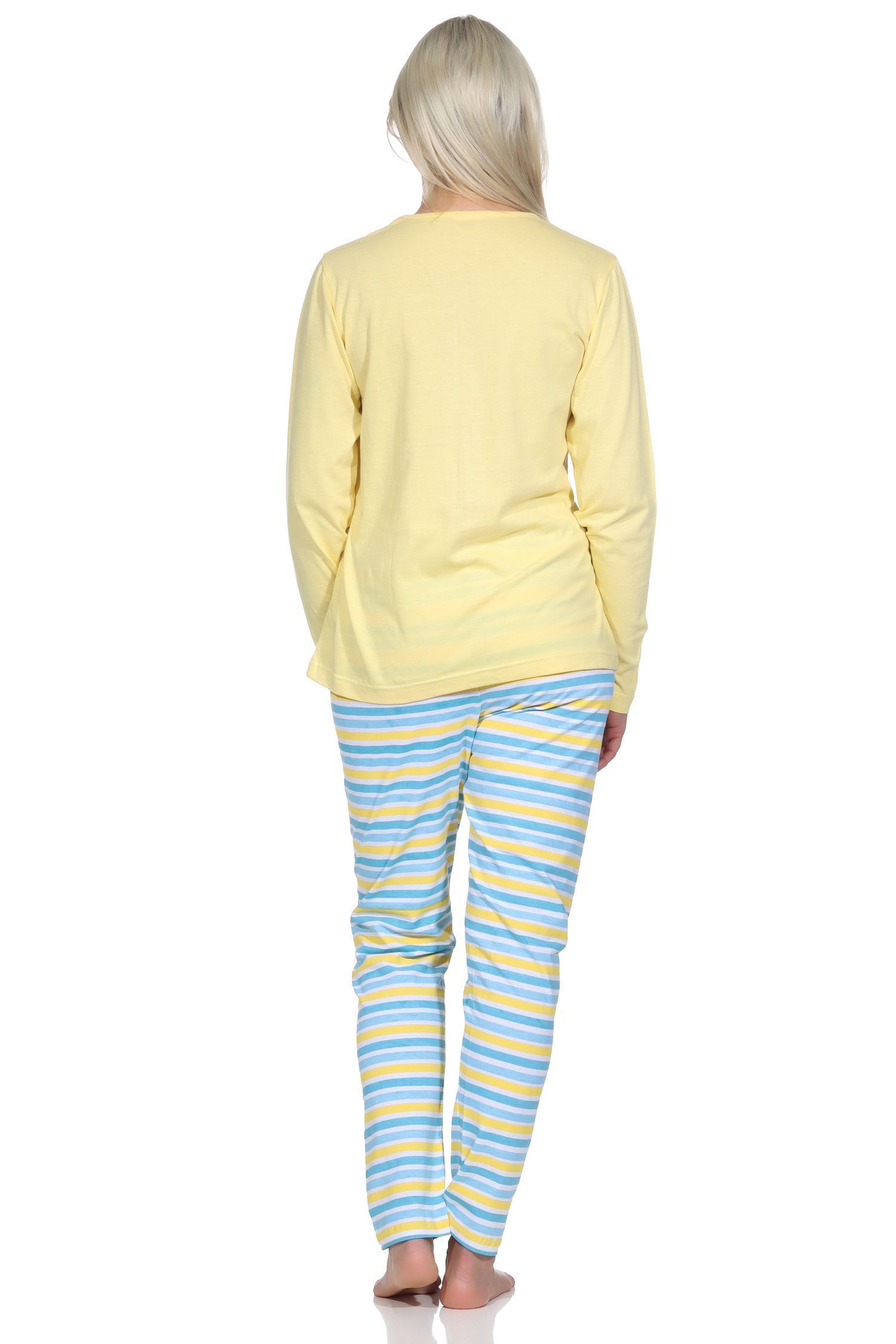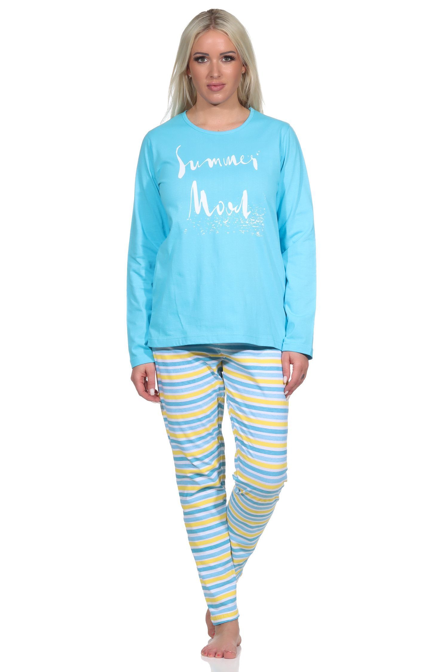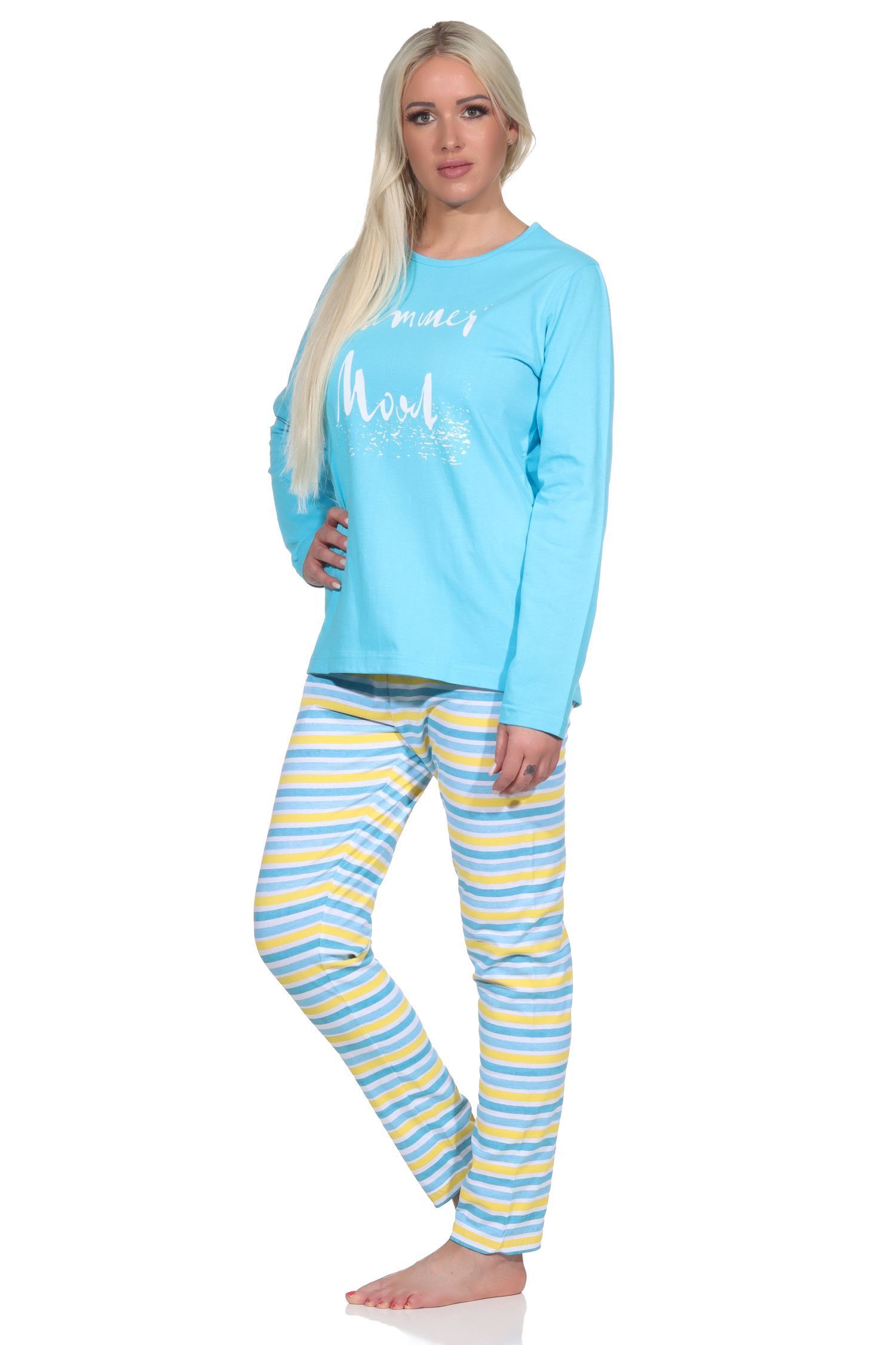 NORMANN Sommerlicher Damen Pyjama Schlafanzug mit Ringeln in strahlenden Farben
