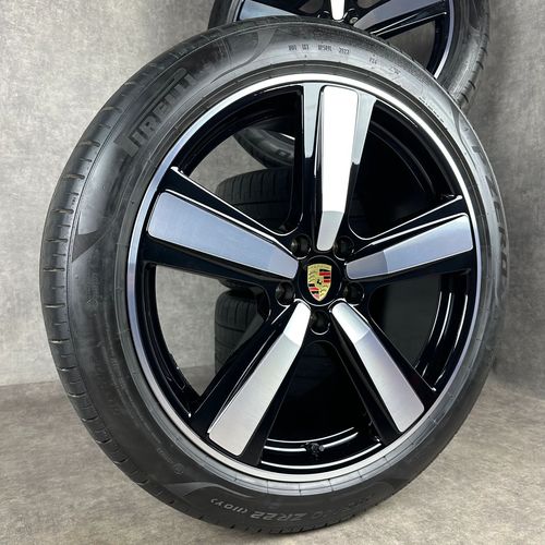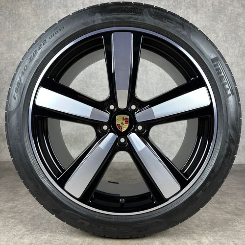 4x Original PORSCHE Cayenne Coupé (E3 II) 22 Exclusive Design Felgen Sommerkompletträder schwarz hochglanz inkl. glanzdrehbereichen Original Lack VA Dimension: 10Jx22 ET48 Teilenummer: 9Y0601025EA 285 40 R22 110Y Pirelli PZERO NC0, gebraucht, Profil 5,2mm HA Dimension: 11,5Jx22 ET52 Teilenummer: 9Y3