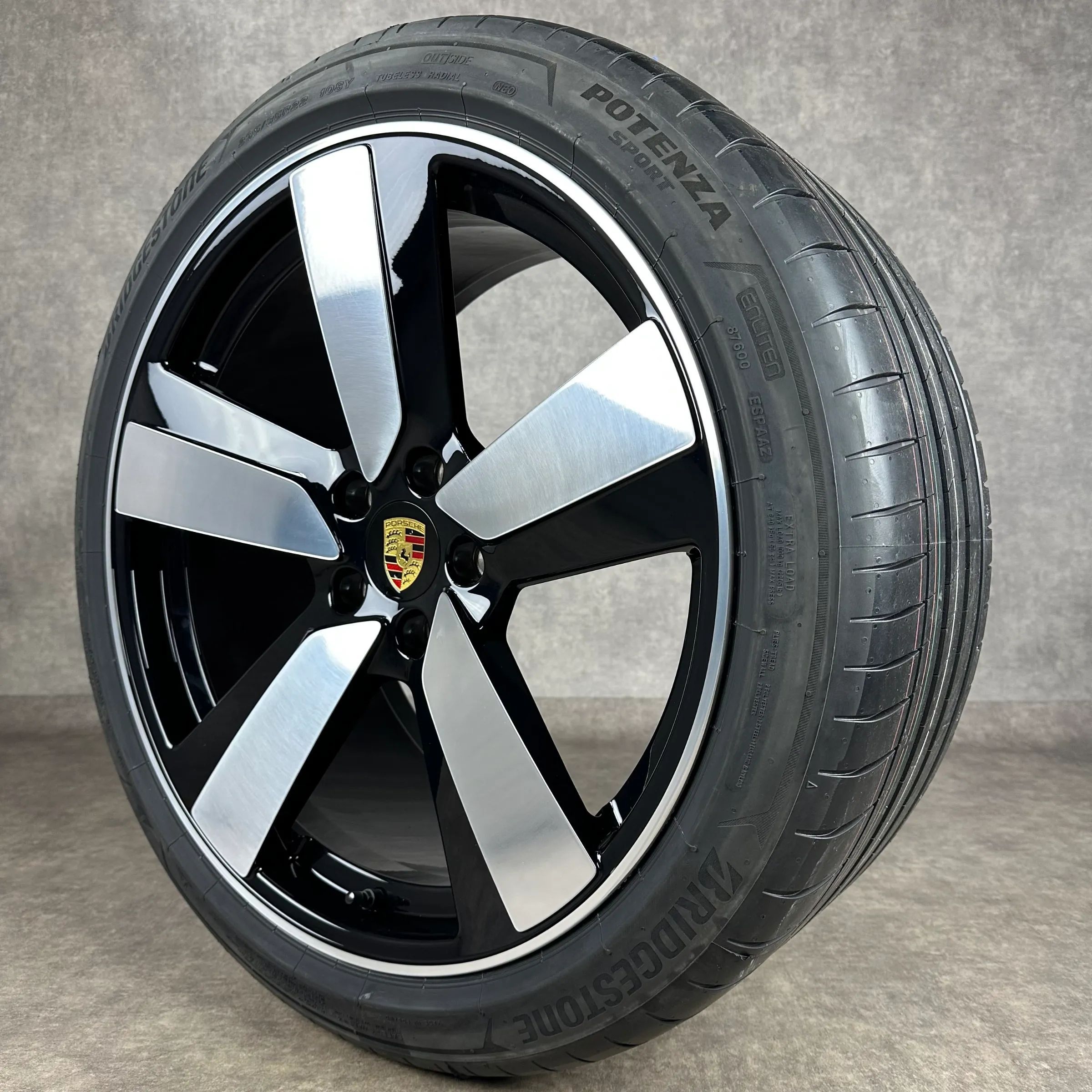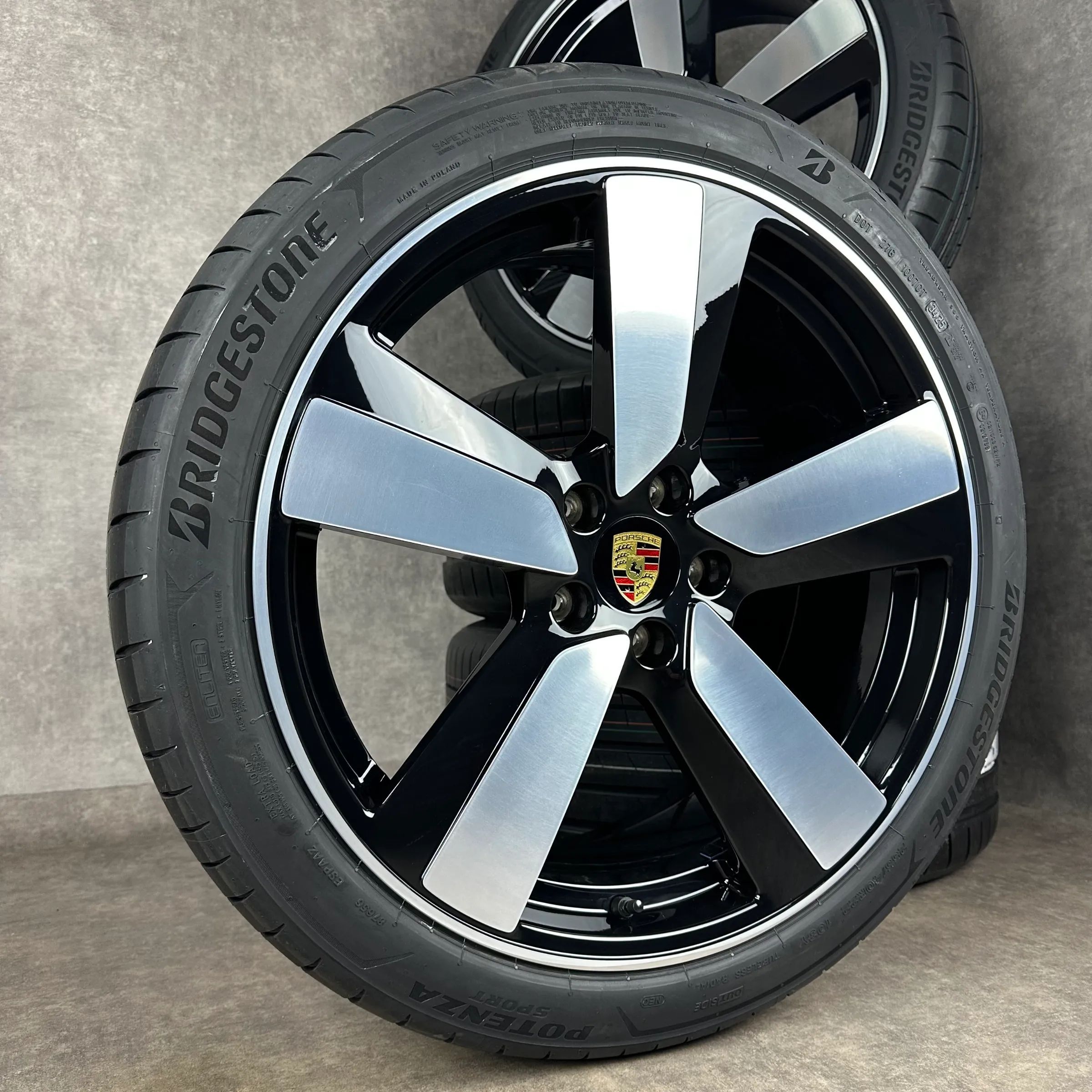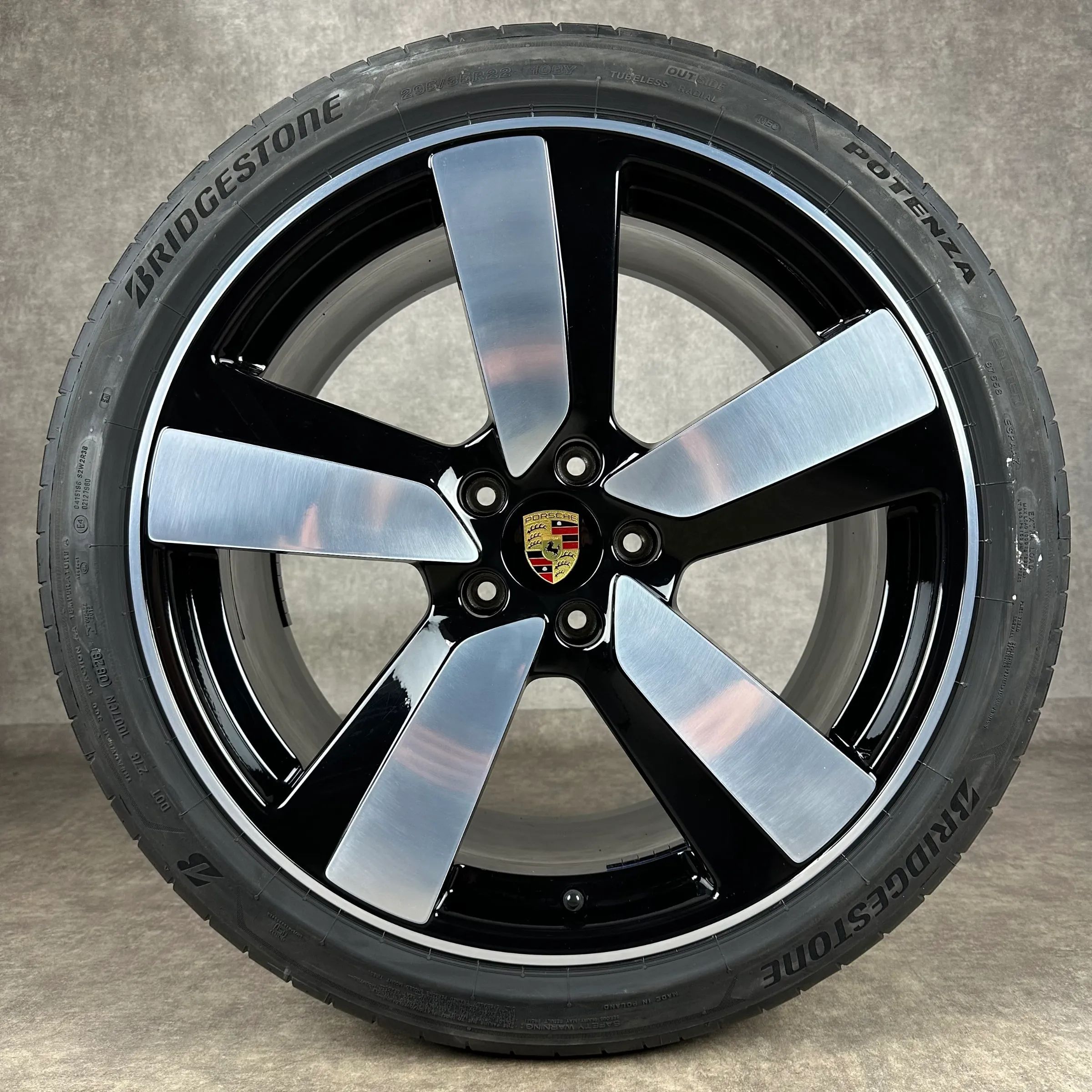 4x Original PORSCHE Macan EV 22 Macan Sport Felgen Sommerkompletträder schwarz hochglanz inkl. glanzdrehbereichen Original Lack VA Dimension: 9Jx22 ET29 Teilenummer: 95C601025BH 255 40 R22 103Y Bridgestone Potenza Sport NE0, neu HA Dimension: 11Jx22 ET47 Teilenummer: 95C601025BJ 295 35 R22 108Y Brid