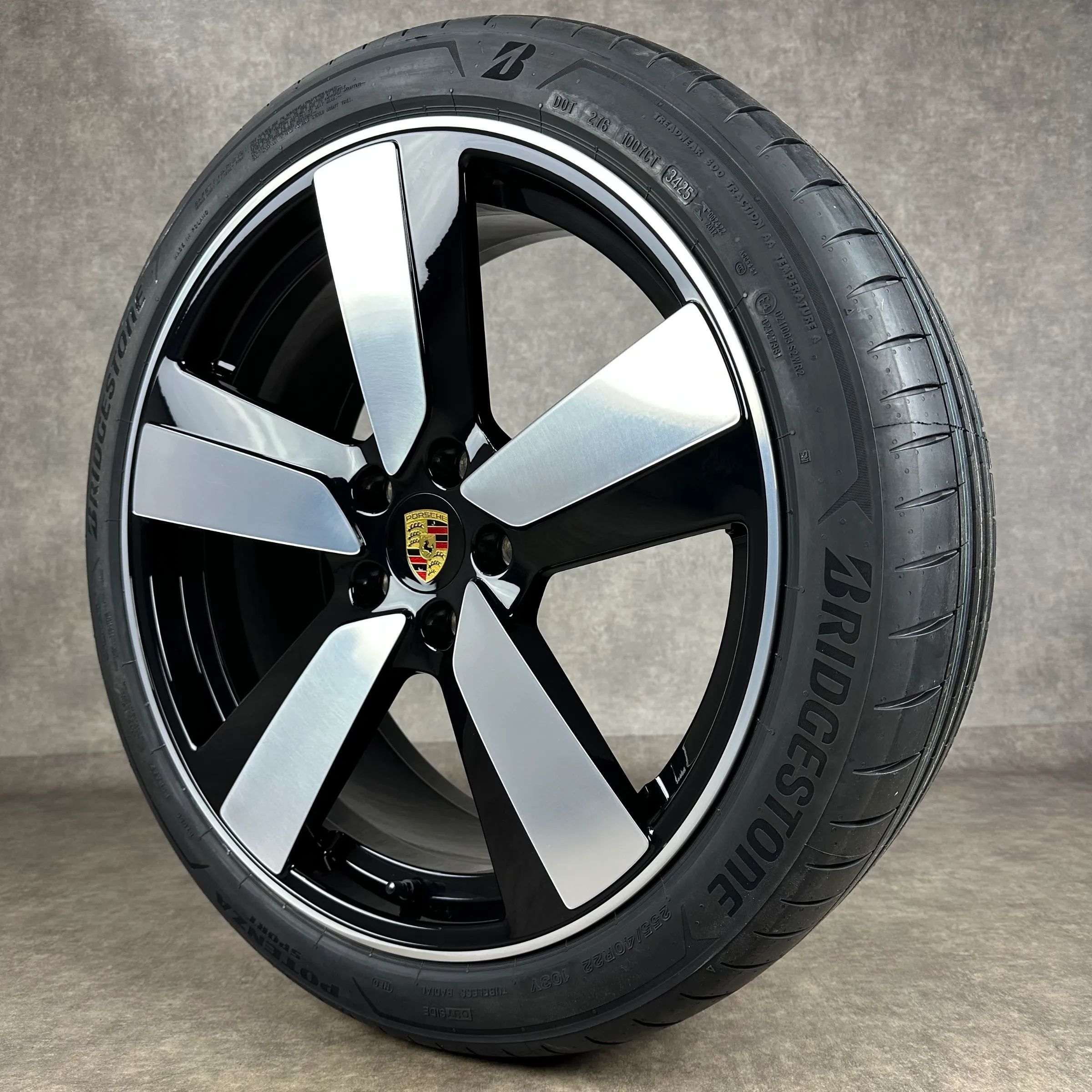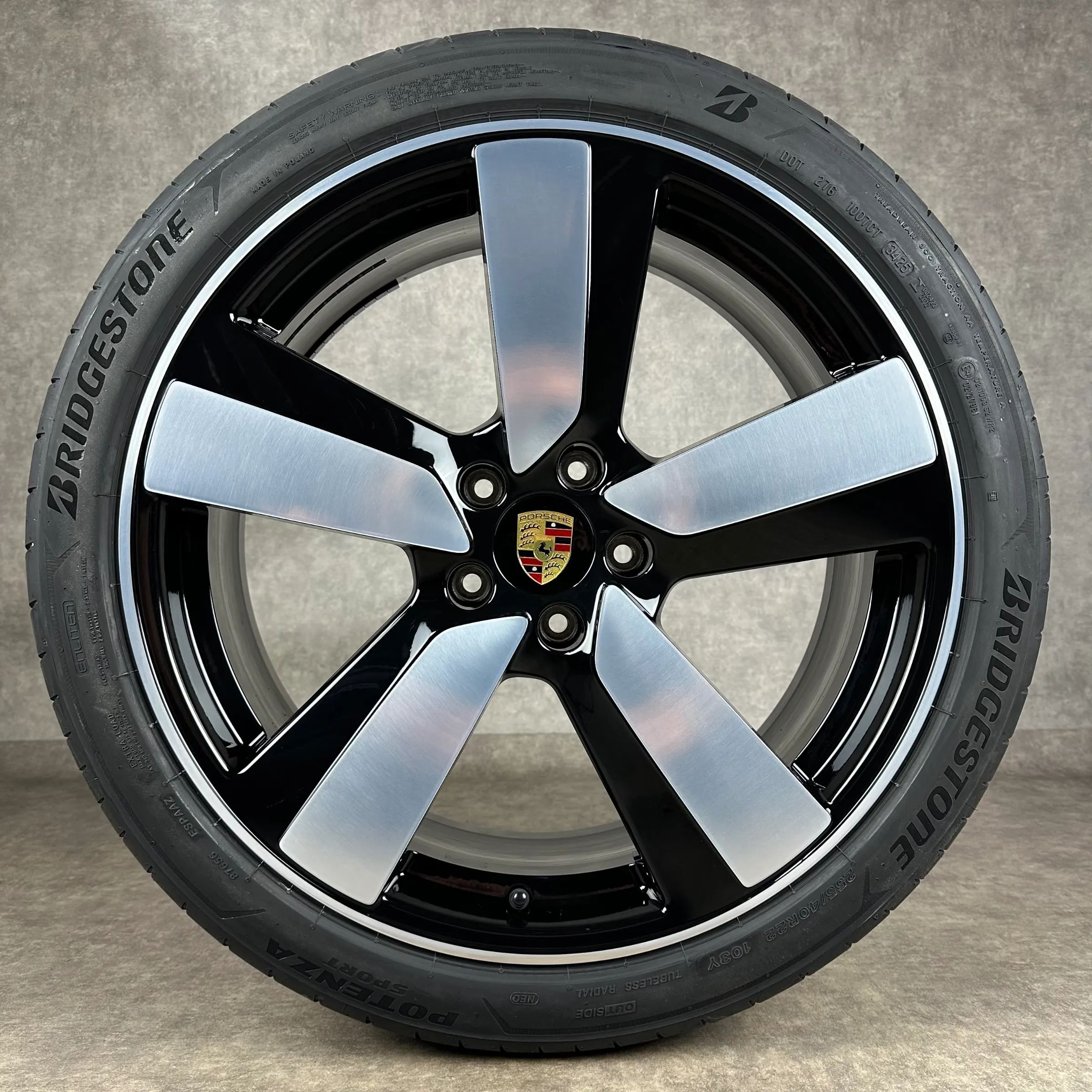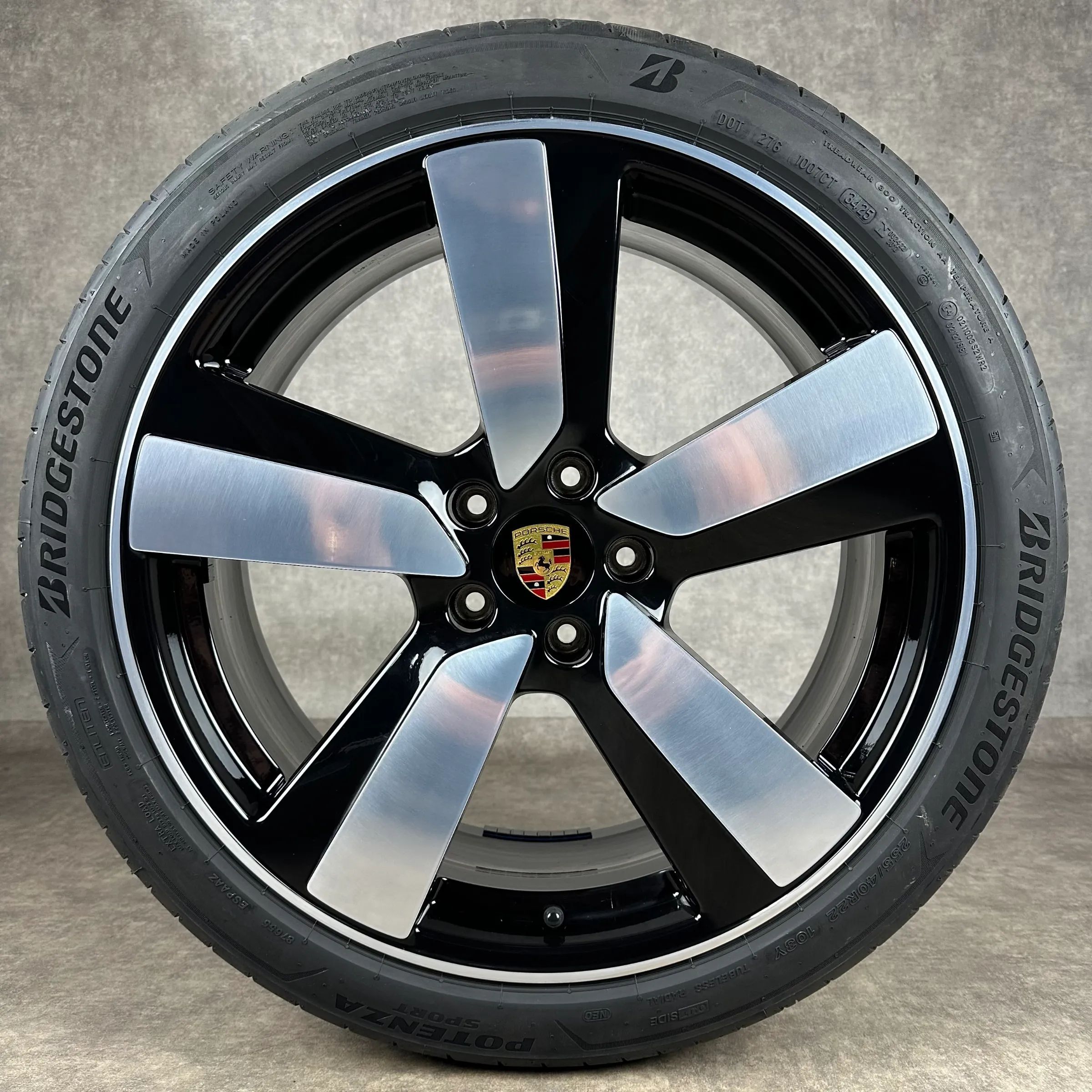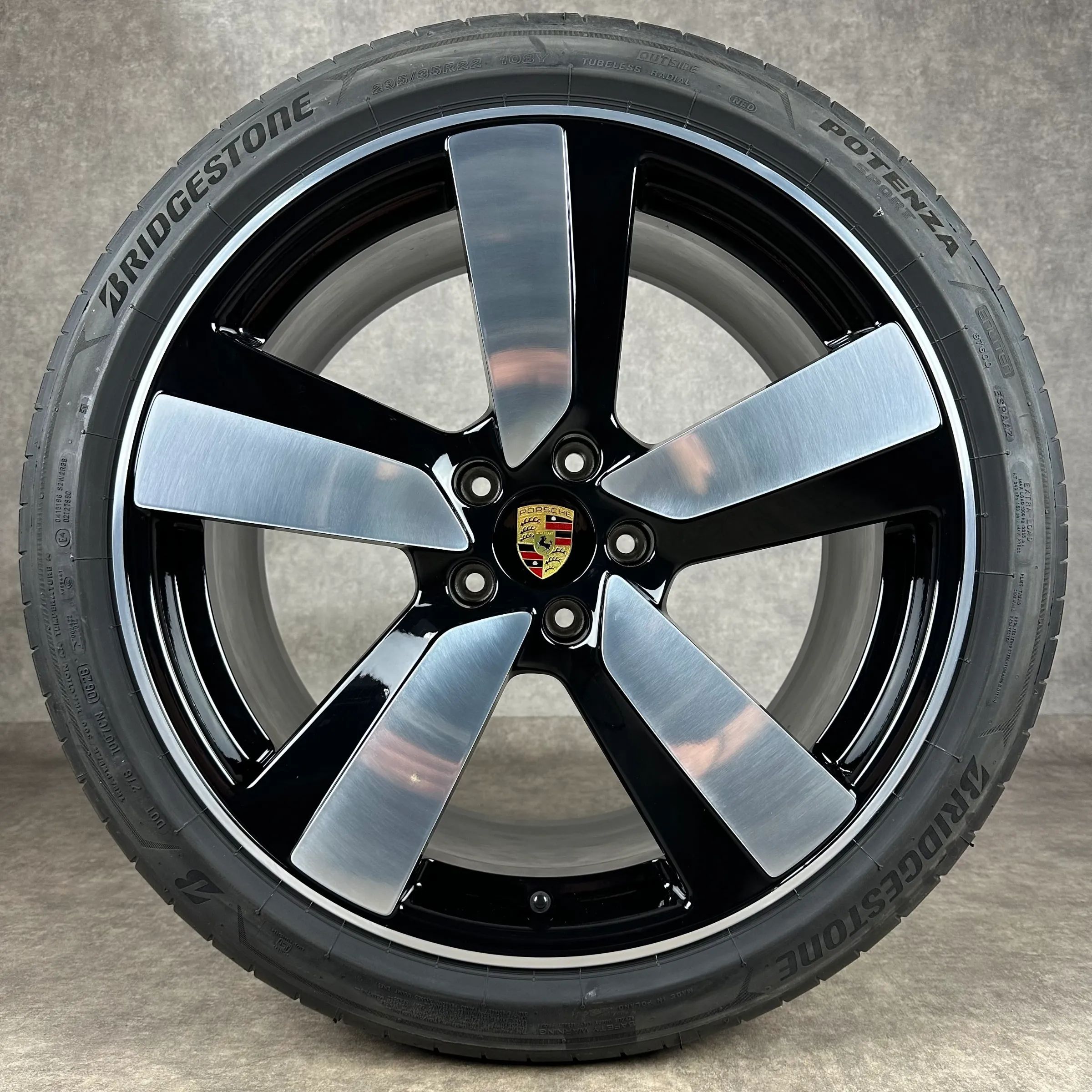 4x Original PORSCHE Macan EV 22 Macan Sport Felgen Sommerkompletträder schwarz hochglanz inkl. glanzdrehbereichen Original Lack VA Dimension: 9Jx22 ET29 Teilenummer: 95C601025BH 255 40 R22 103Y Bridgestone Potenza Sport NE0, neu HA Dimension: 11Jx22 ET47 Teilenummer: 95C601025BJ 295 35 R22 108Y Brid