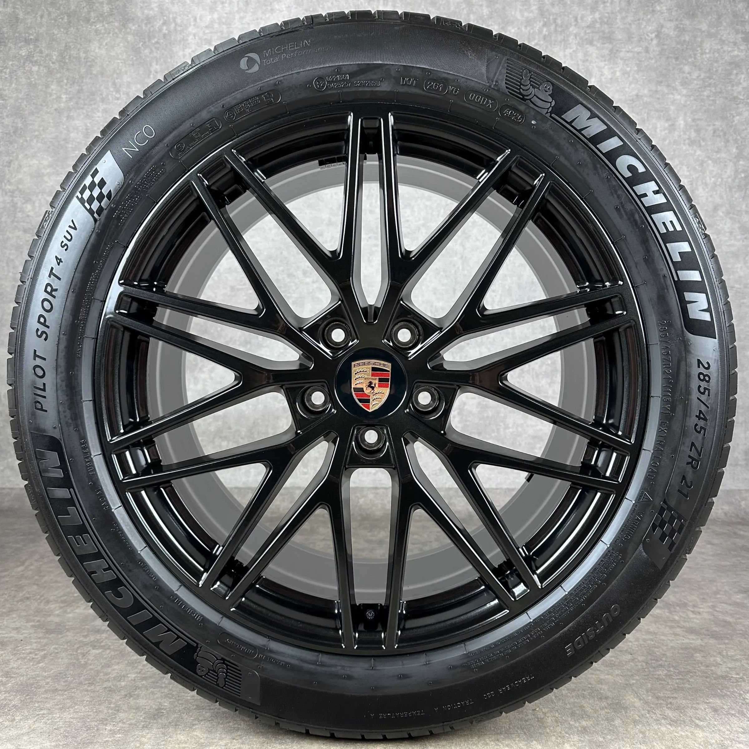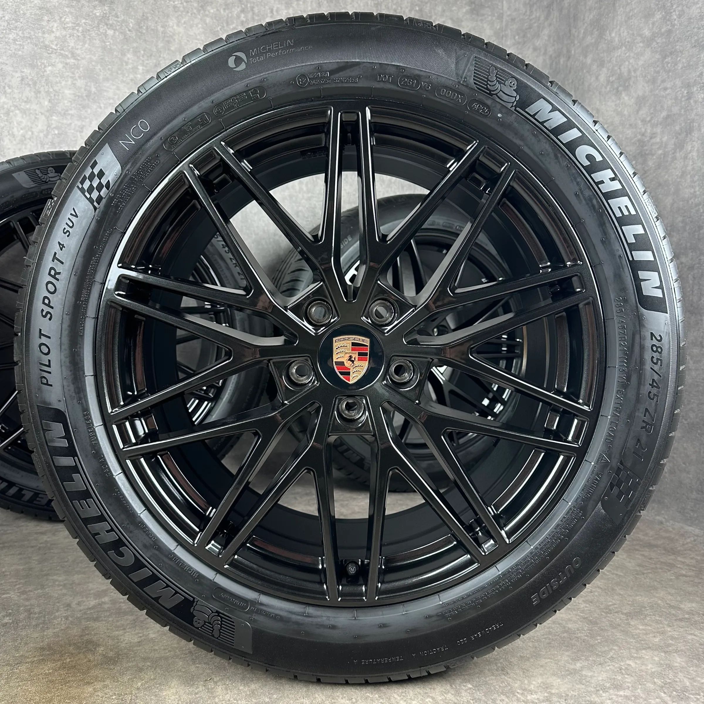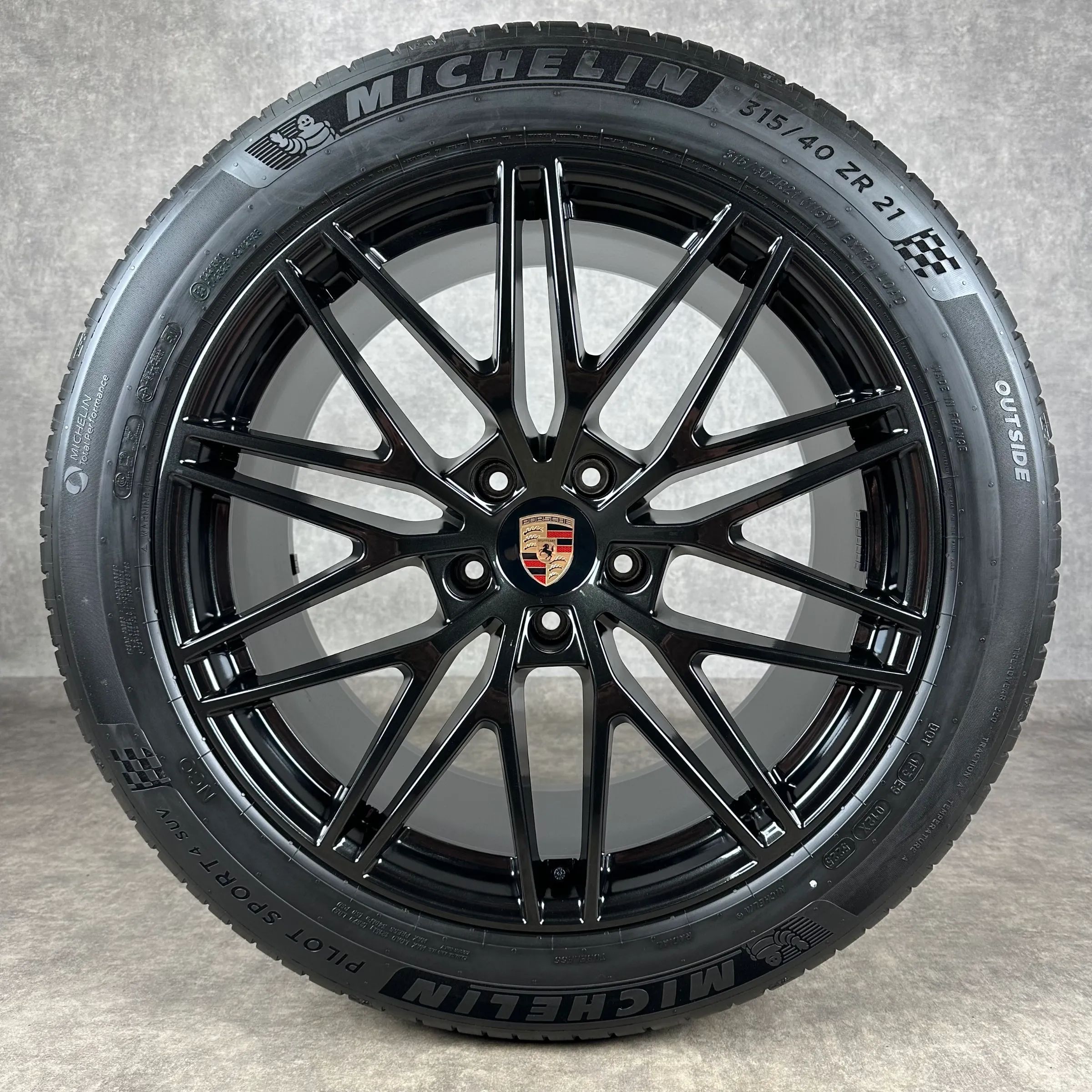 4x Original PORSCHE Cayenne Coupé (E3 II) 21 RS Spyder Felgen Sommerkompletträder tiefschwarz metallic Original Lack VA Dimension: 9,5Jx21 ET46 Teilenummer: 9Y0601025GA 285 45 R21 113Y Michelin Pilot Sport 4 SUV NC0, neu HA Dimension: 11Jx21 ET49 Teilenummer: 9Y3601025DJ 315 40 R21 115Y Michelin Pil