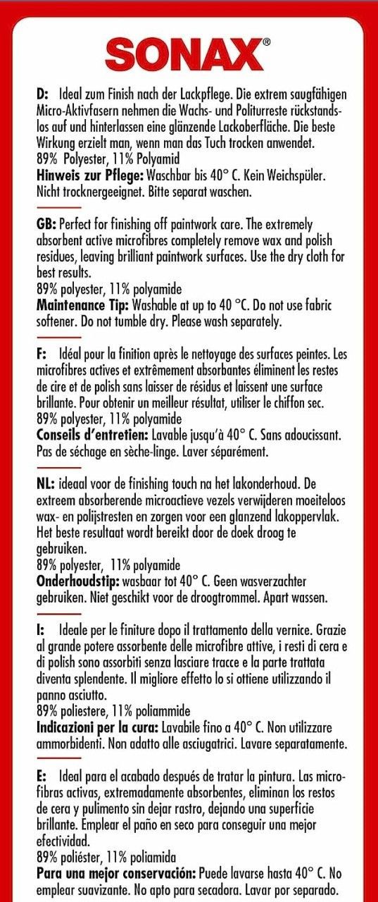 SONAX SONAX MicrofaserTuch Außen - der Lackpflegeprofi 40 x 40 cm