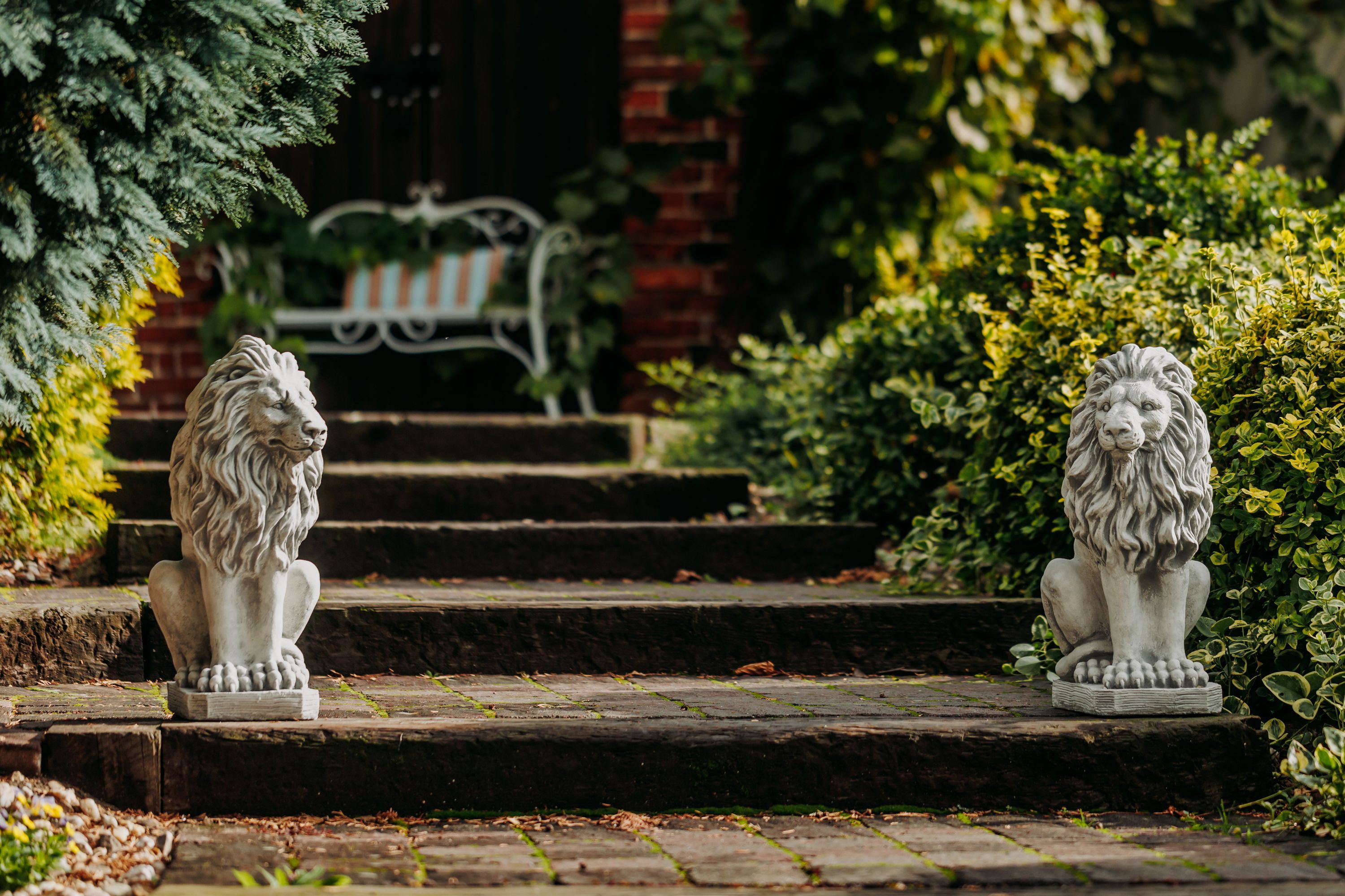Sonderangebot: Große massive Stein Löwen Paar Torwächter aus Steinguss frostfest