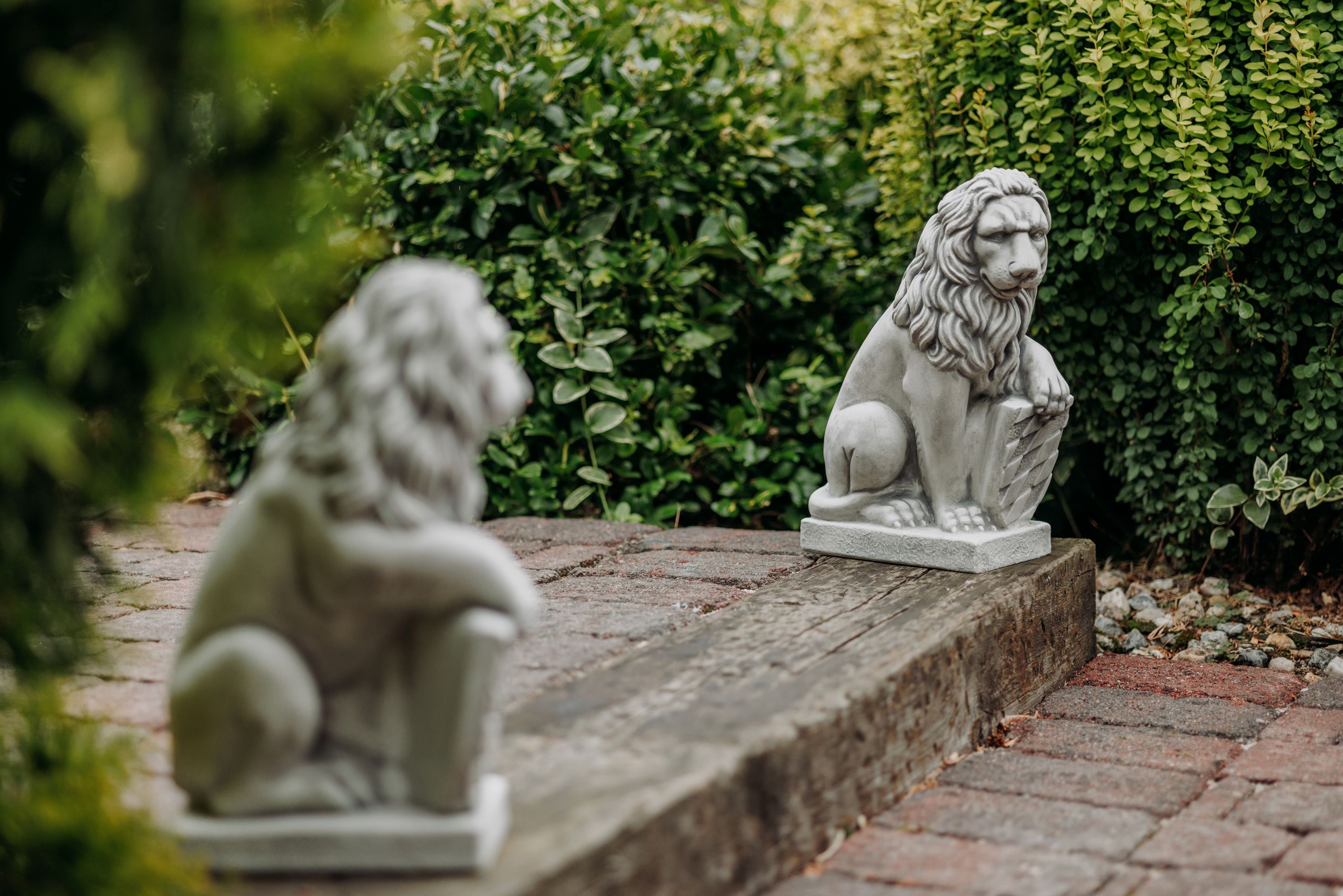 Sonderangebot: Massive Steinfiguren Löwen Paar mit Schild Torwächter Steinguss