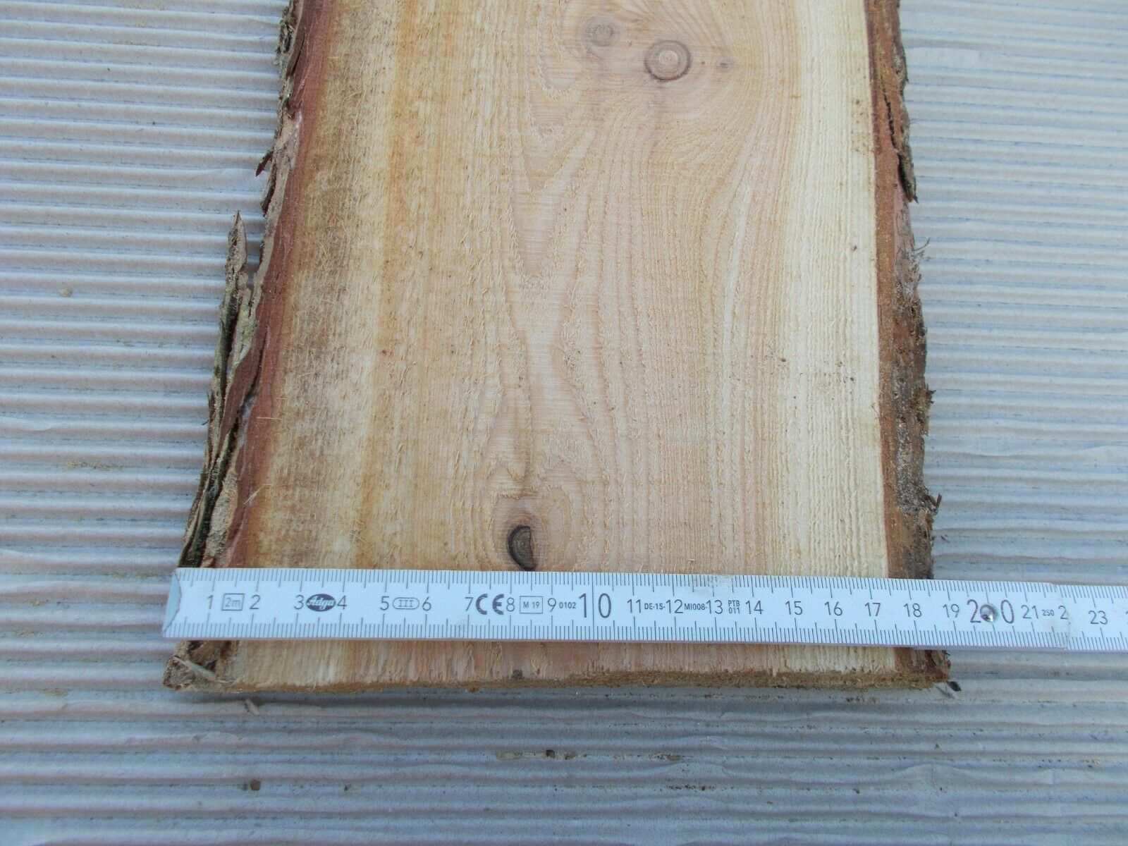 Lärche, Mondphasenholz Lärchenbrett unbesäumt, regional in Ostvorpommern gewachsen 20 Lärche-Bretter 14-25x2,3x400cm Sonderposten, nur so lange der Vorrat reicht, kostenloser Versand Deutschland Breite: 14-25cm Dicke: 2,3cm Länge: 400cm (in der Regel mit 5-10cm Überlänge) Oberfläche: sägerauh Unbesc