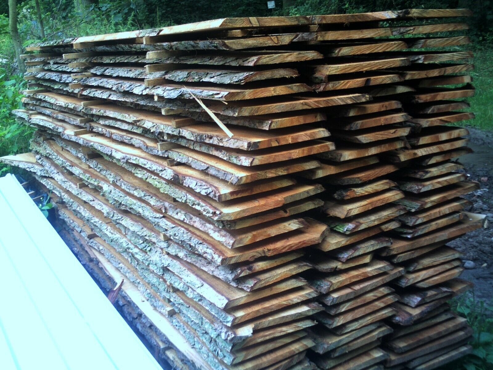 Sonderposten 20St Lärche unbesäumt Bretter Regal Zaun Schwarten 20-30x2,3x240cm