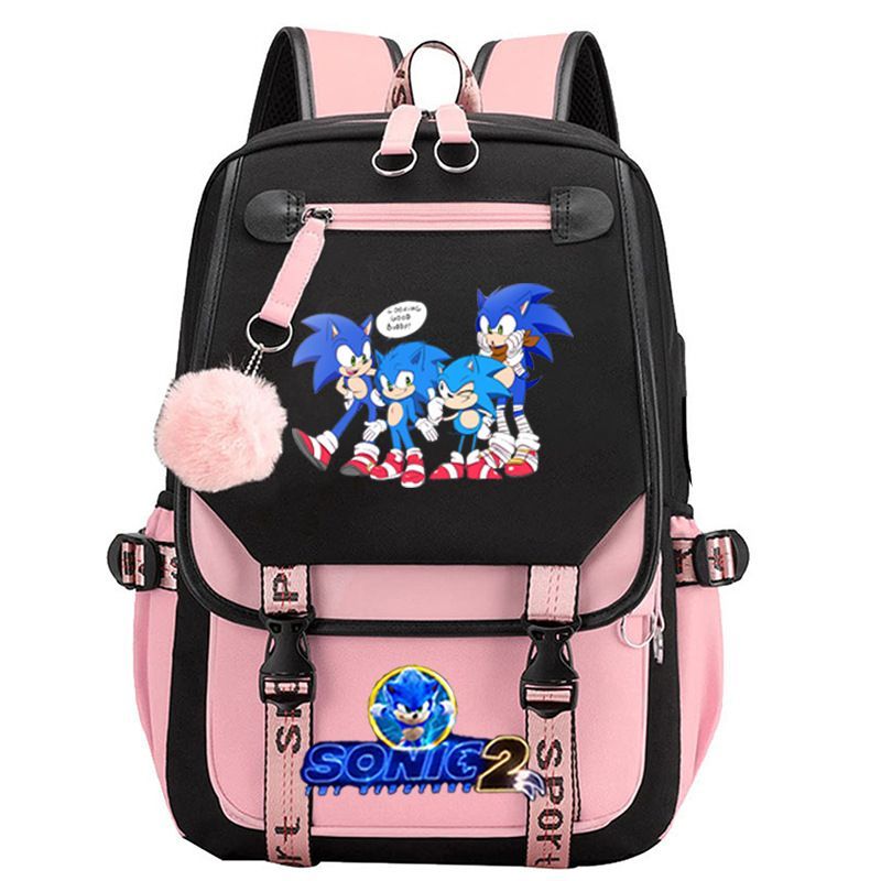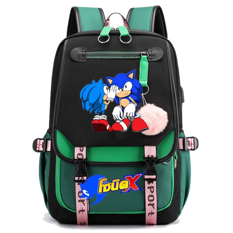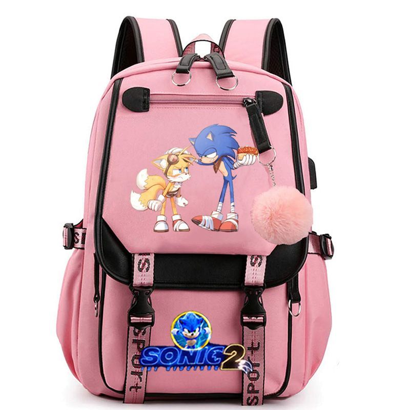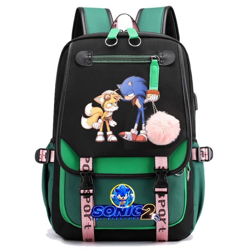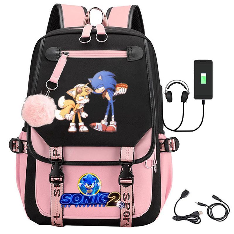 Sonic the Hedgehog Studenten Schultasche Sonic Tails Rucksack USB Lade Laptoptasche