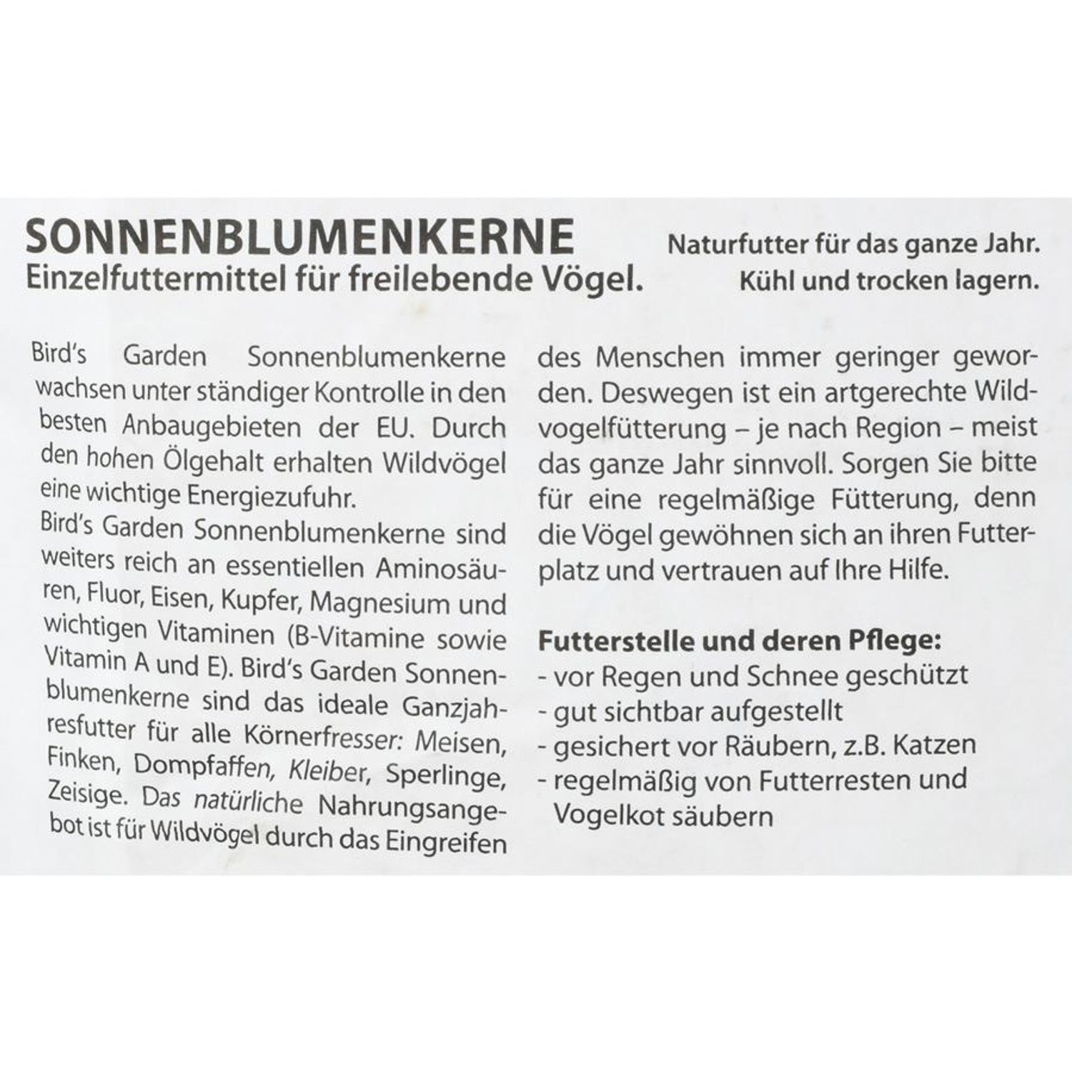 Sonnenblumenkerne 10 Kg gestreift Vogelfutter Wildvogelfutter Winterstreufutter