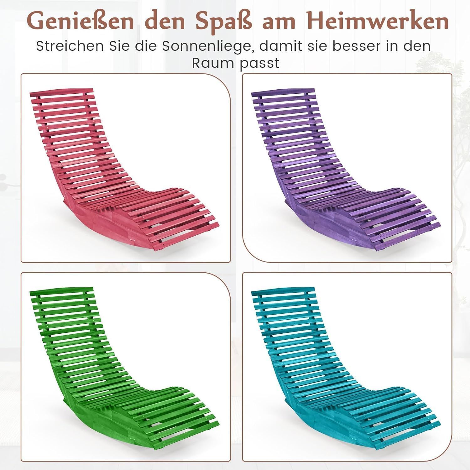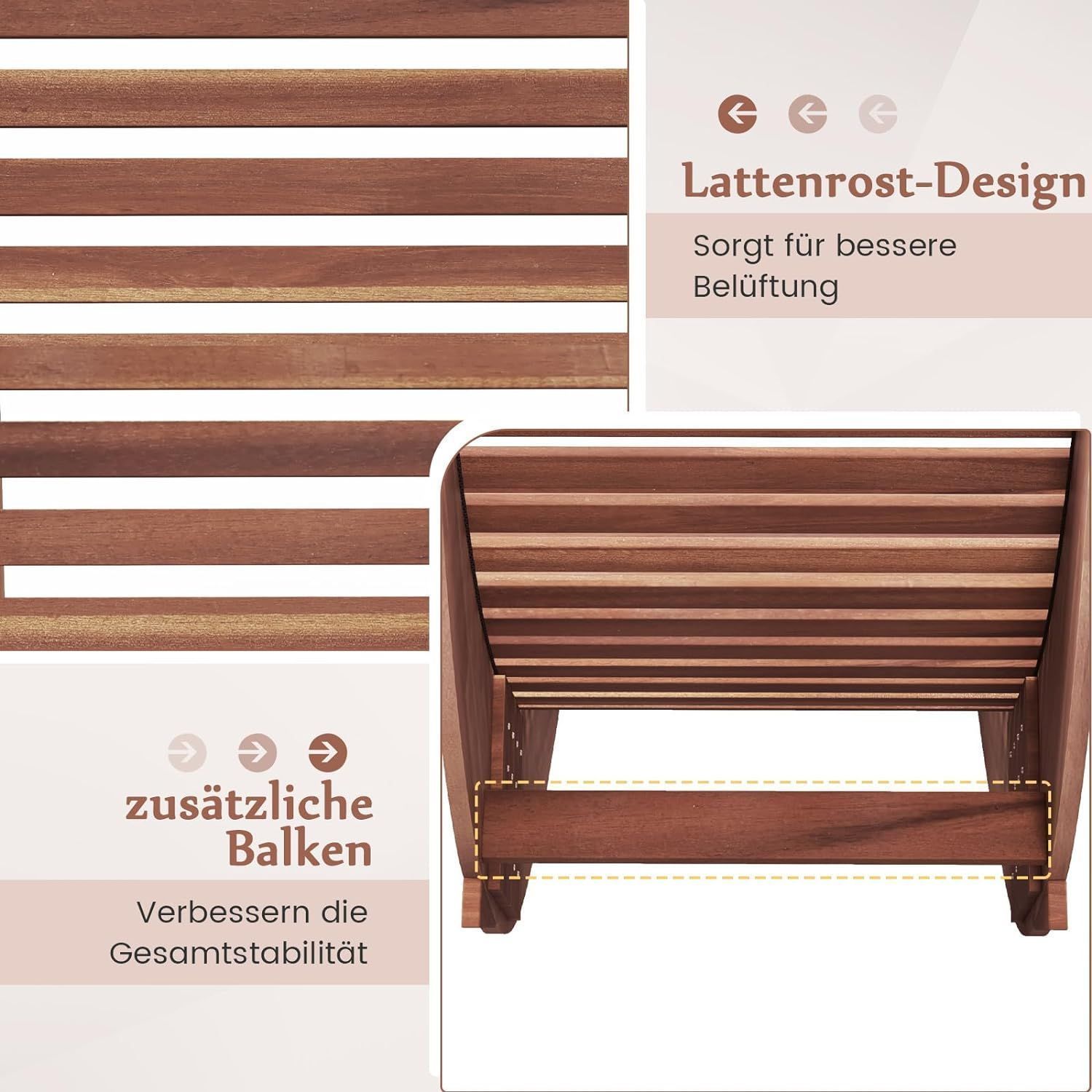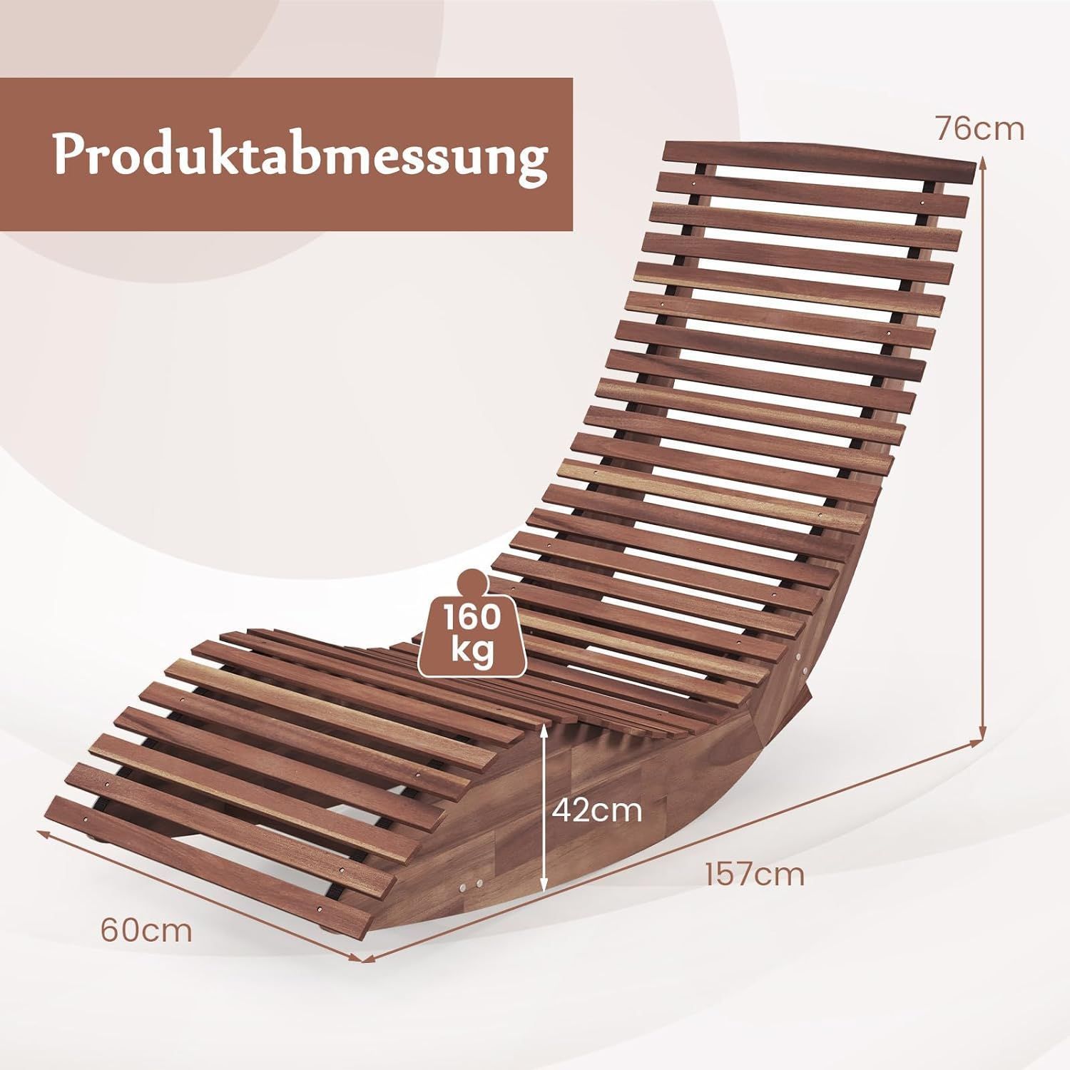 Sonnenliege Akazienholz, ergonomische Holzliege, Gartenliege Terrassenliege bis 160kg
