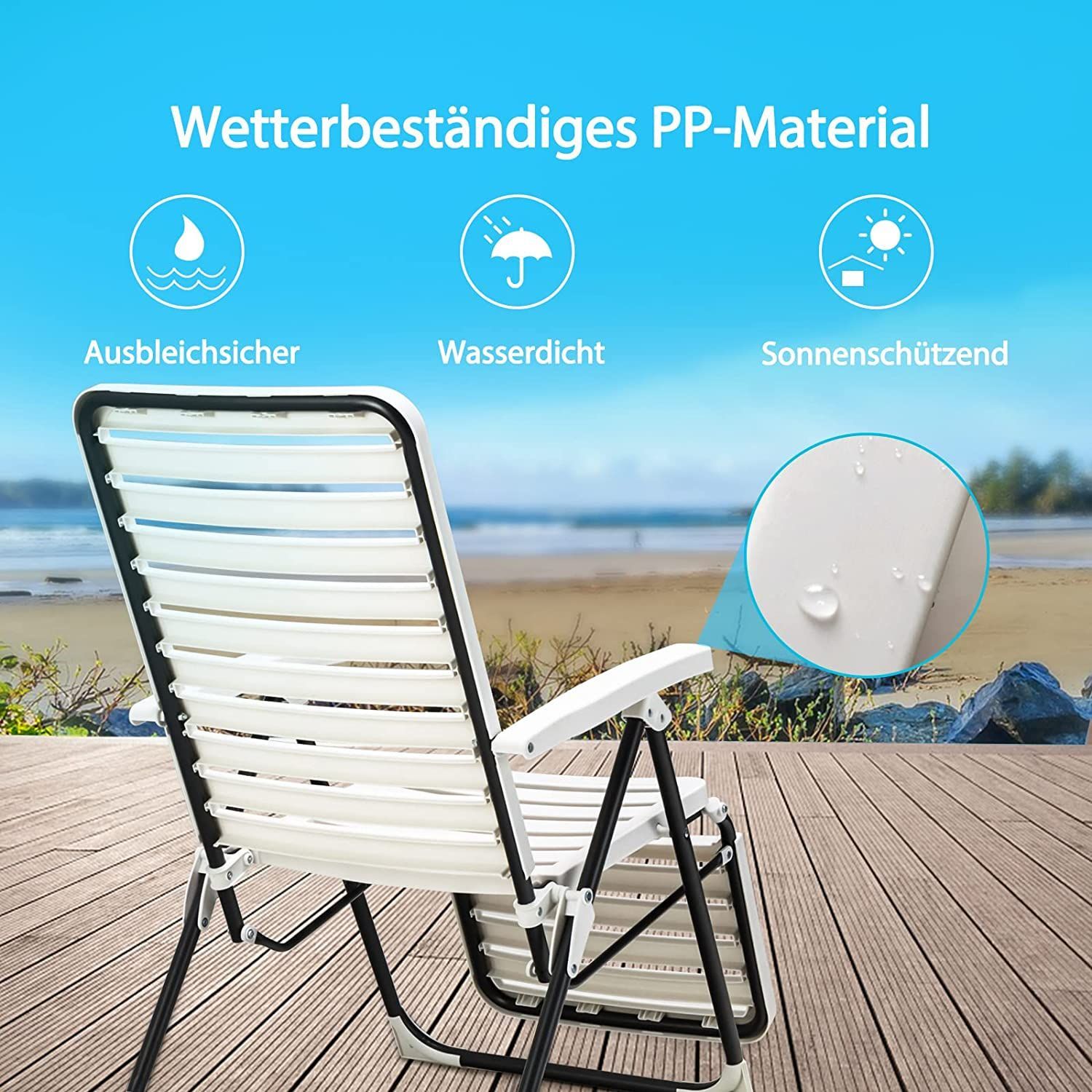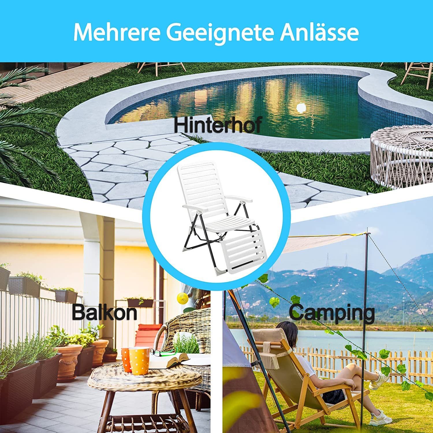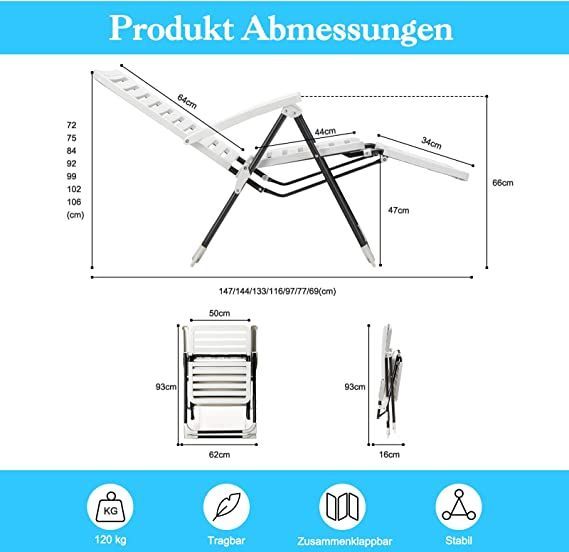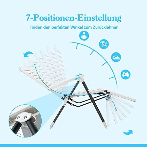 Sonnenliege, klappbarer Liegestuhl mit 7-Fach Verstellbarer Rückenlehne, Relaxliege