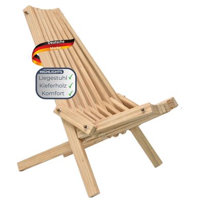 Skandinavischer Liegestuhl Holz ENNO Sonnenliege aus Kiefernholz Balkonstuhl