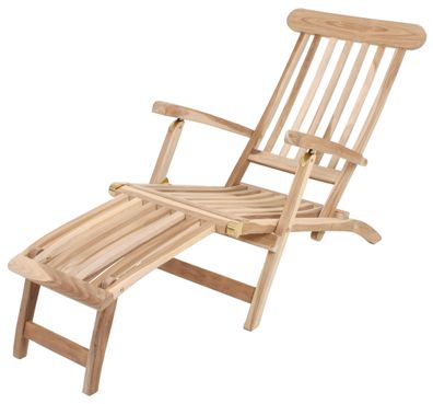 Deckchair LEON 3-fach verstellbar Natur Teak Liegestuhl Gartenstuhl Sonnenliege
