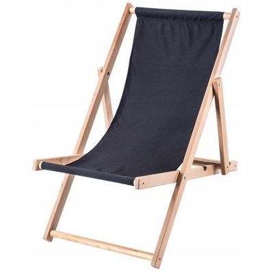 • KADAX Liegestuhl, Strandstuhl aus Holz, Sonnenliege bis 120kg, Schwarz