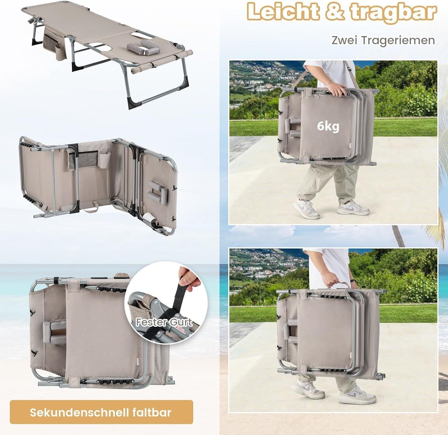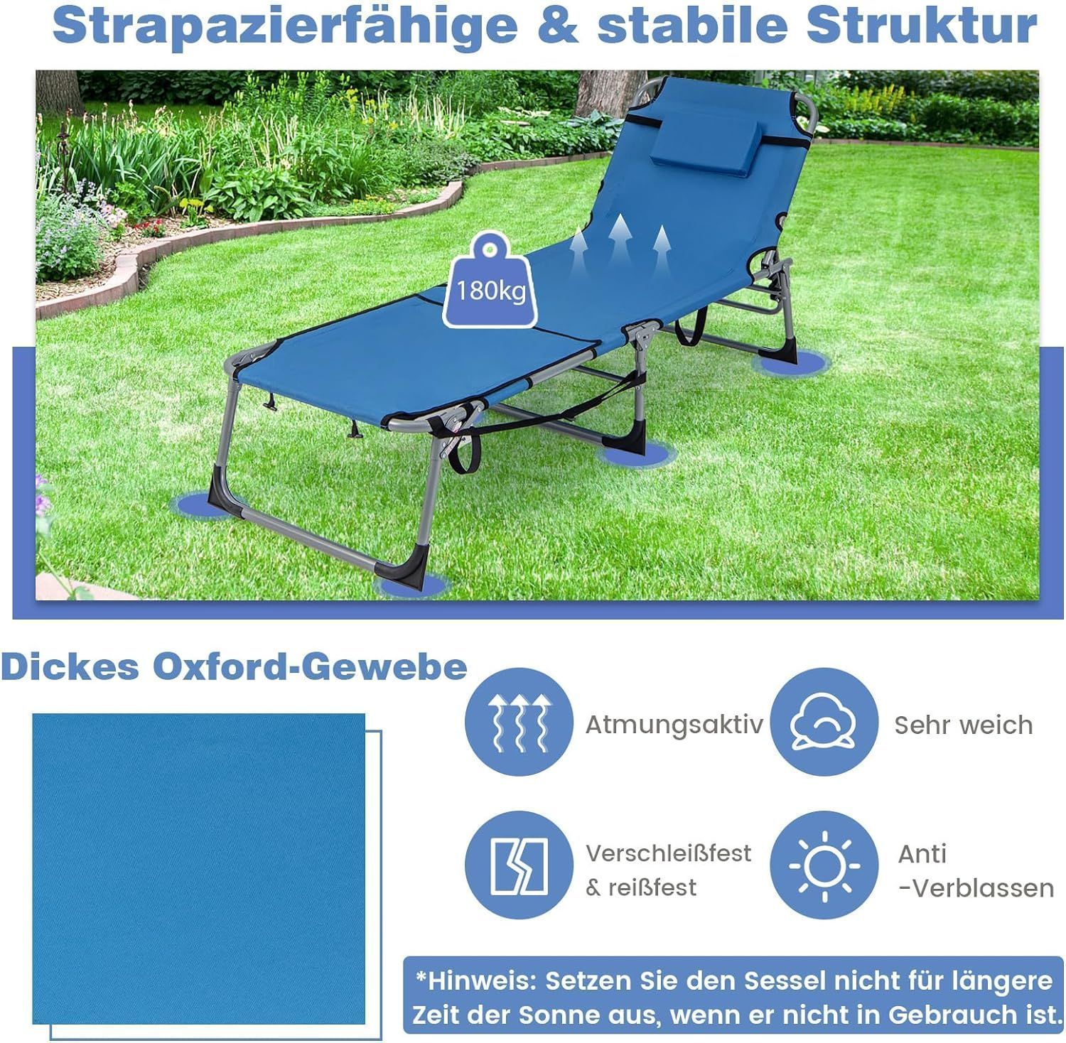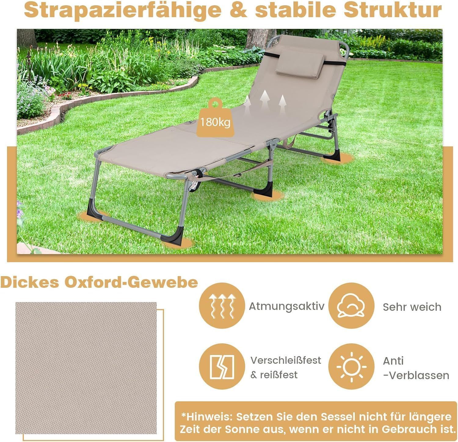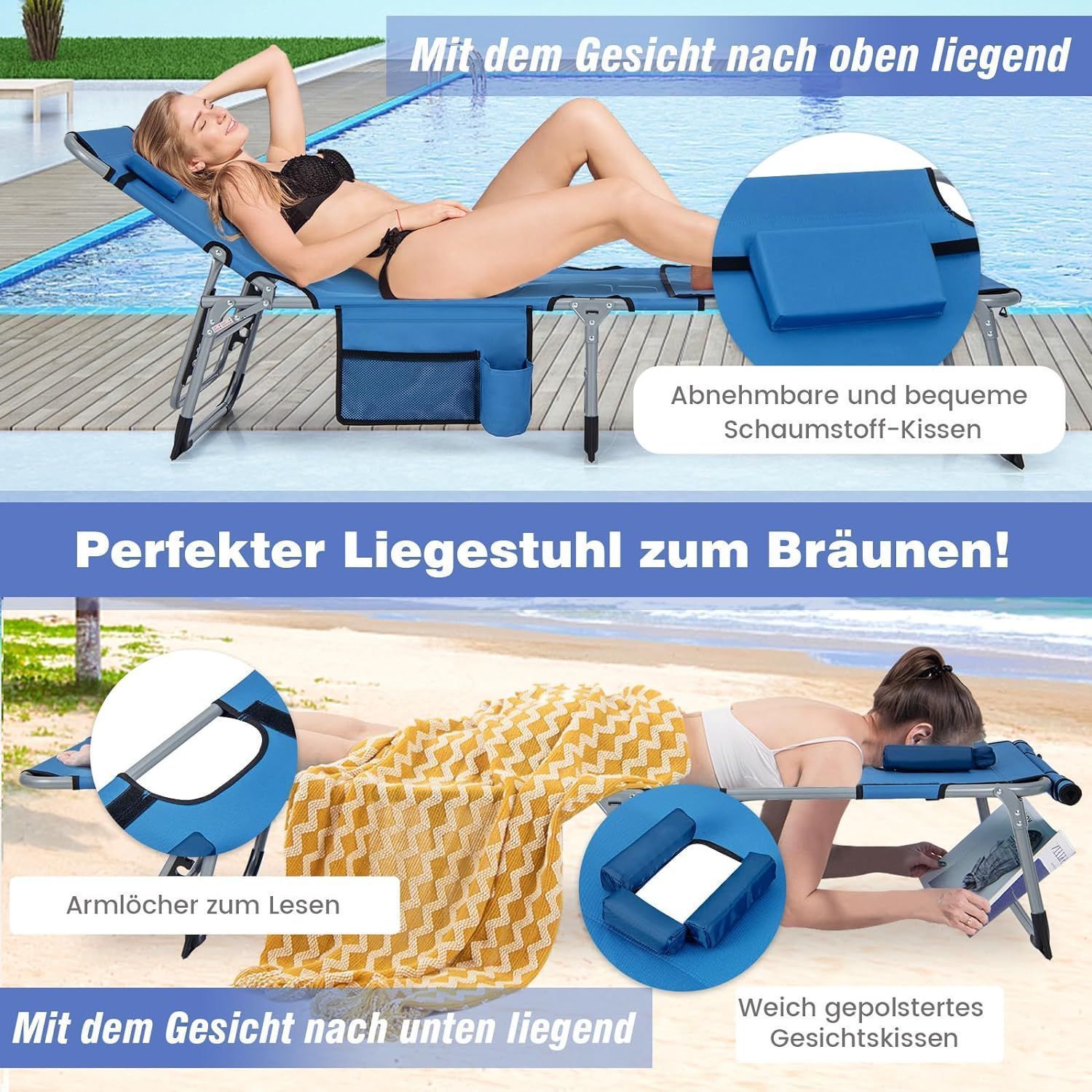 Sonnenliege mit Gesichtsöffnung, Faltbare Gartenliege mit Verstellbarer Rückenlehne