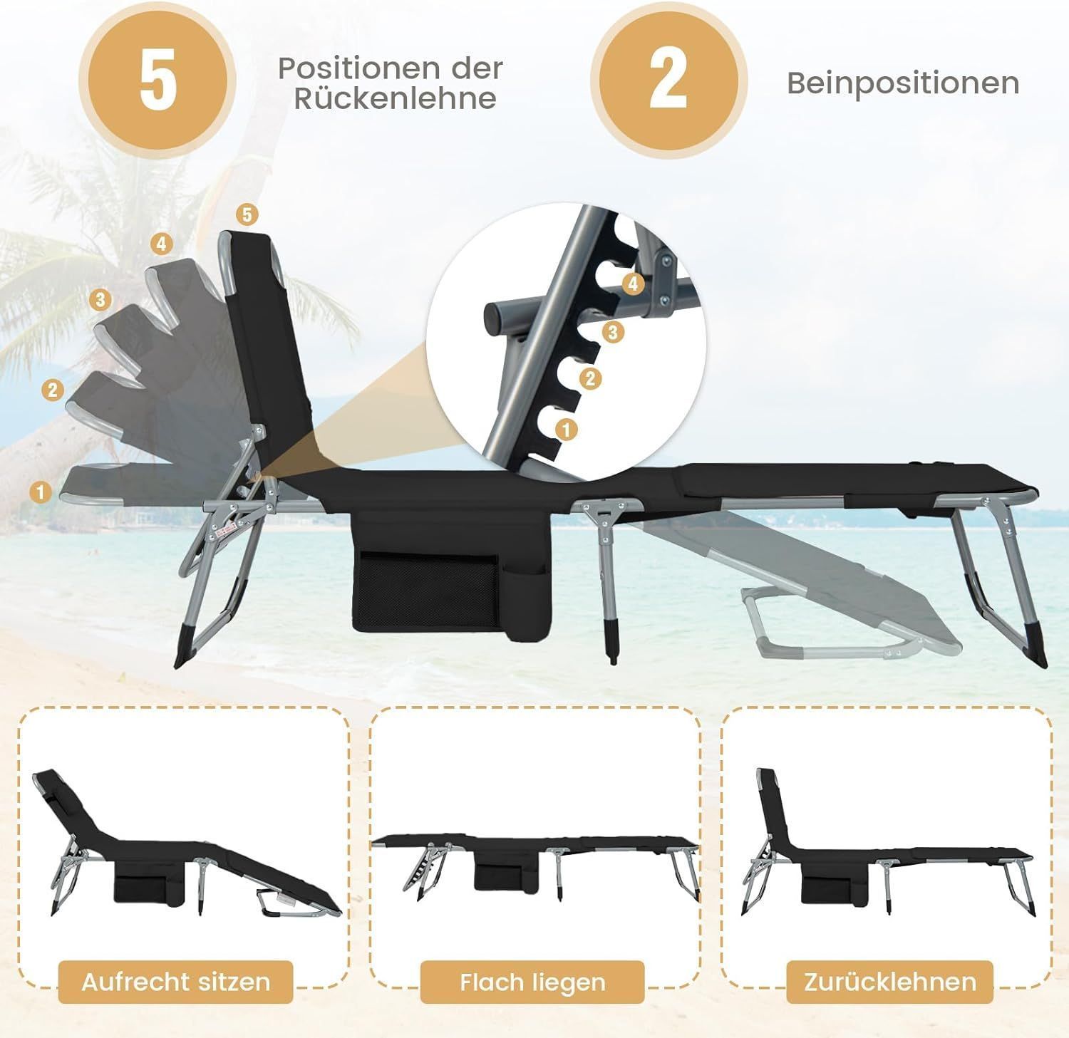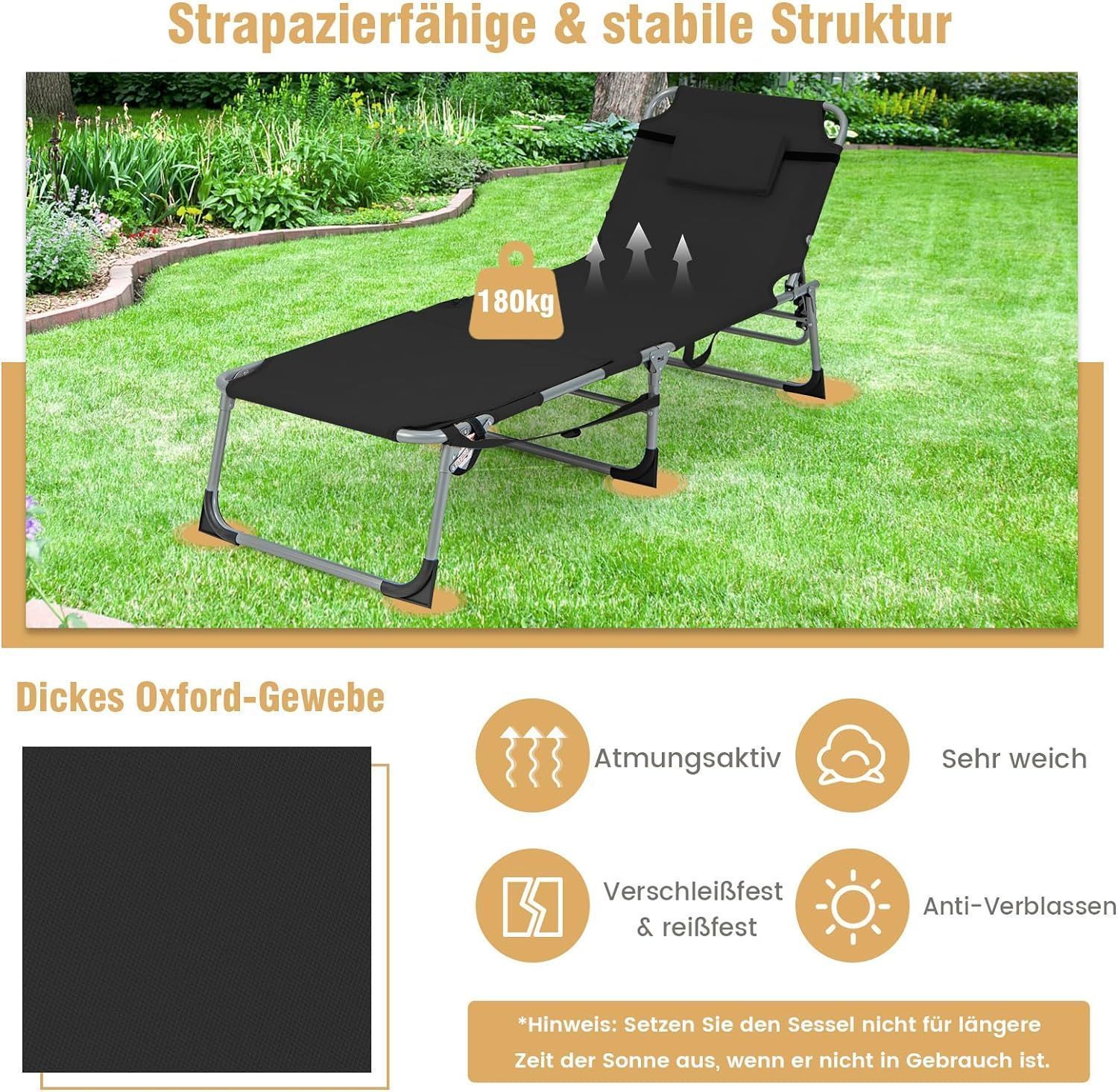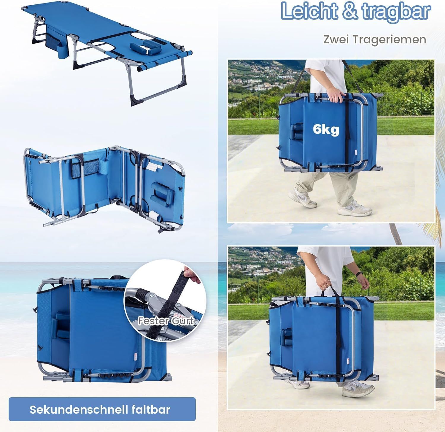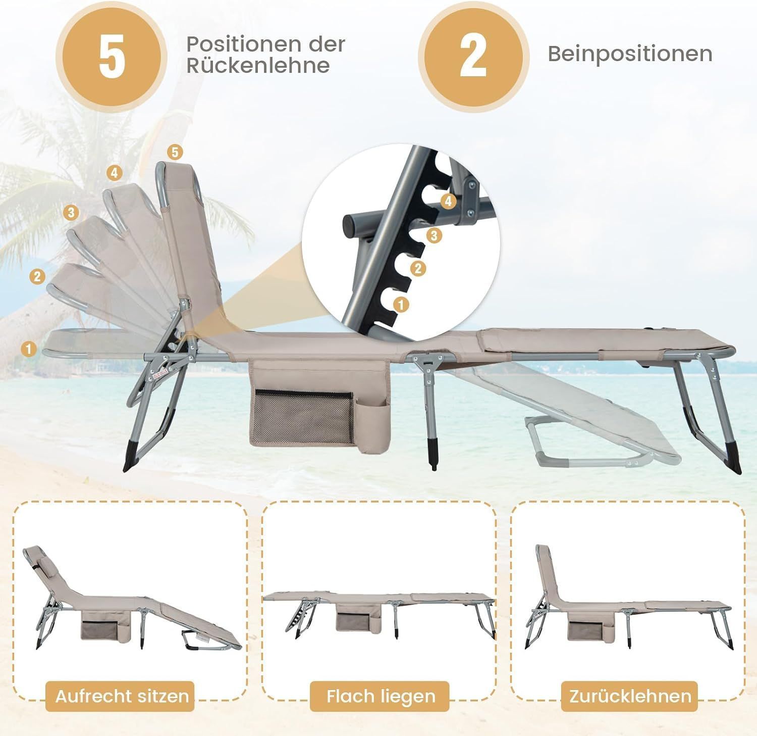 Sonnenliege mit Gesichtsöffnung, Faltbare Gartenliege mit Verstellbarer Rückenlehne