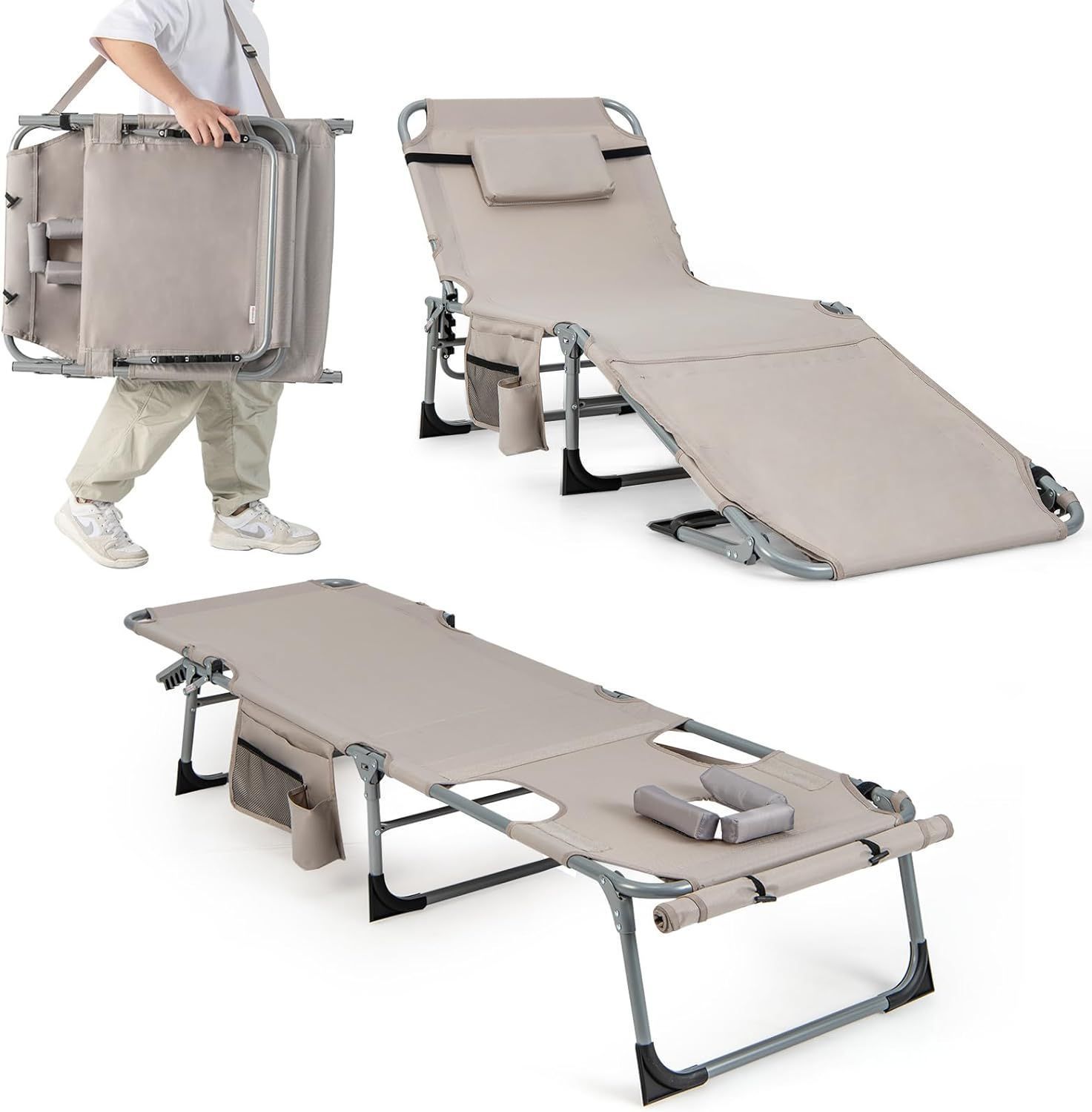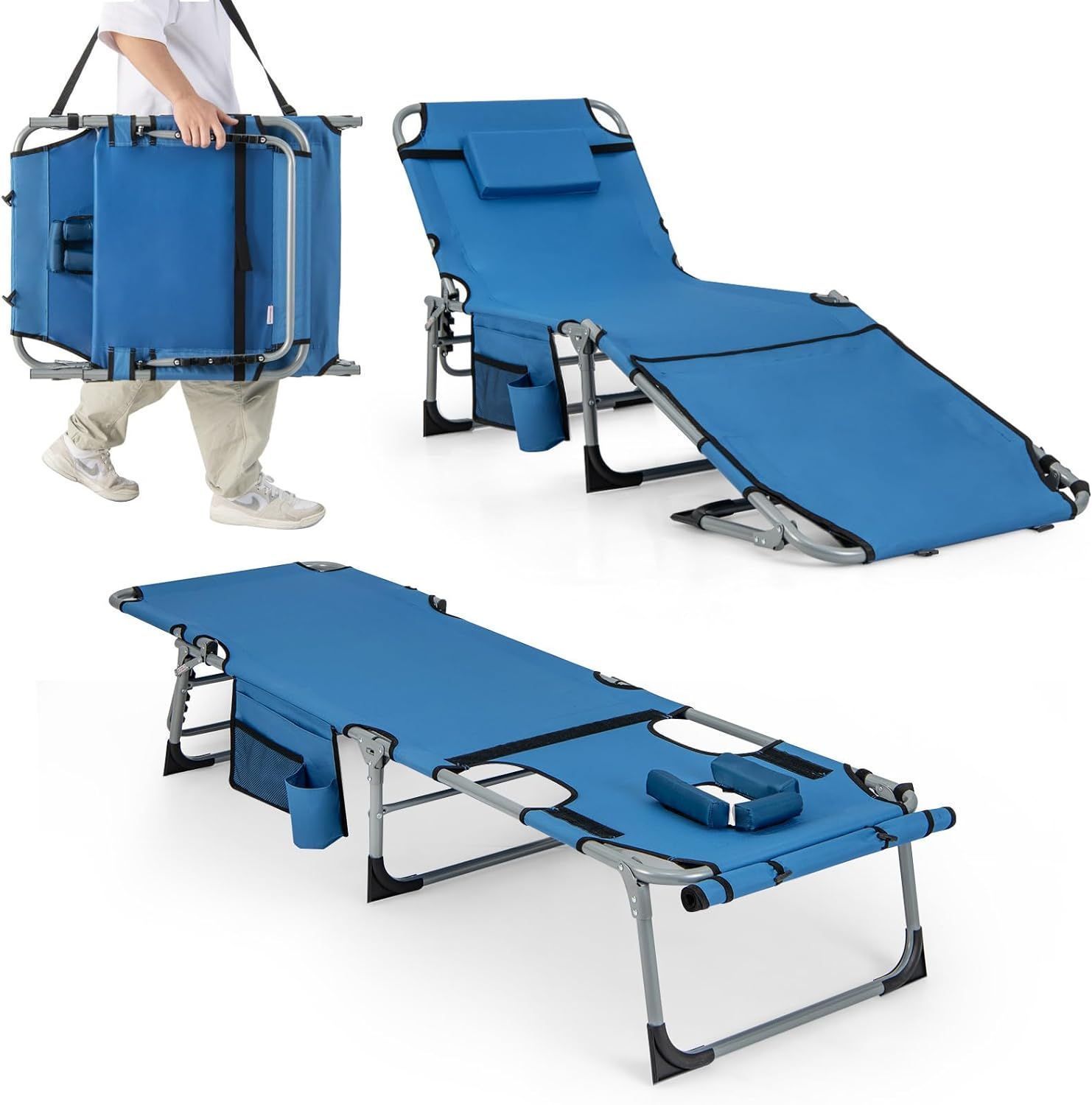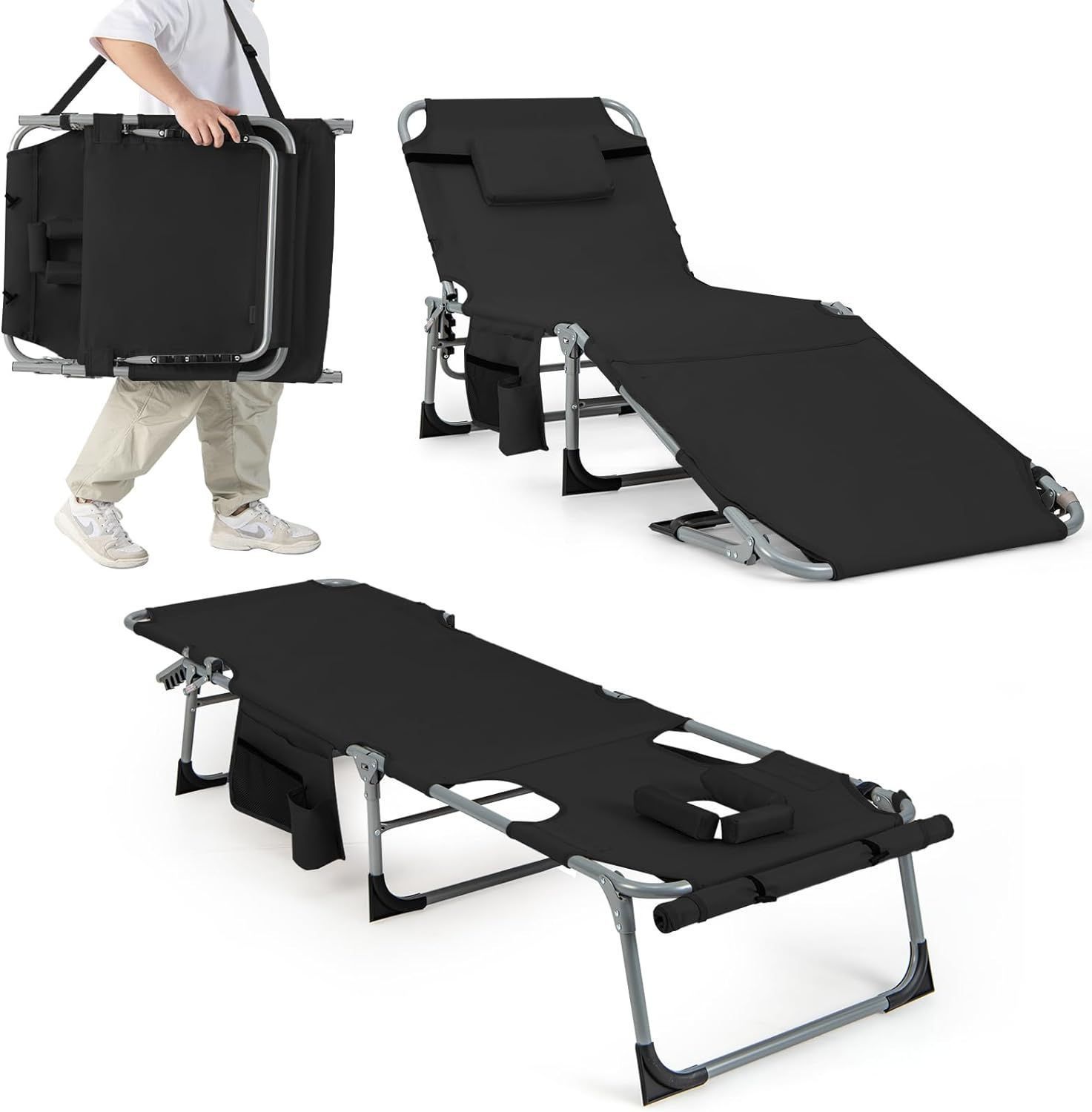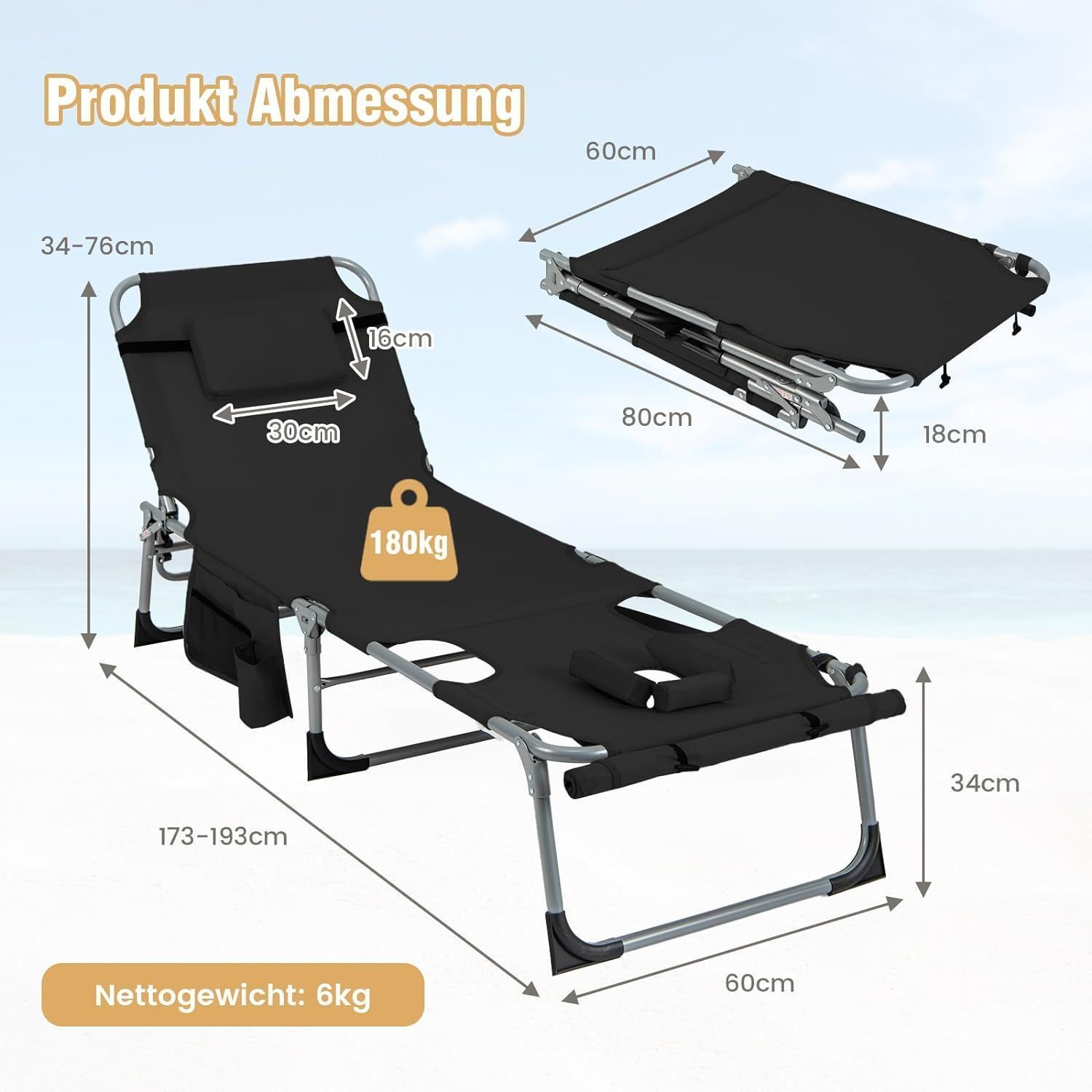 Sonnenliege mit Gesichtsöffnung, Faltbare Gartenliege mit Verstellbarer Rückenlehne