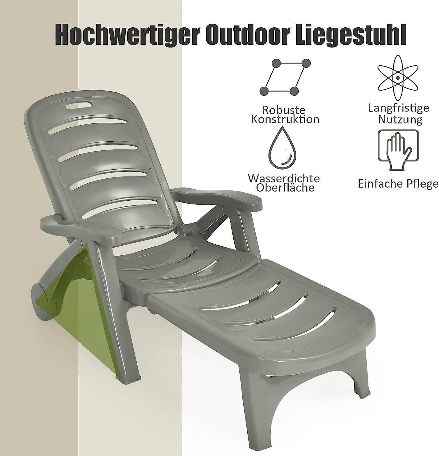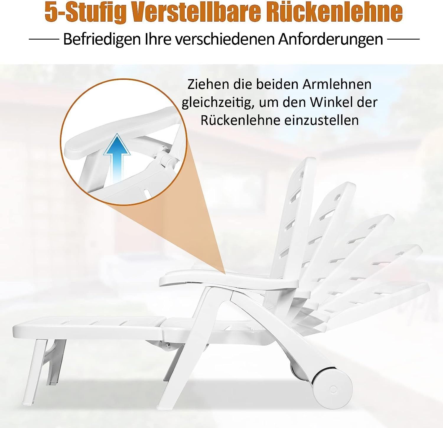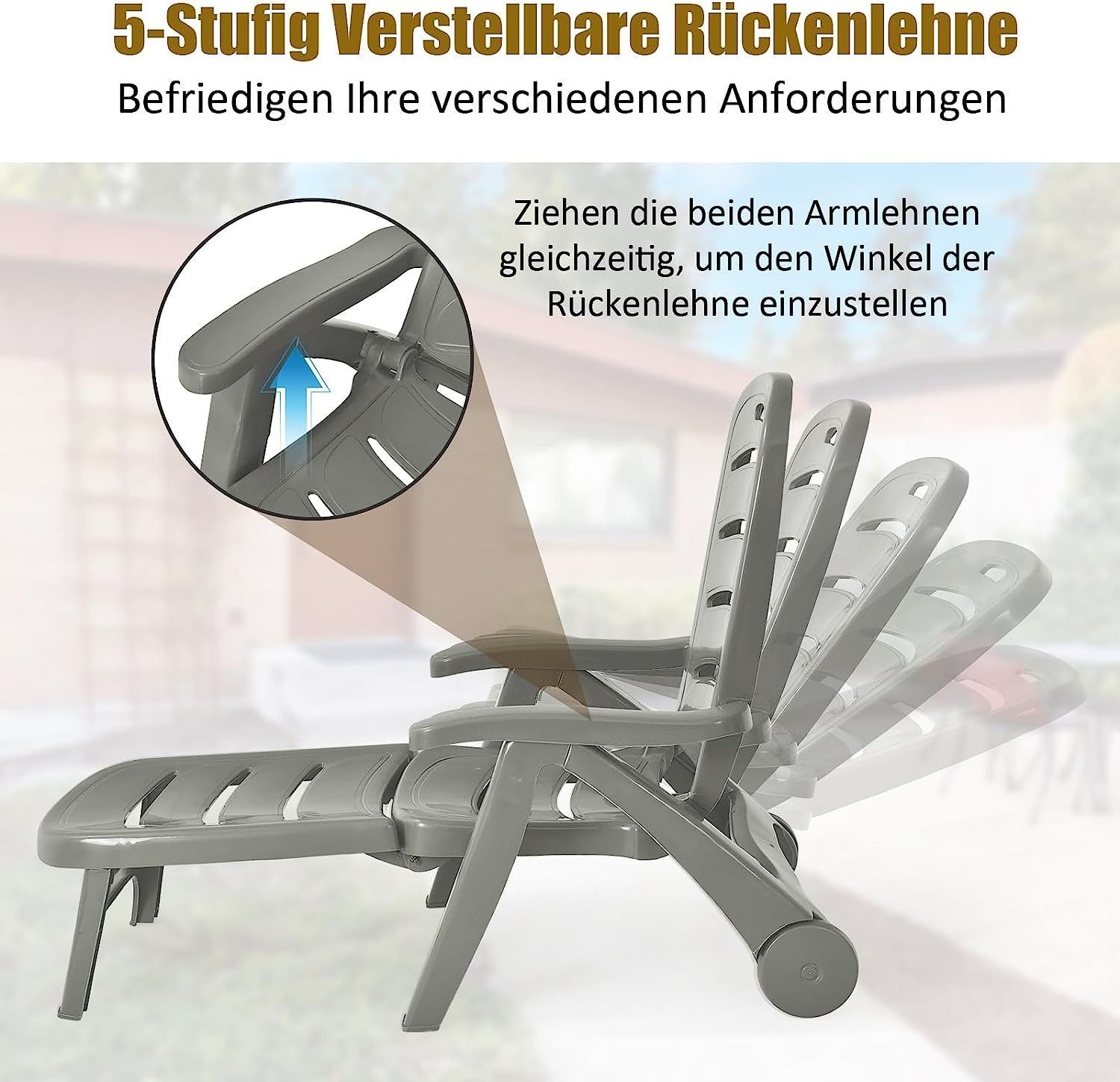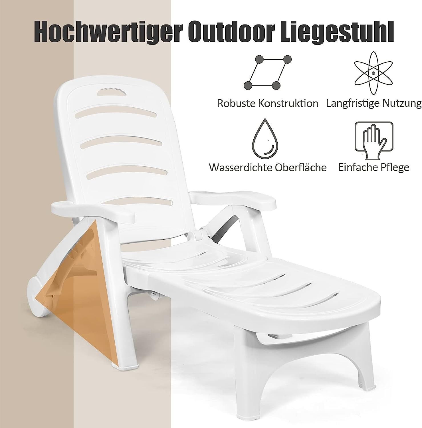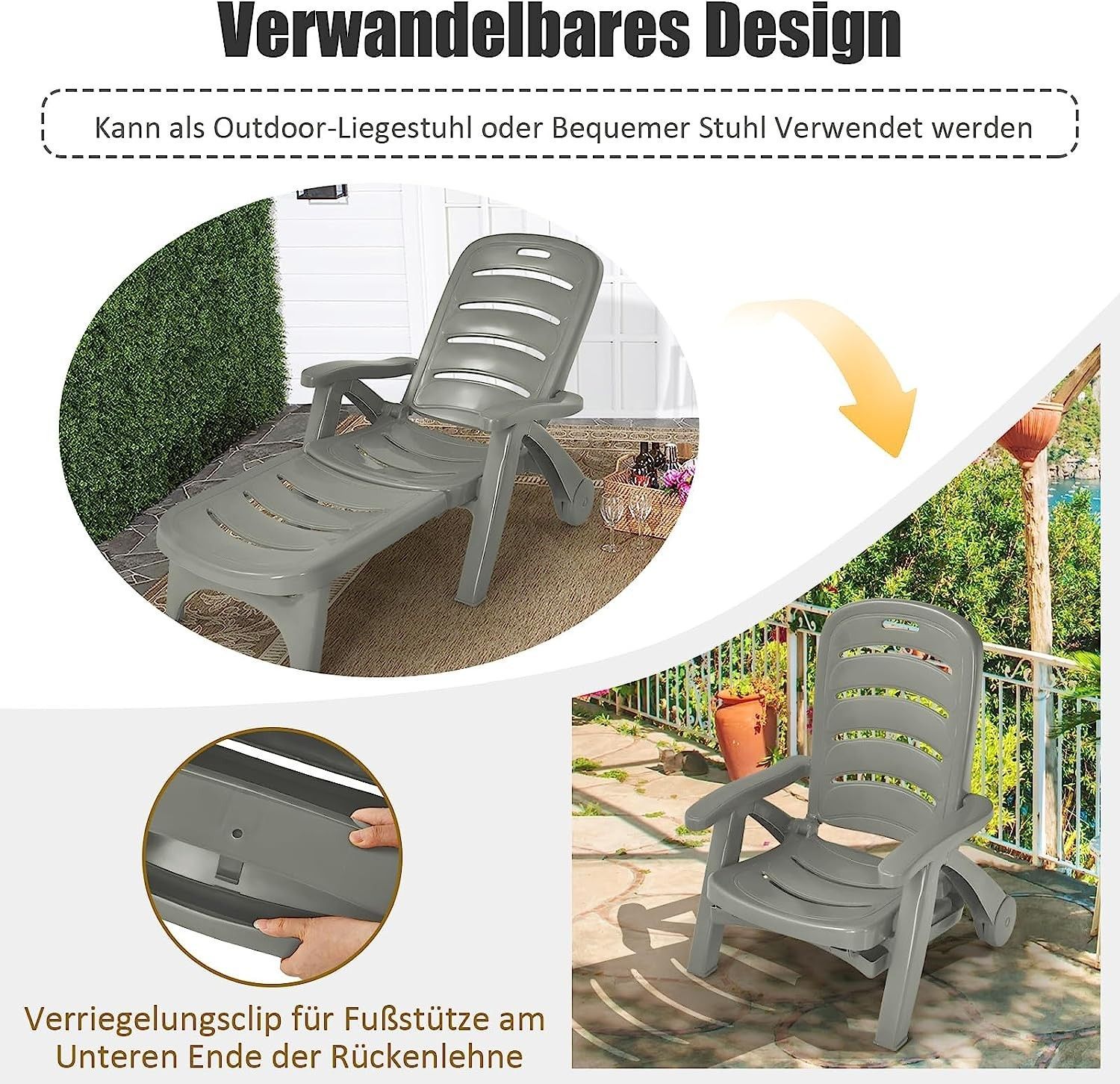 Sonnenliege mit Rollen, umbaubare Gartenliege/ Gartenstuhl, klappbarer Liegestuhl