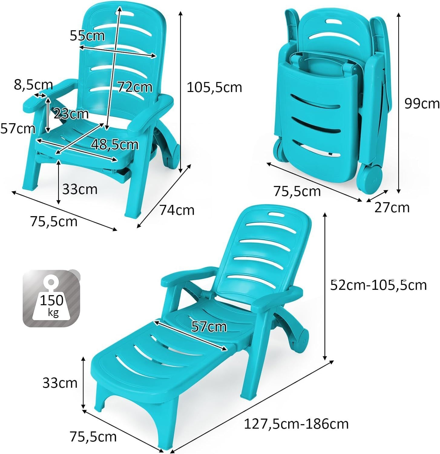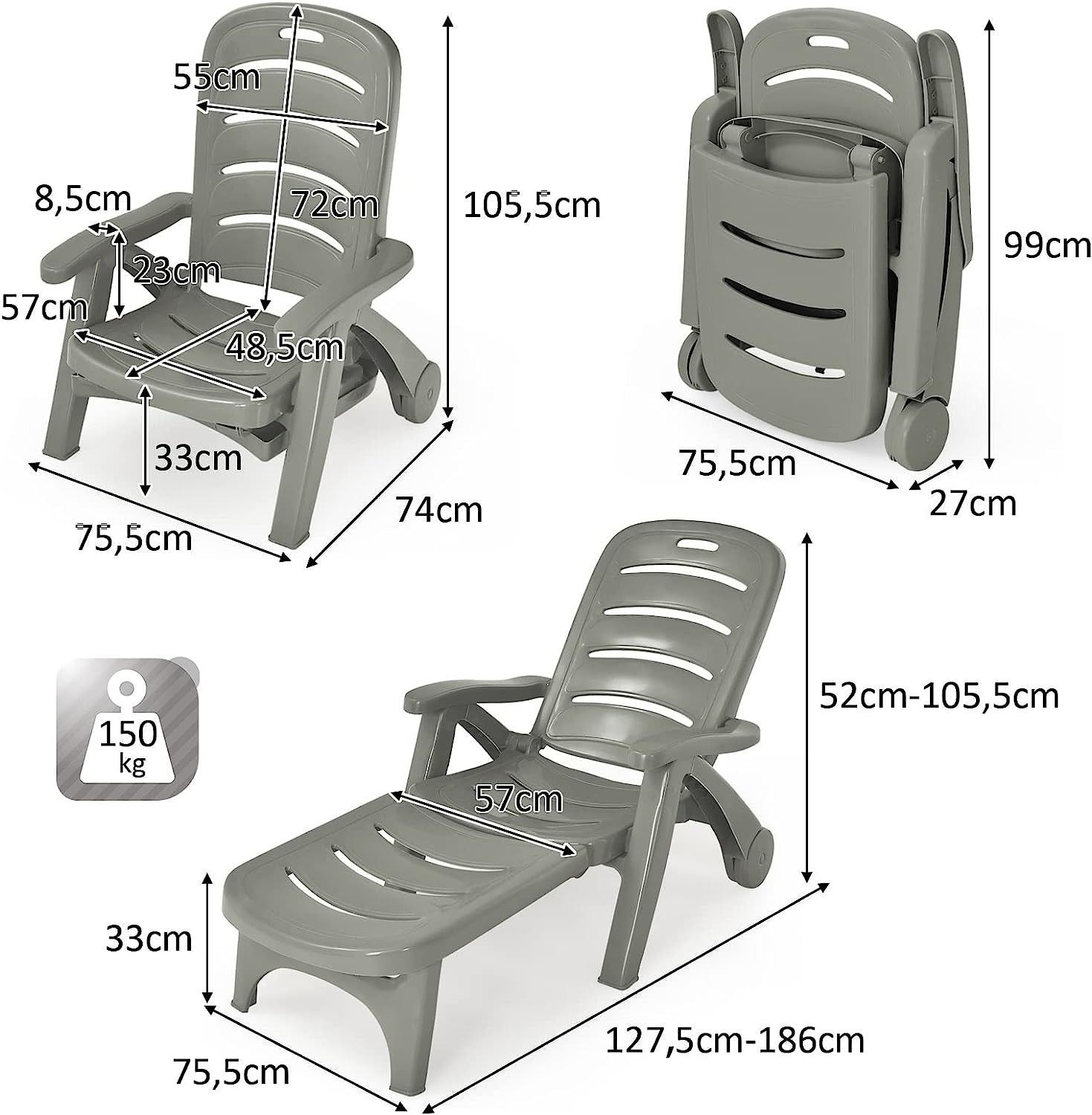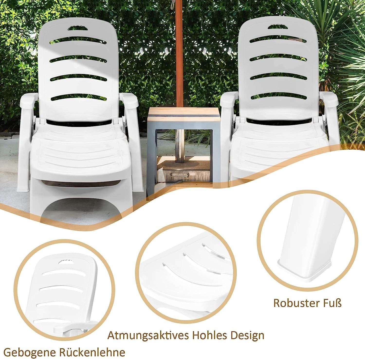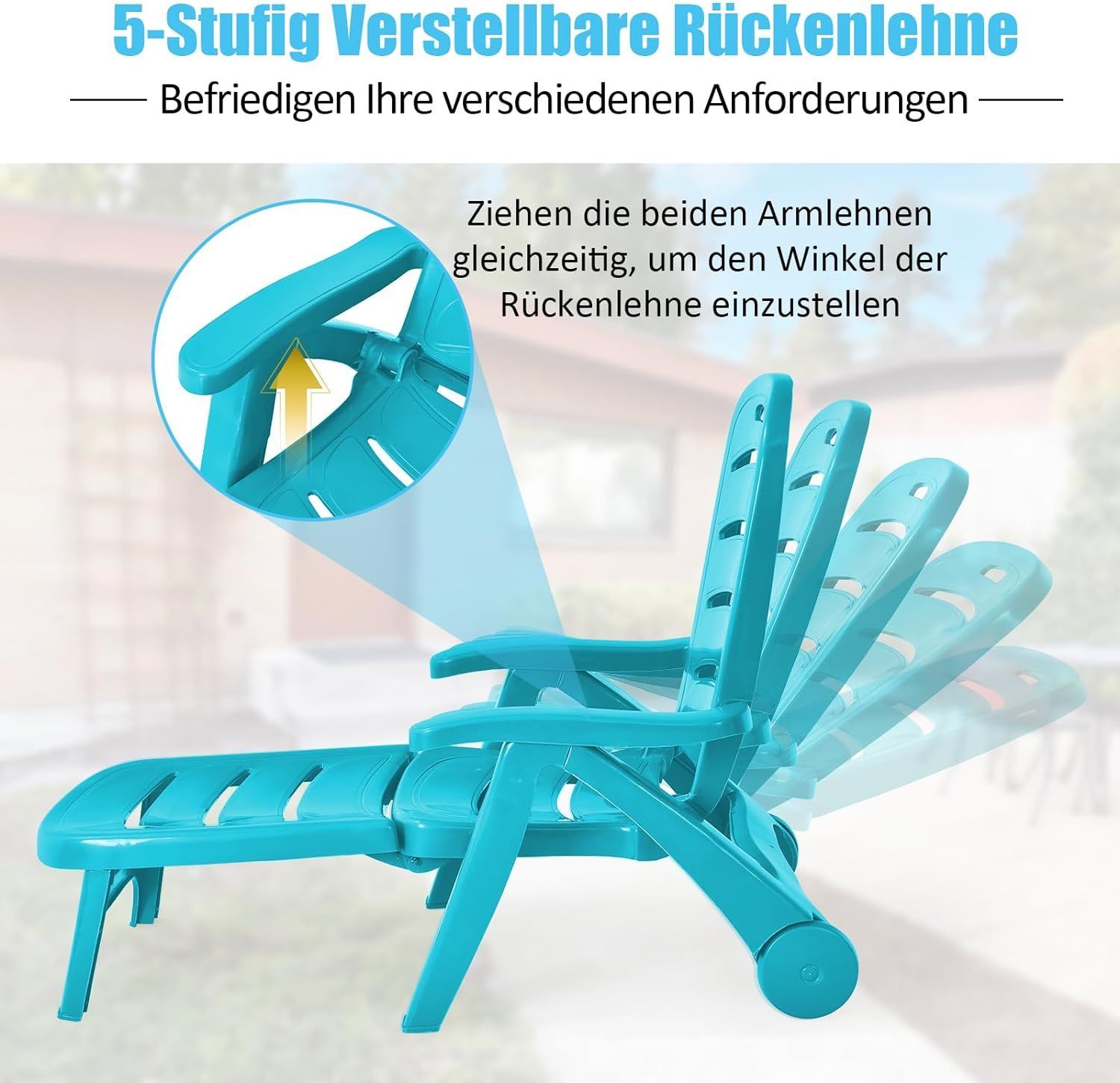 Sonnenliege mit Rollen, umbaubare Gartenliege/ Gartenstuhl, klappbarer Liegestuhl