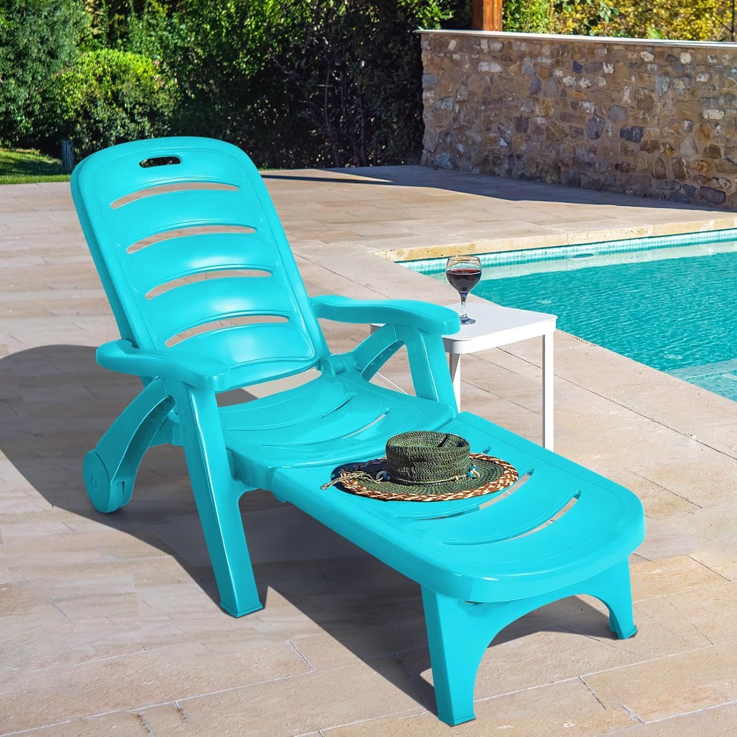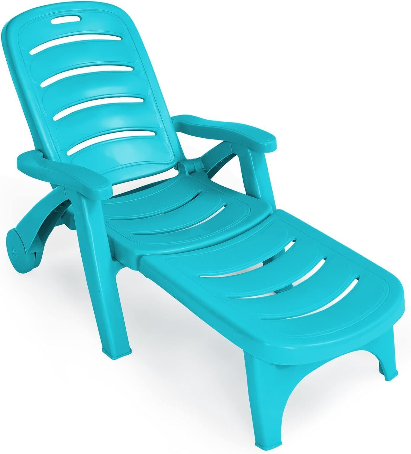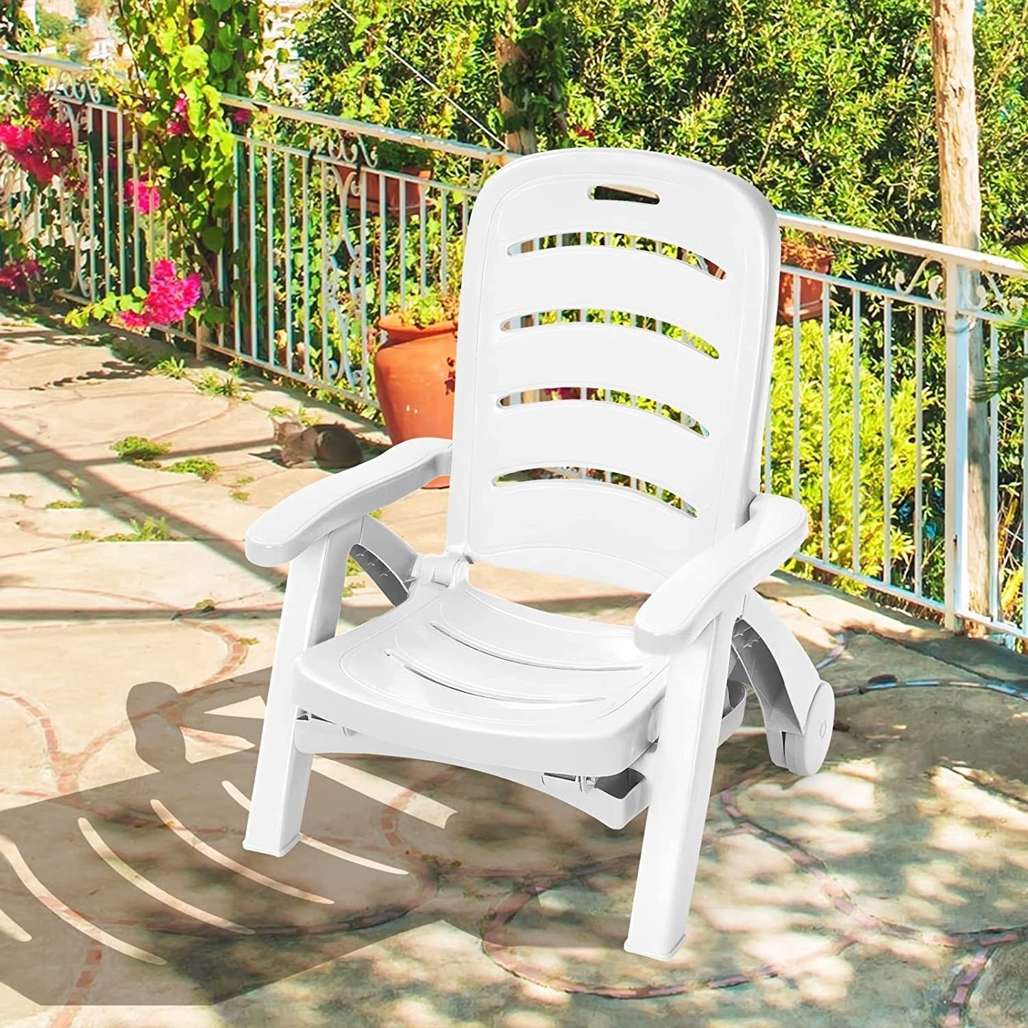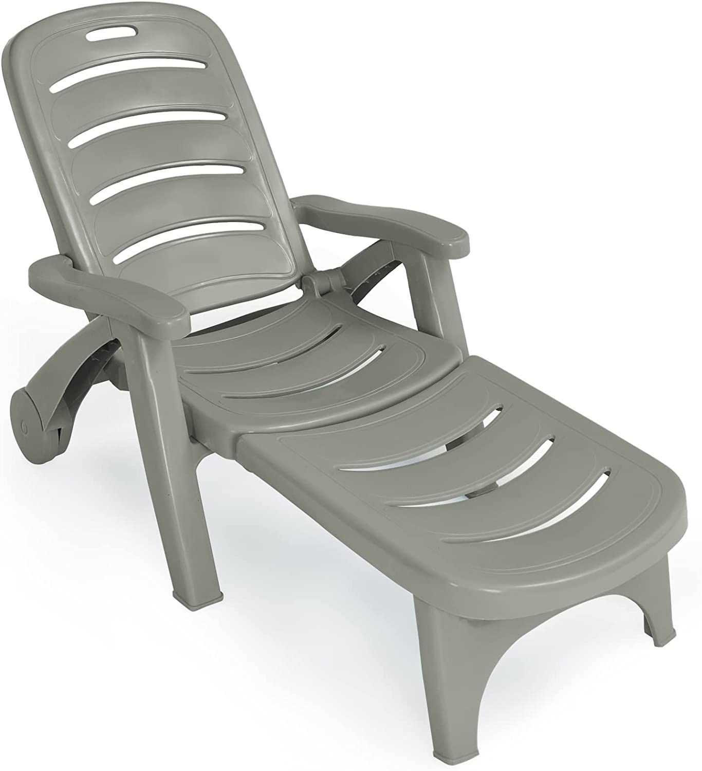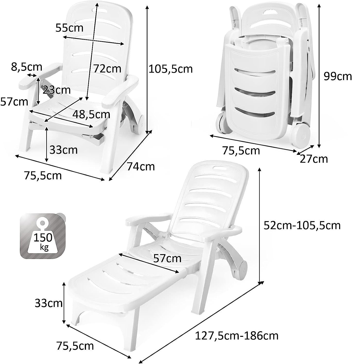 Sonnenliege mit Rollen, umbaubare Gartenliege/ Gartenstuhl, klappbarer Liegestuhl